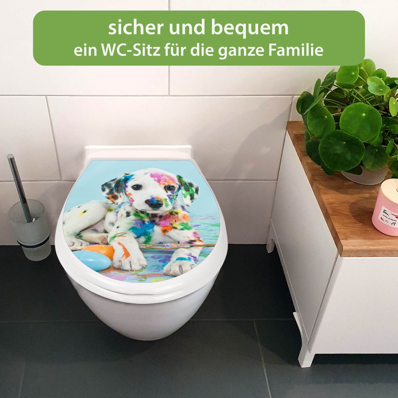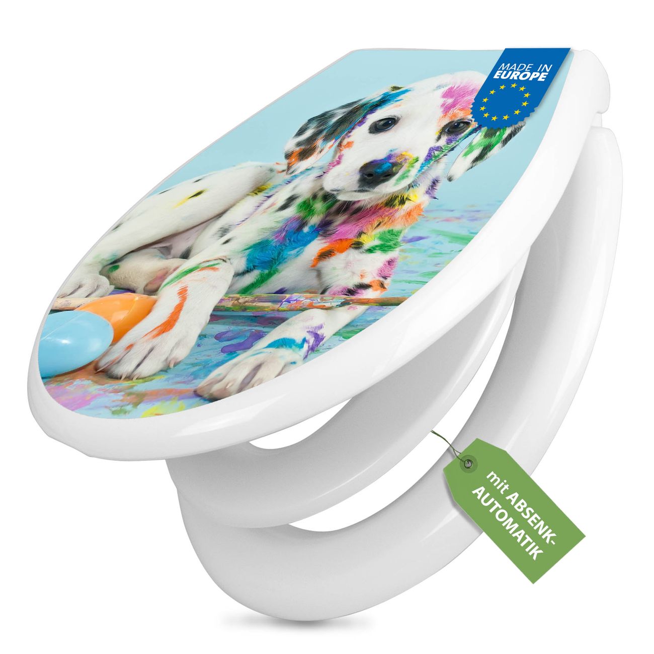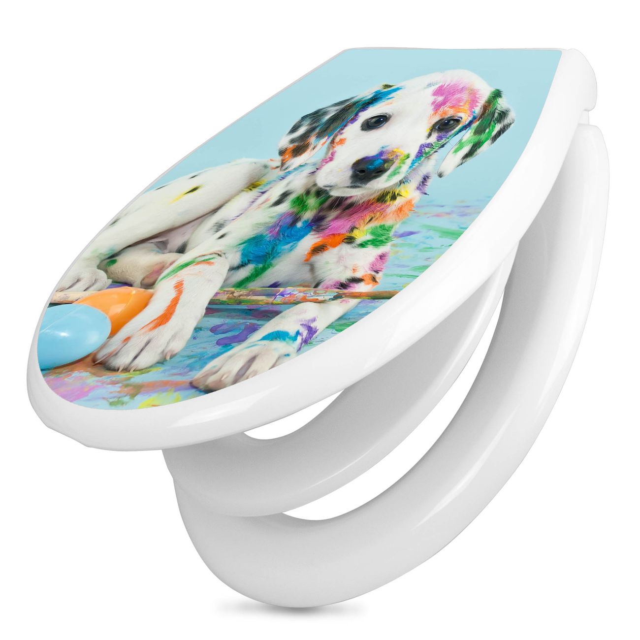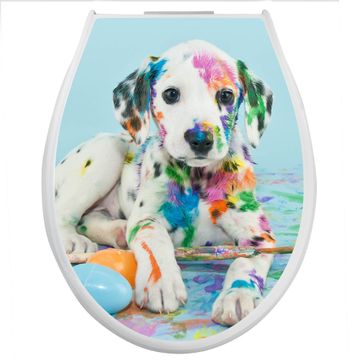 Toilettendeckel weiß mit Absenkautomatik Motiv Bunter Dalmatiner