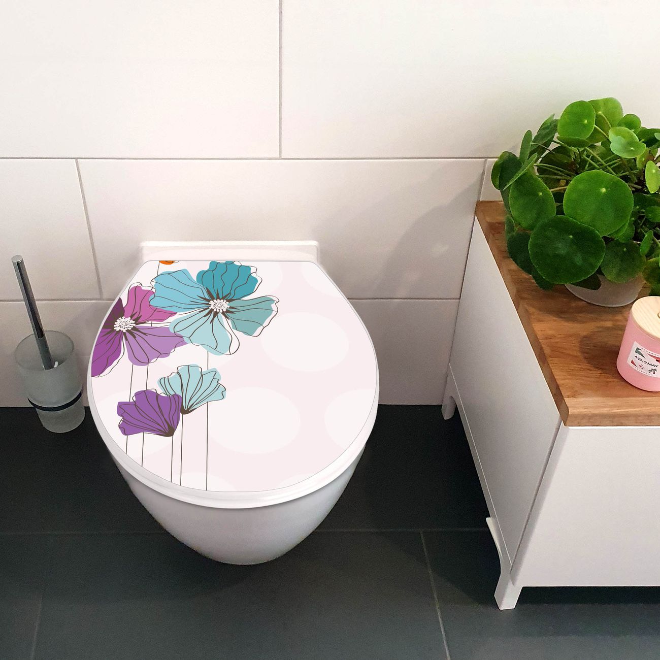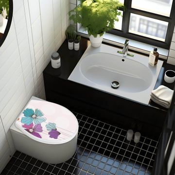 Toilettendeckel weiß mit Absenkautomatik Motiv Bunter Mohn