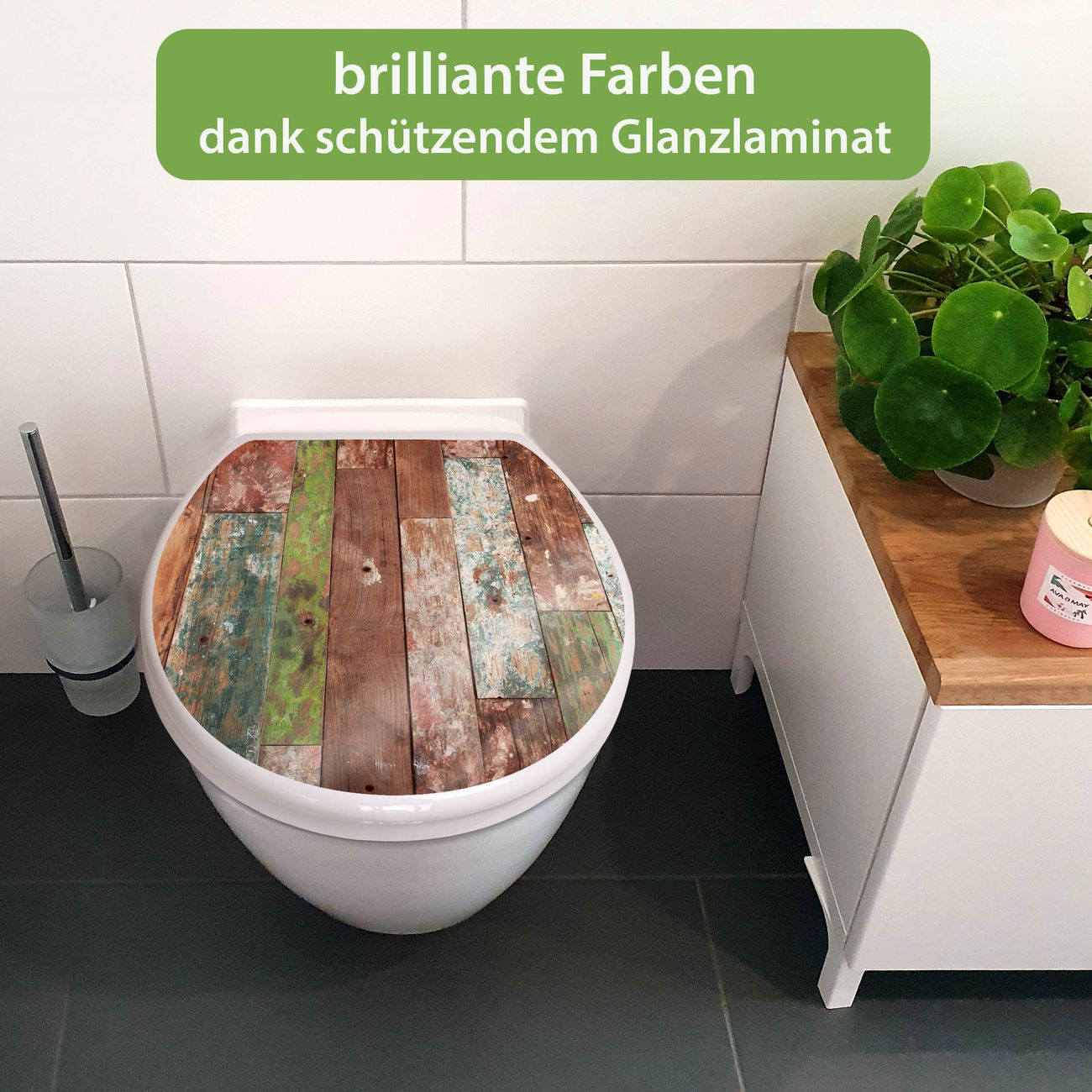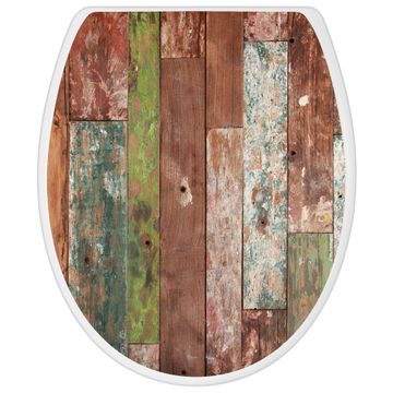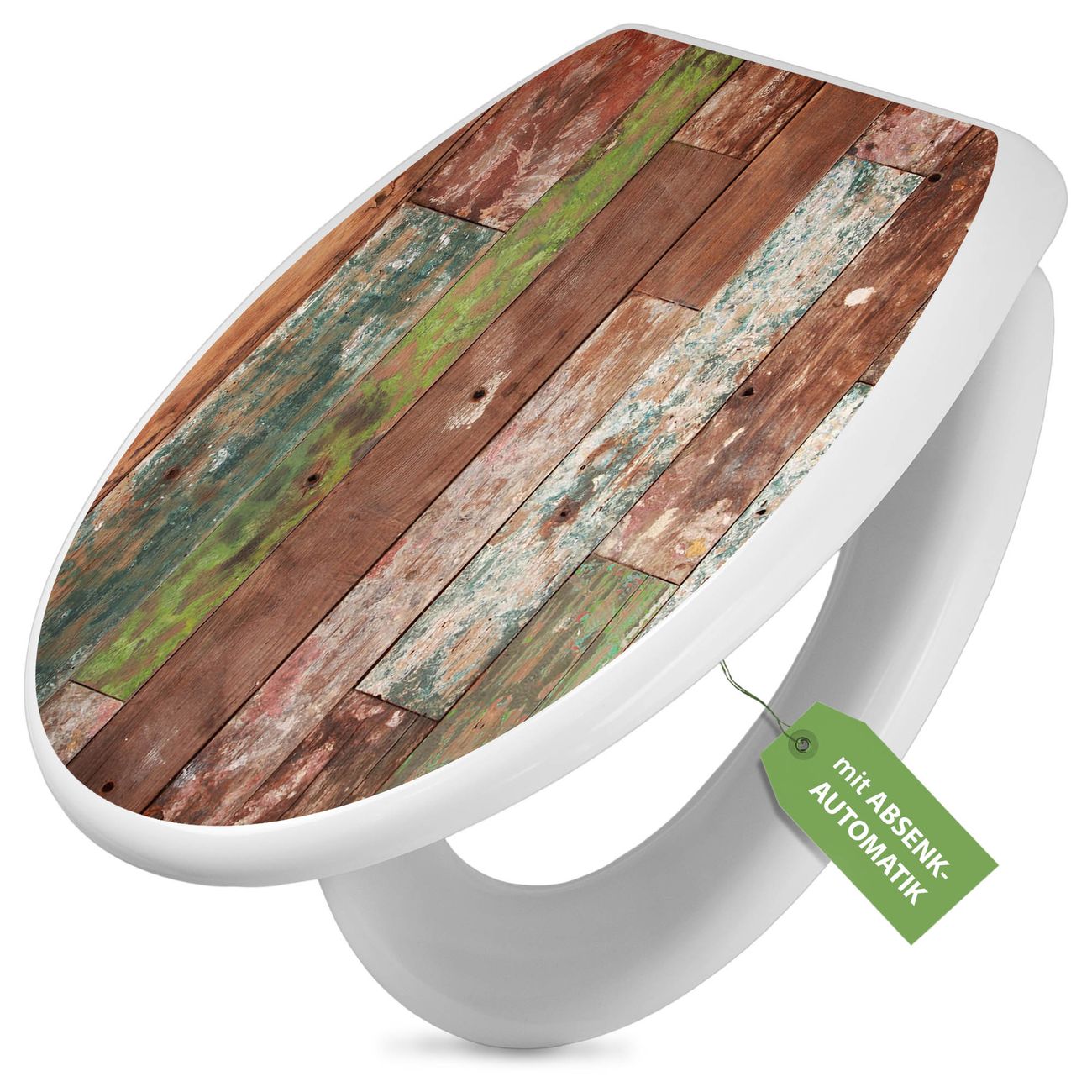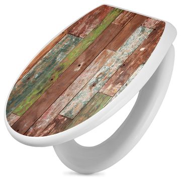 Toilettendeckel weiß mit Absenkautomatik Motiv Buntes Holz