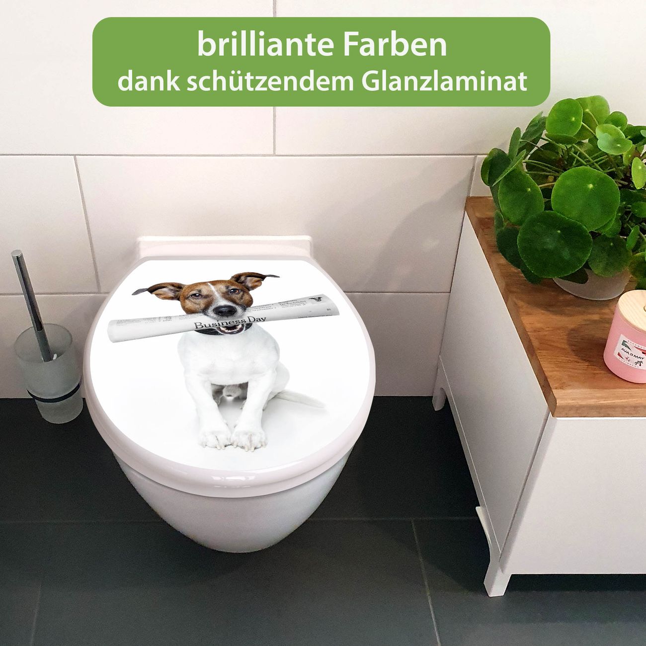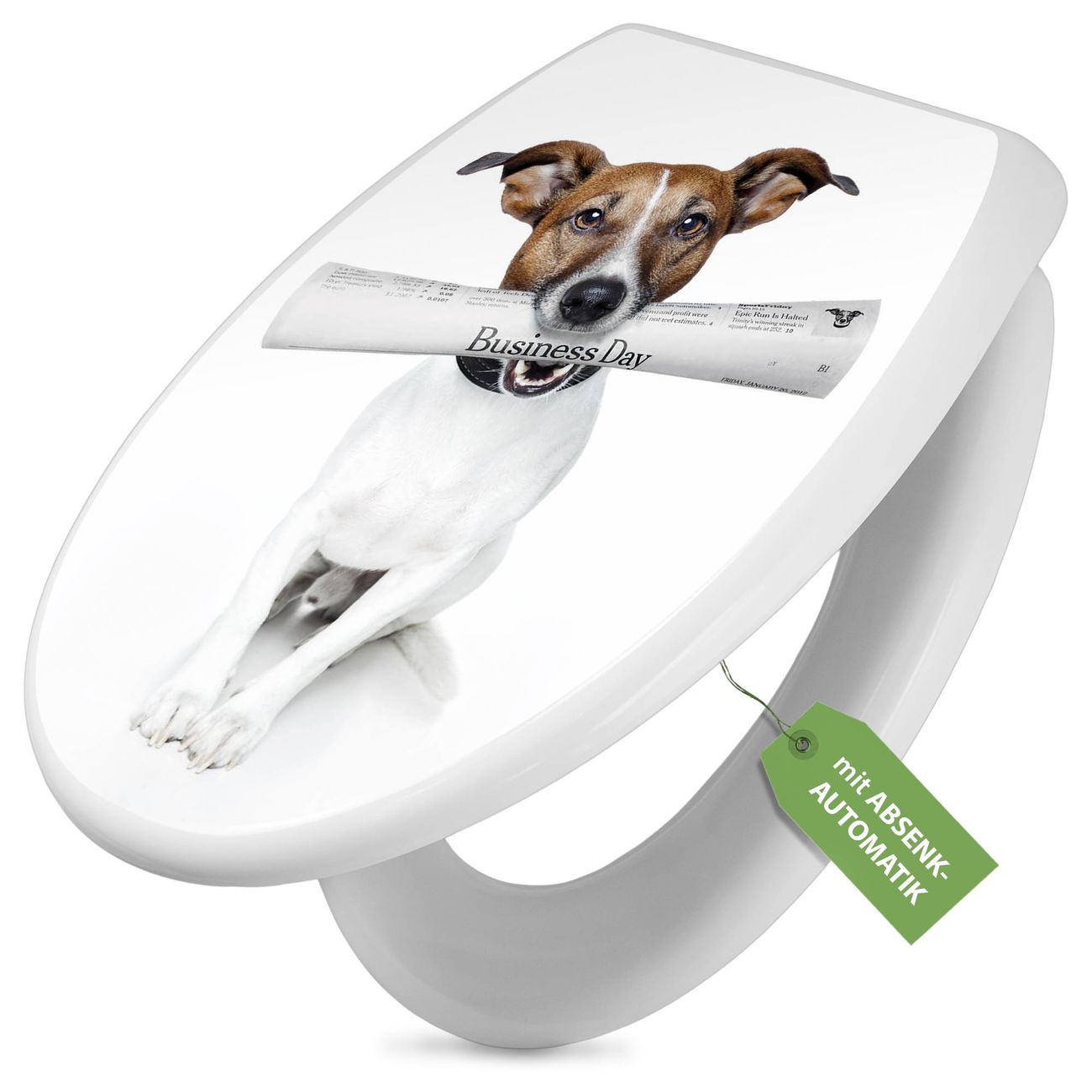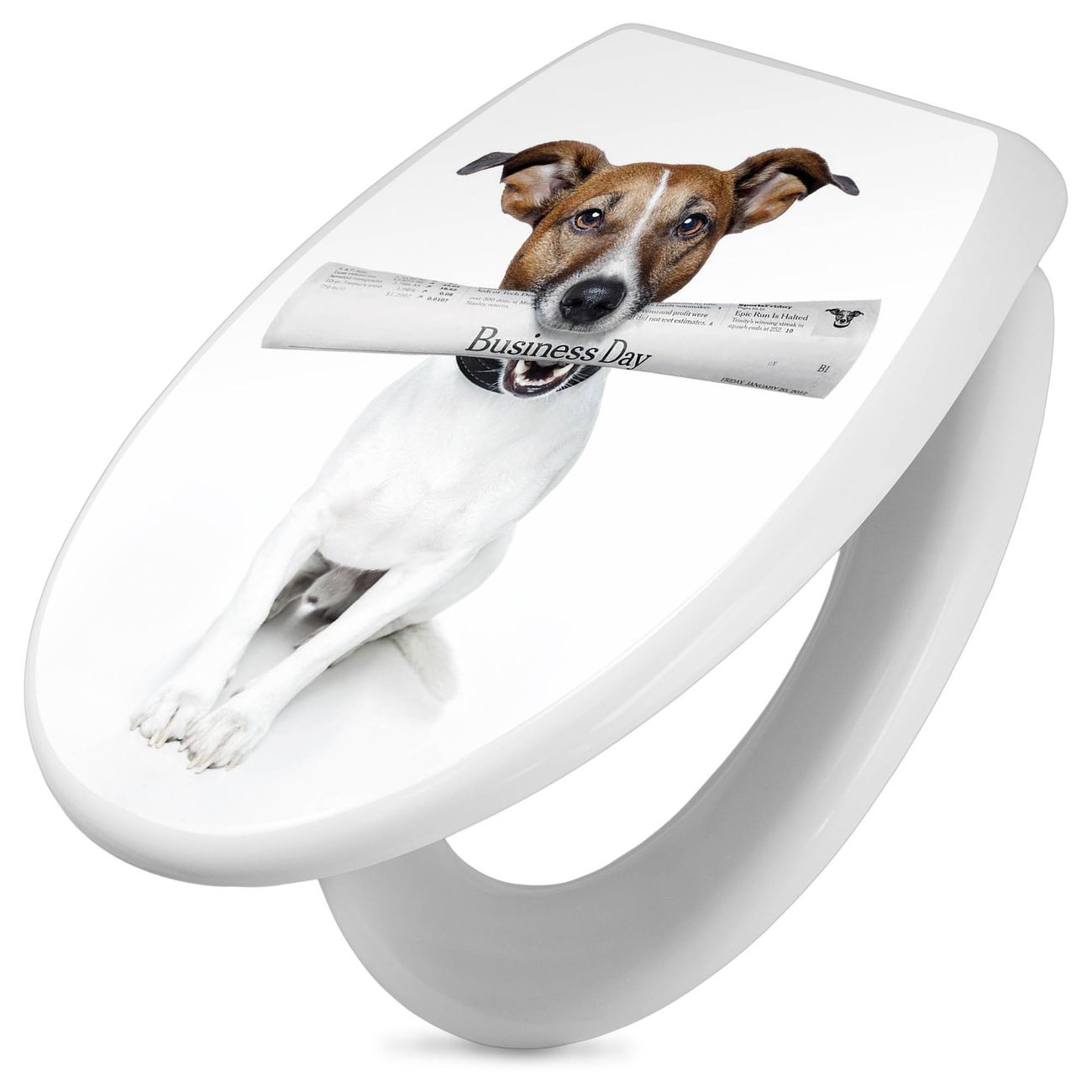 Toilettendeckel weiß mit Absenkautomatik Motiv Business Day