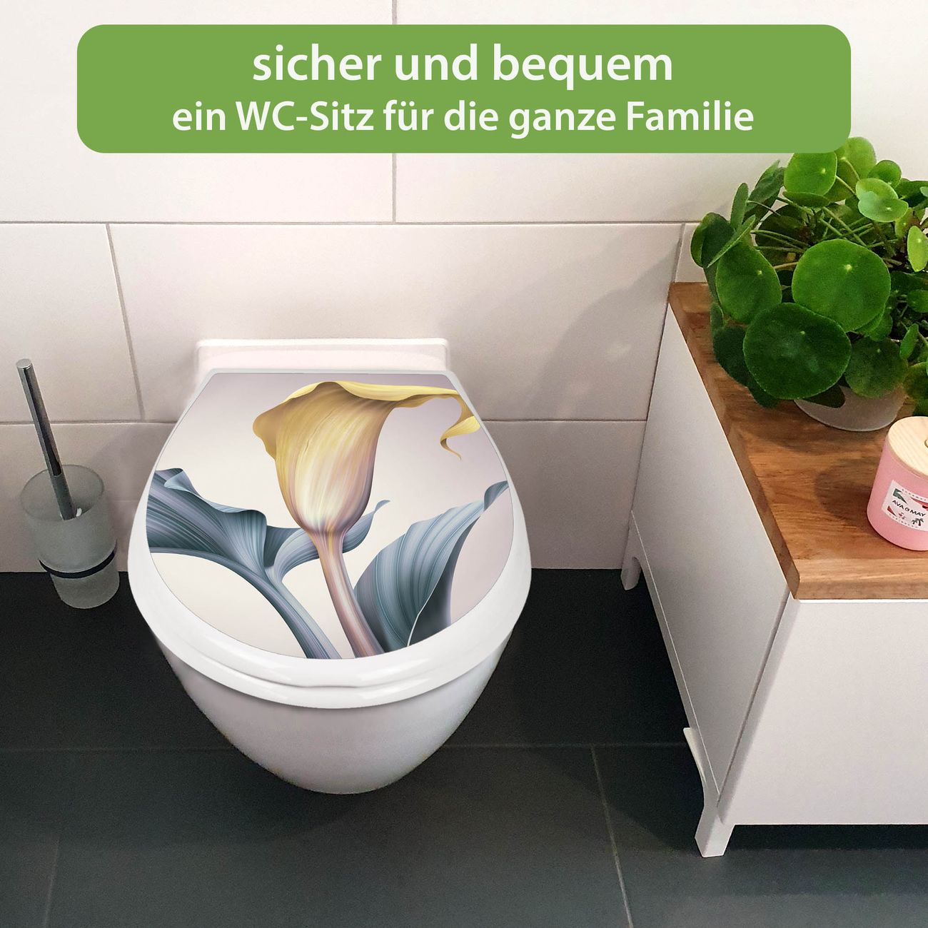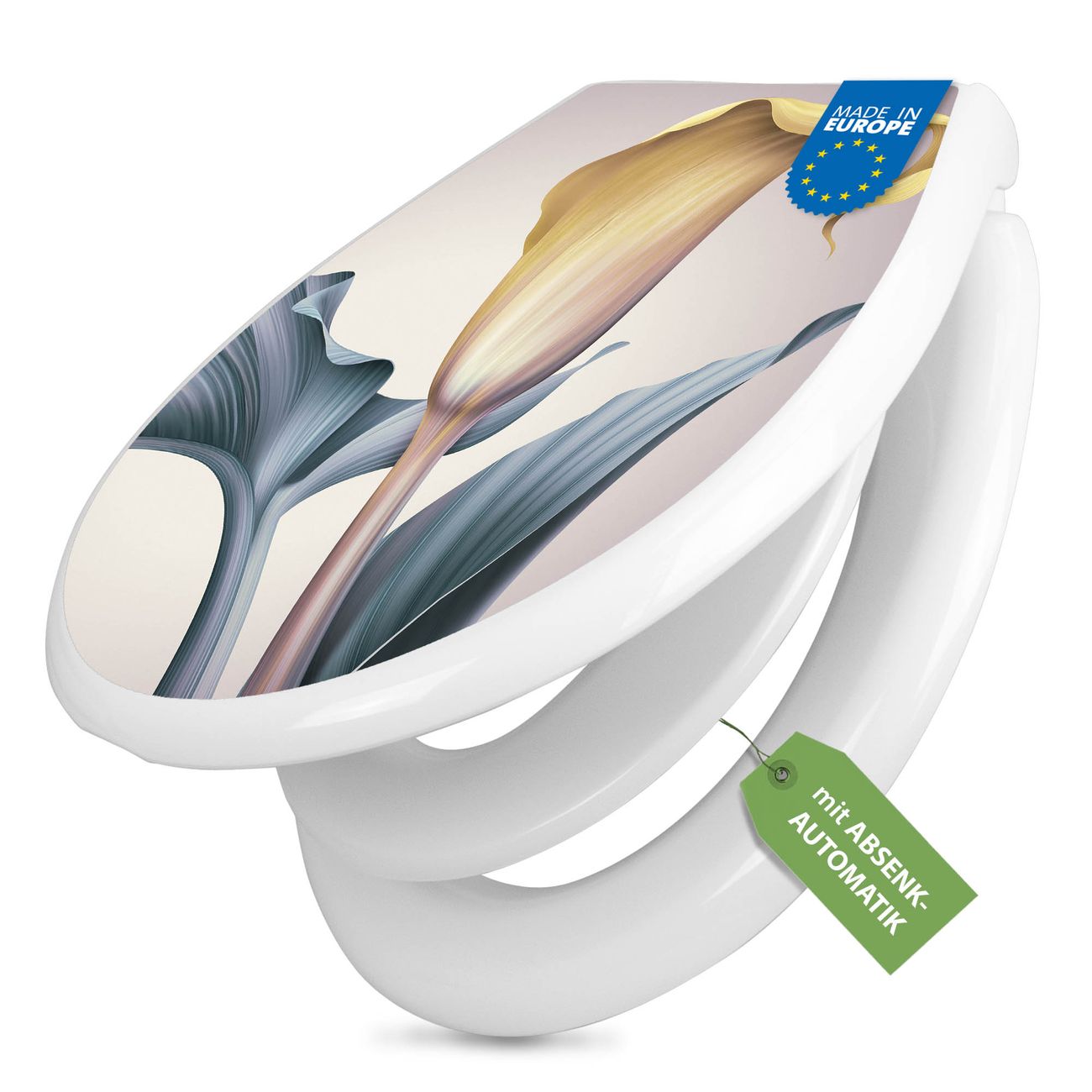 Toilettendeckel weiß mit Absenkautomatik Motiv Calla