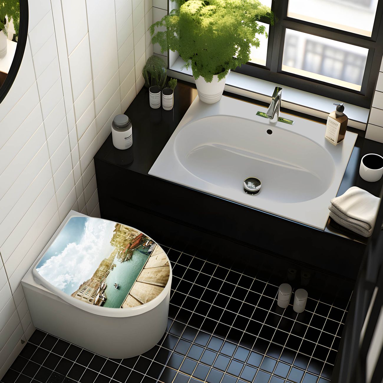 Toilettendeckel weiß mit Absenkautomatik Motiv Canale Grande