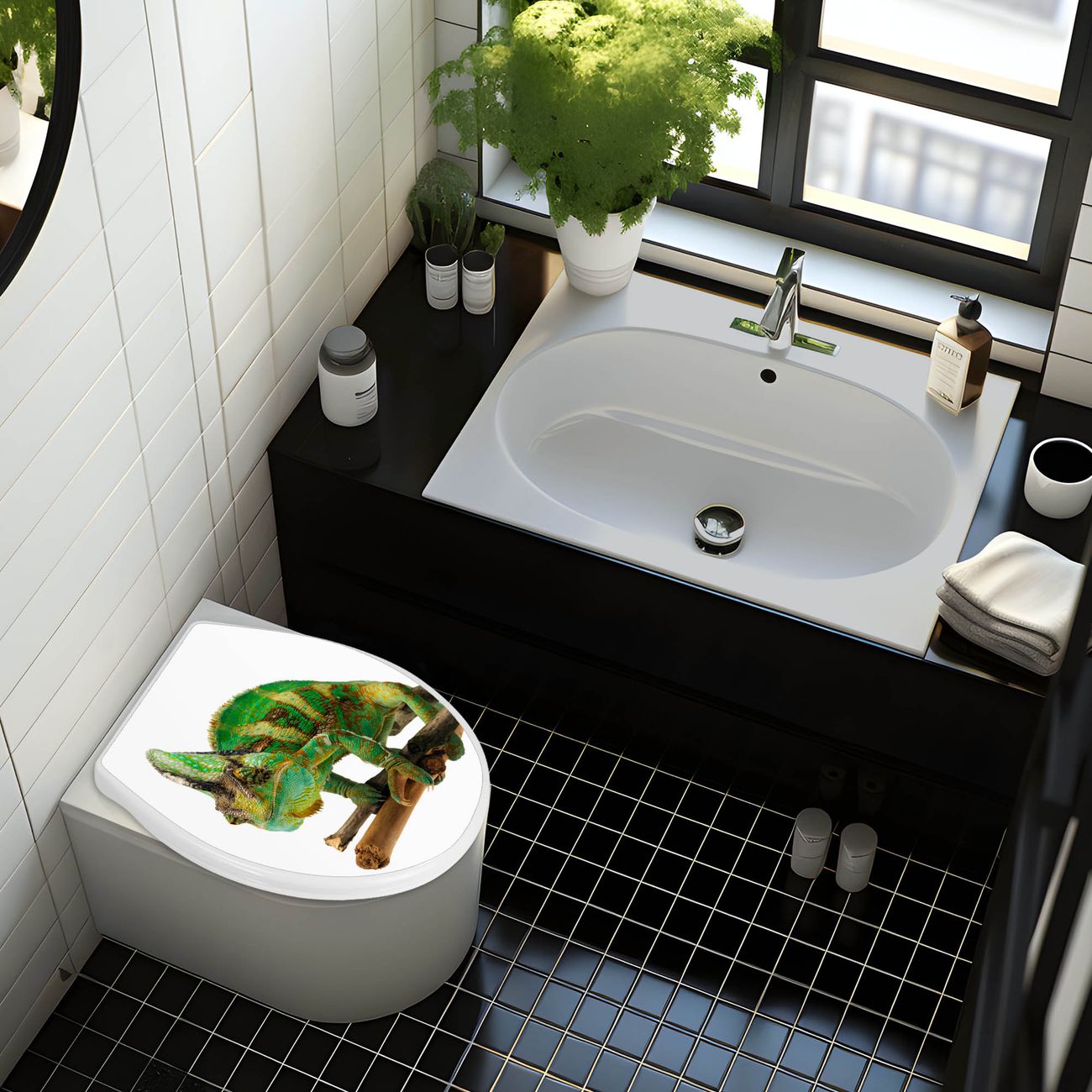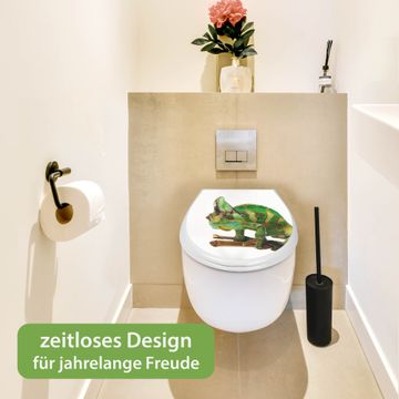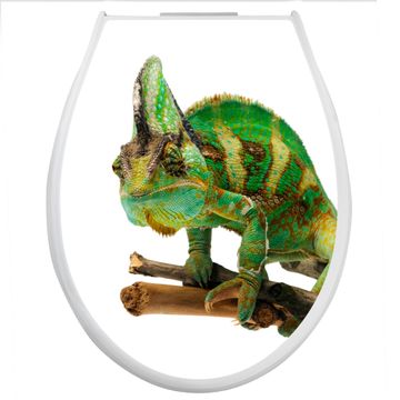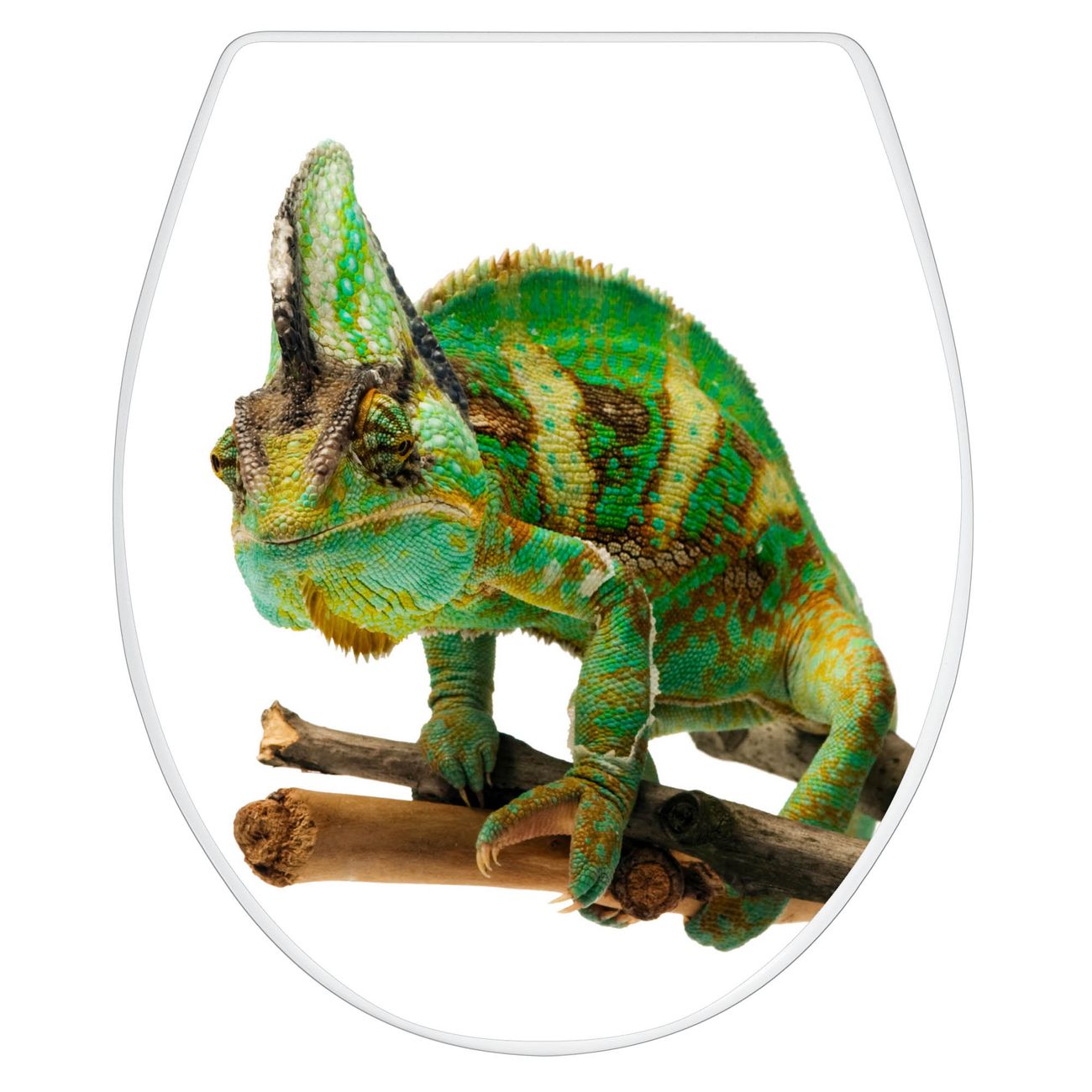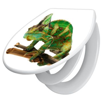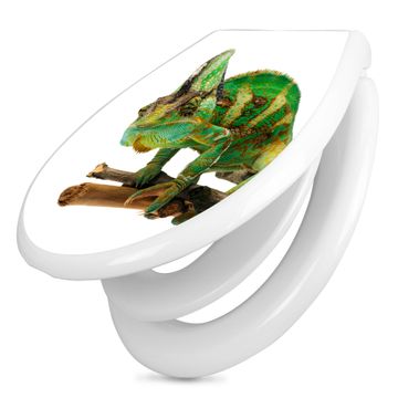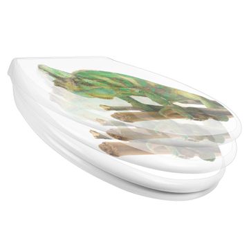 Toilettendeckel weiß mit Absenkautomatik Motiv Chamäleon