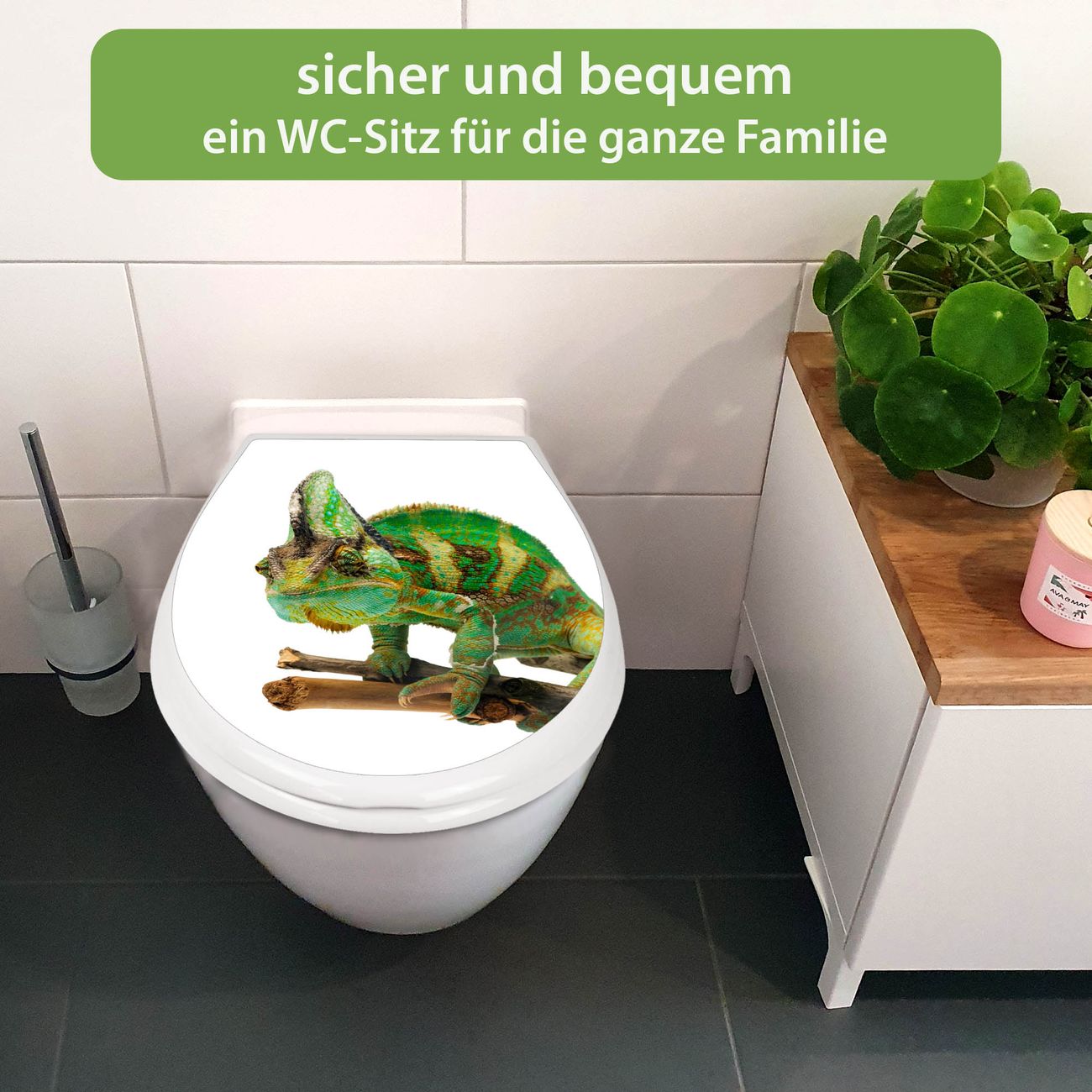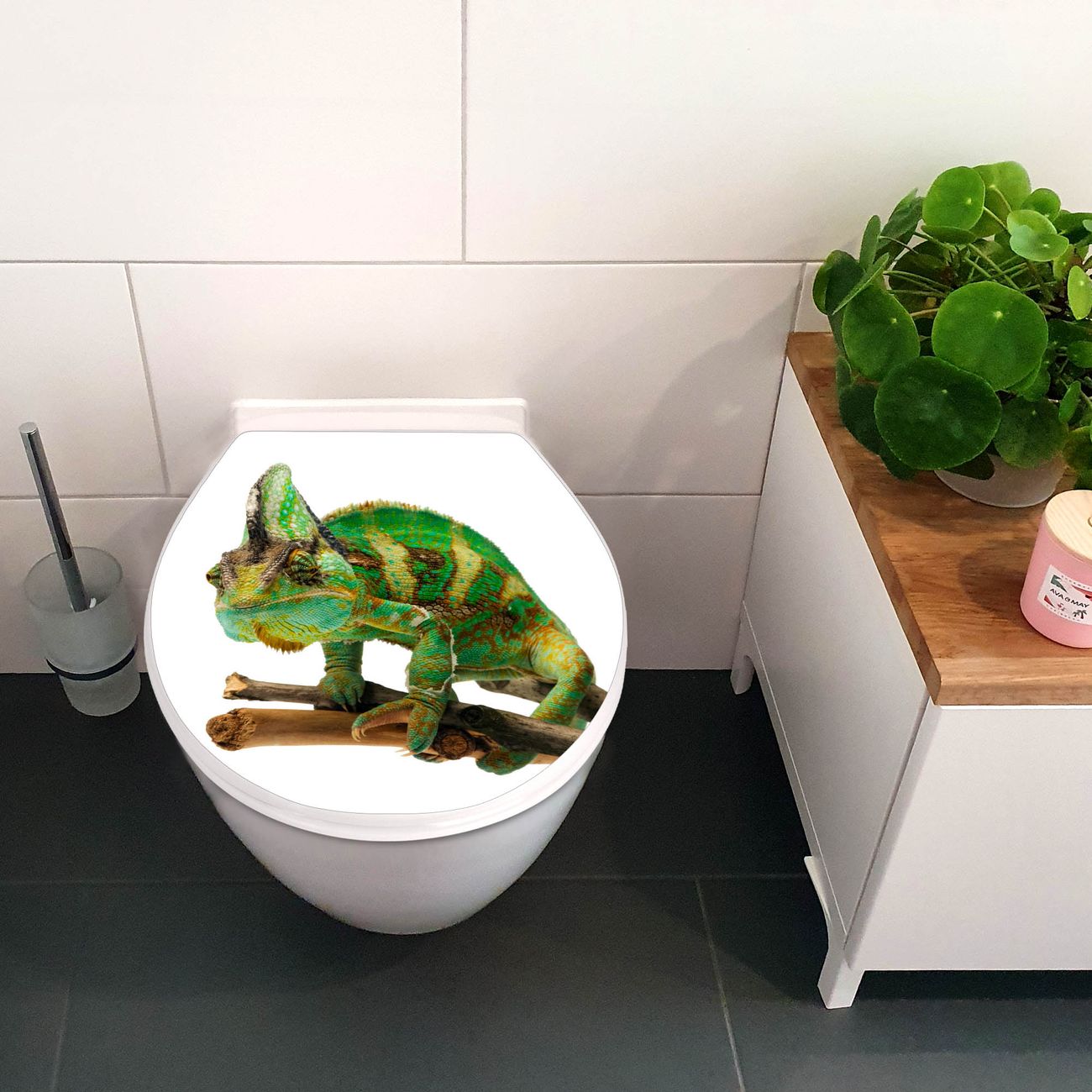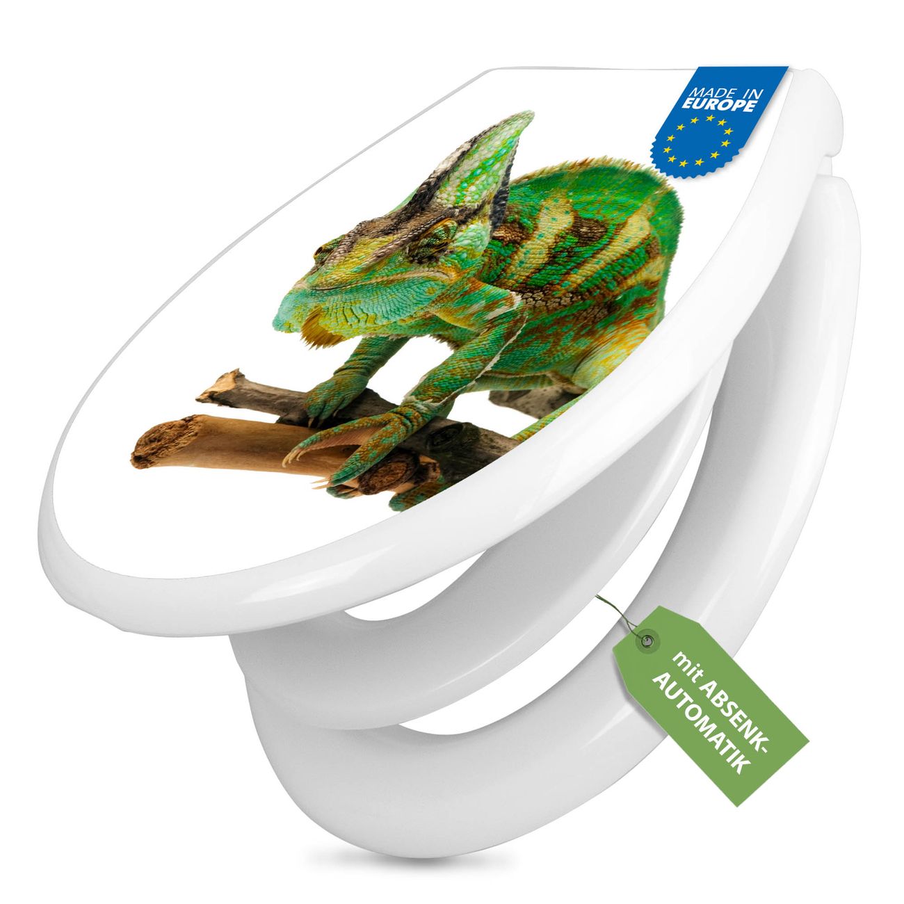 Toilettendeckel weiß mit Absenkautomatik Motiv Chamäleon