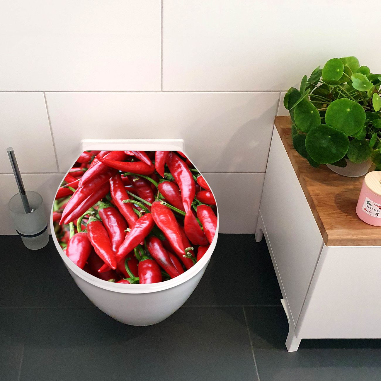 Toilettendeckel weiß mit Absenkautomatik Motiv Chilli
