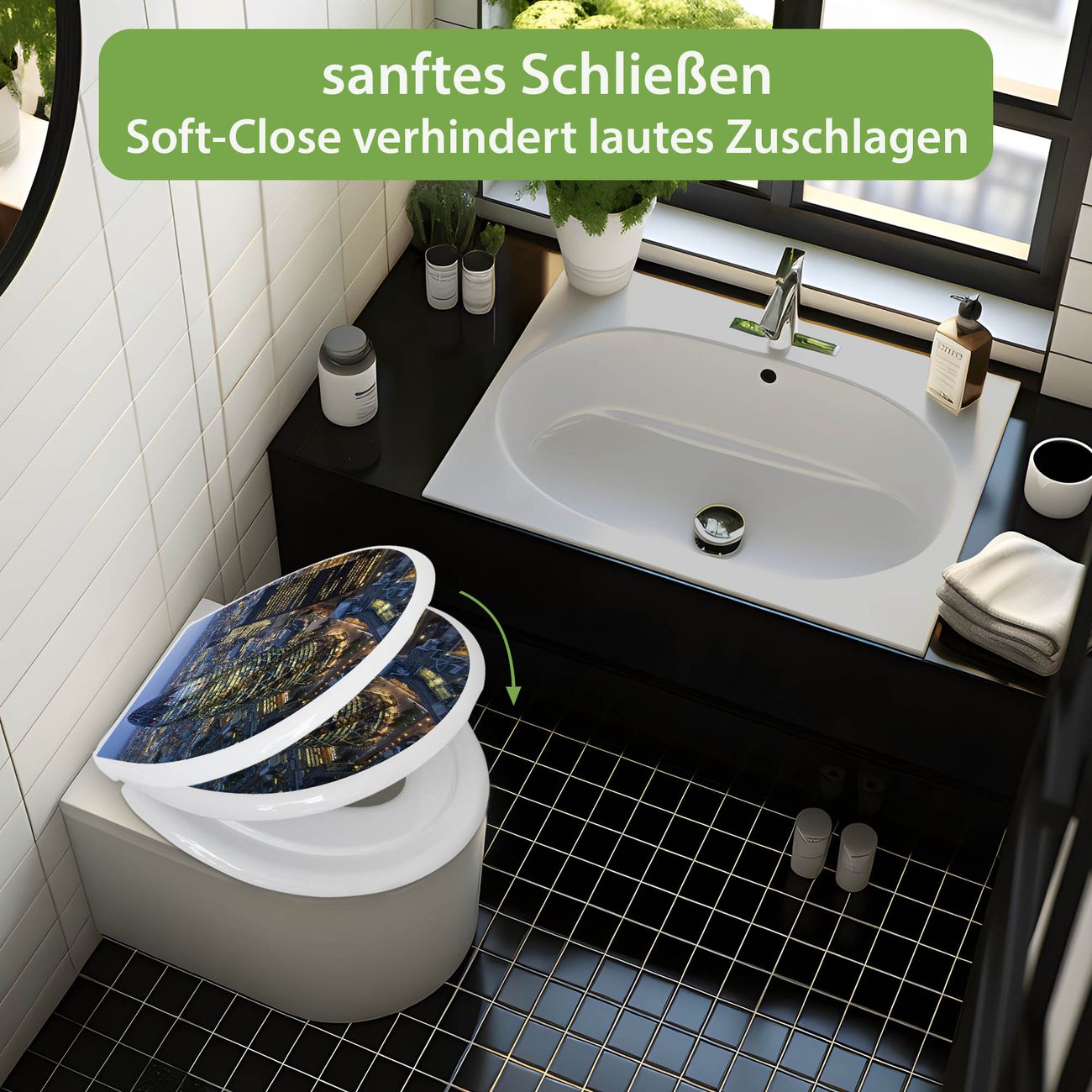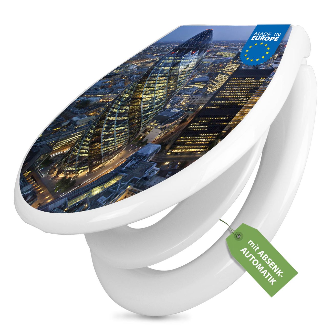 Toilettendeckel weiß mit Absenkautomatik Motiv City Of London