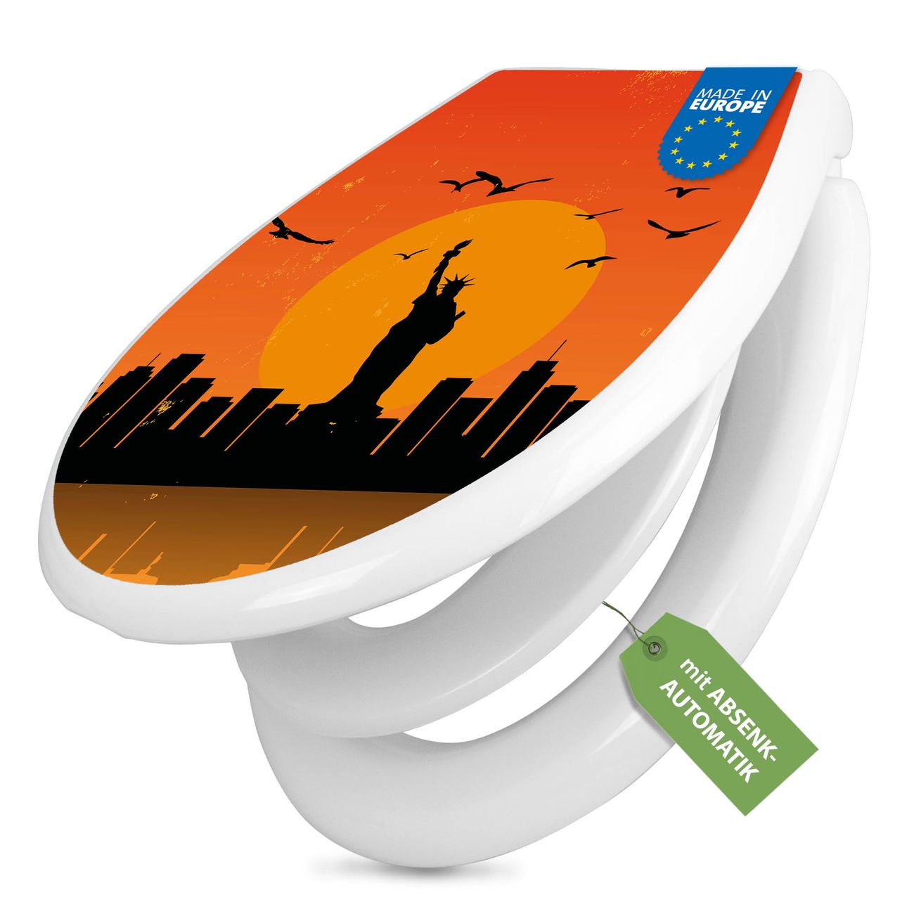 Toilettendeckel weiß mit Absenkautomatik Motiv City Poster New York