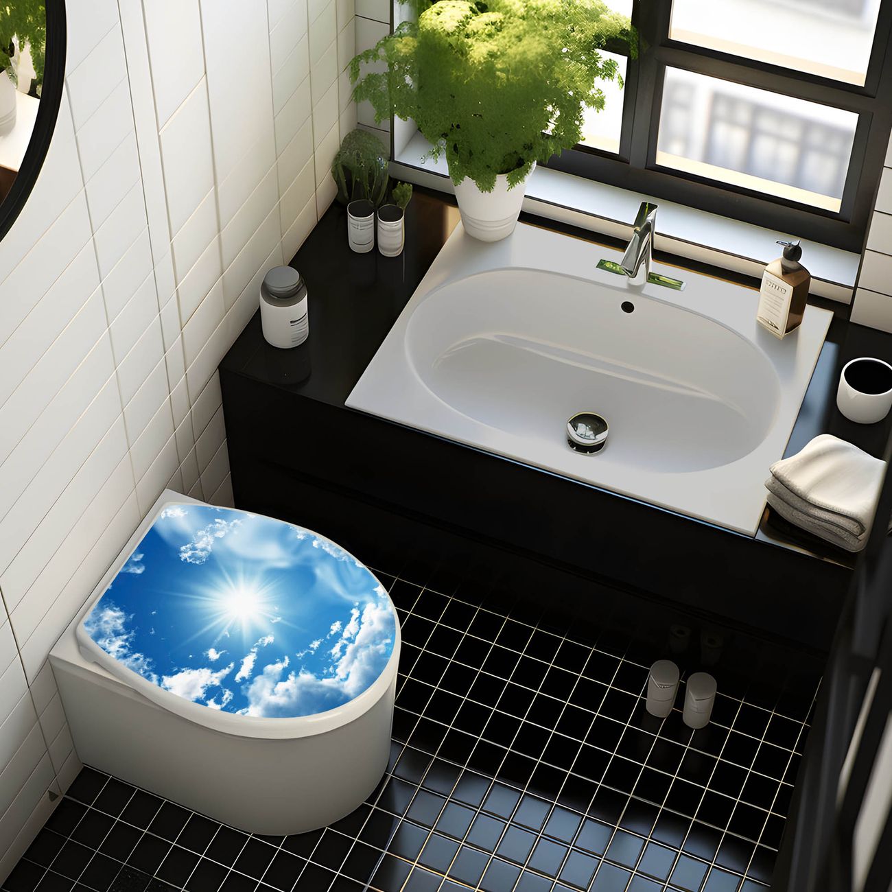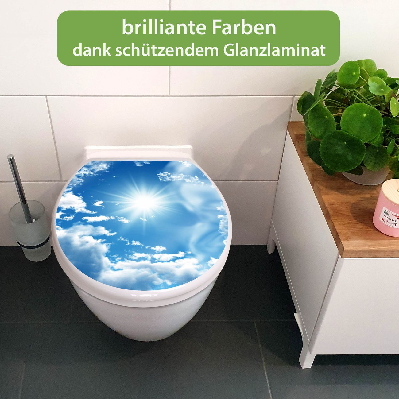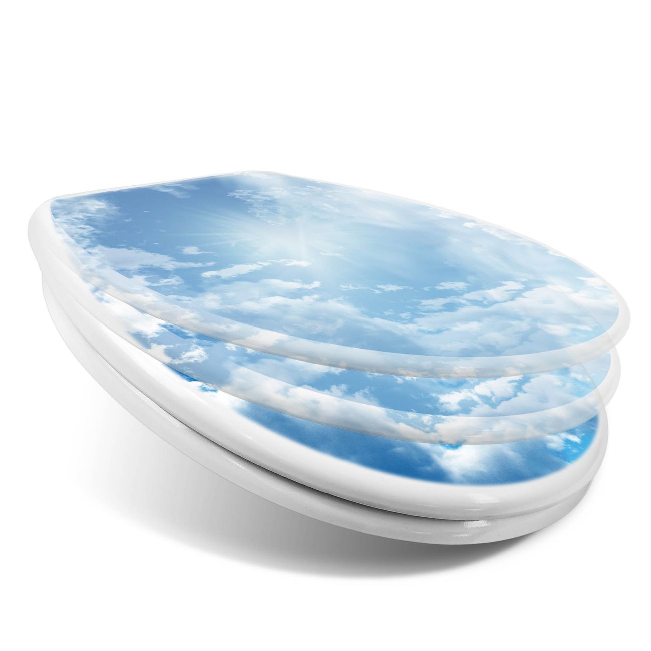 Toilettendeckel weiß mit Absenkautomatik Motiv Clouds