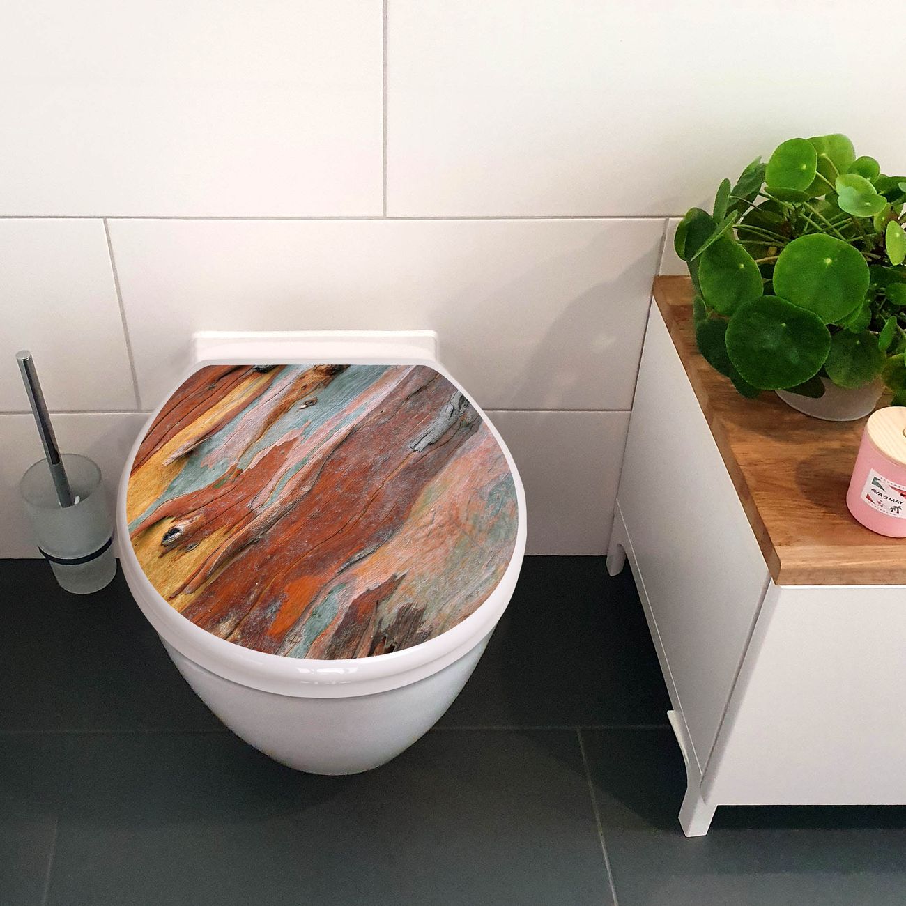 Toilettendeckel weiß mit Absenkautomatik Motiv Coloured Wood