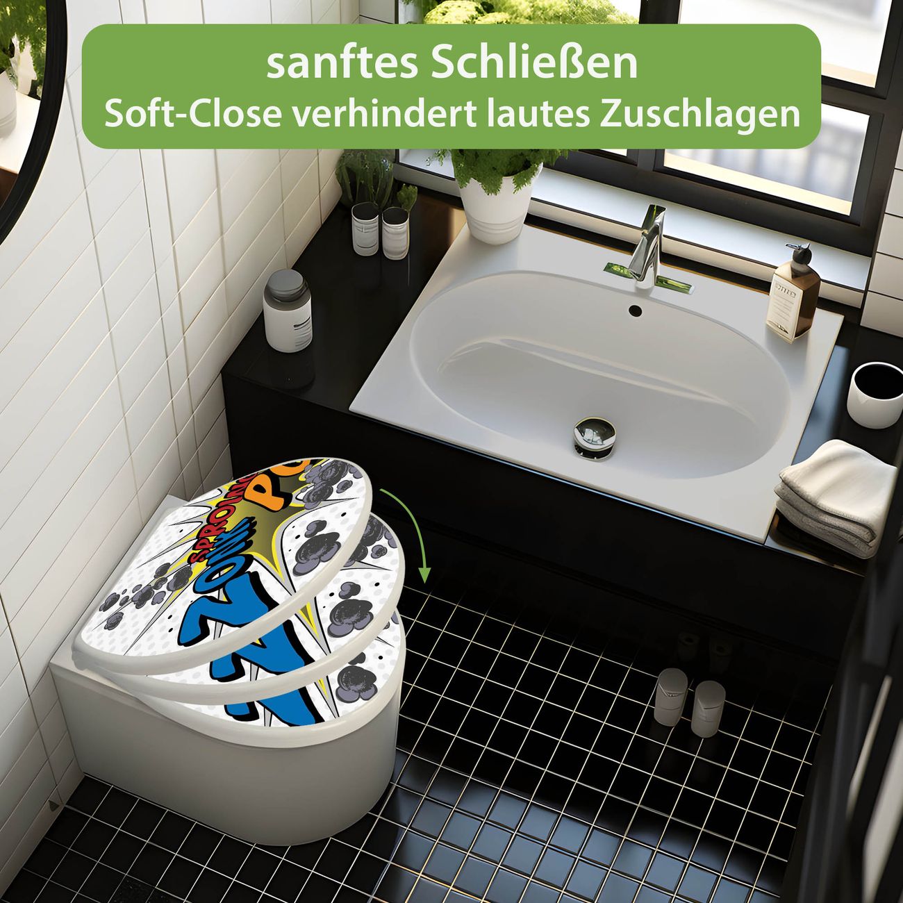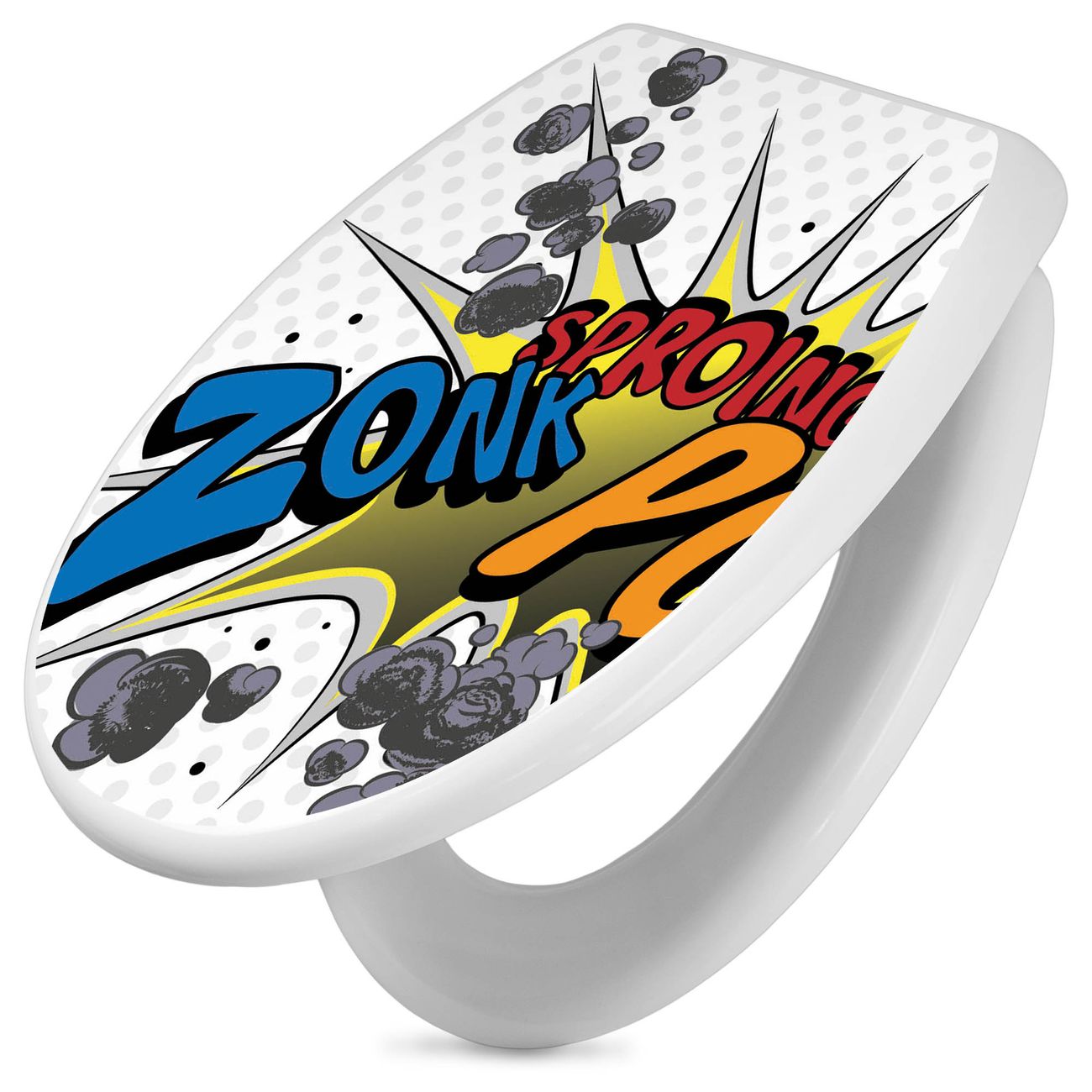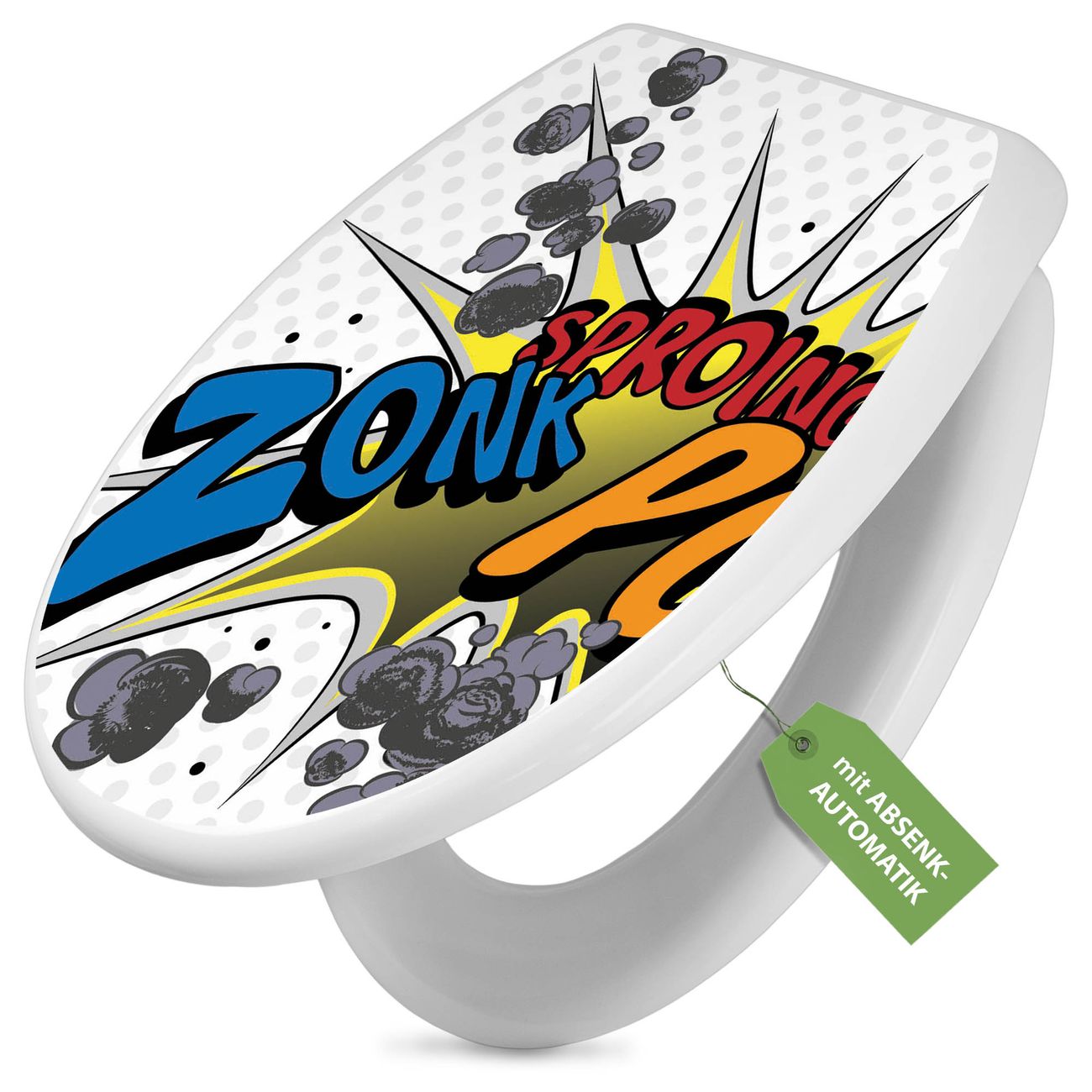 Toilettendeckel weiß mit Absenkautomatik Motiv Comic