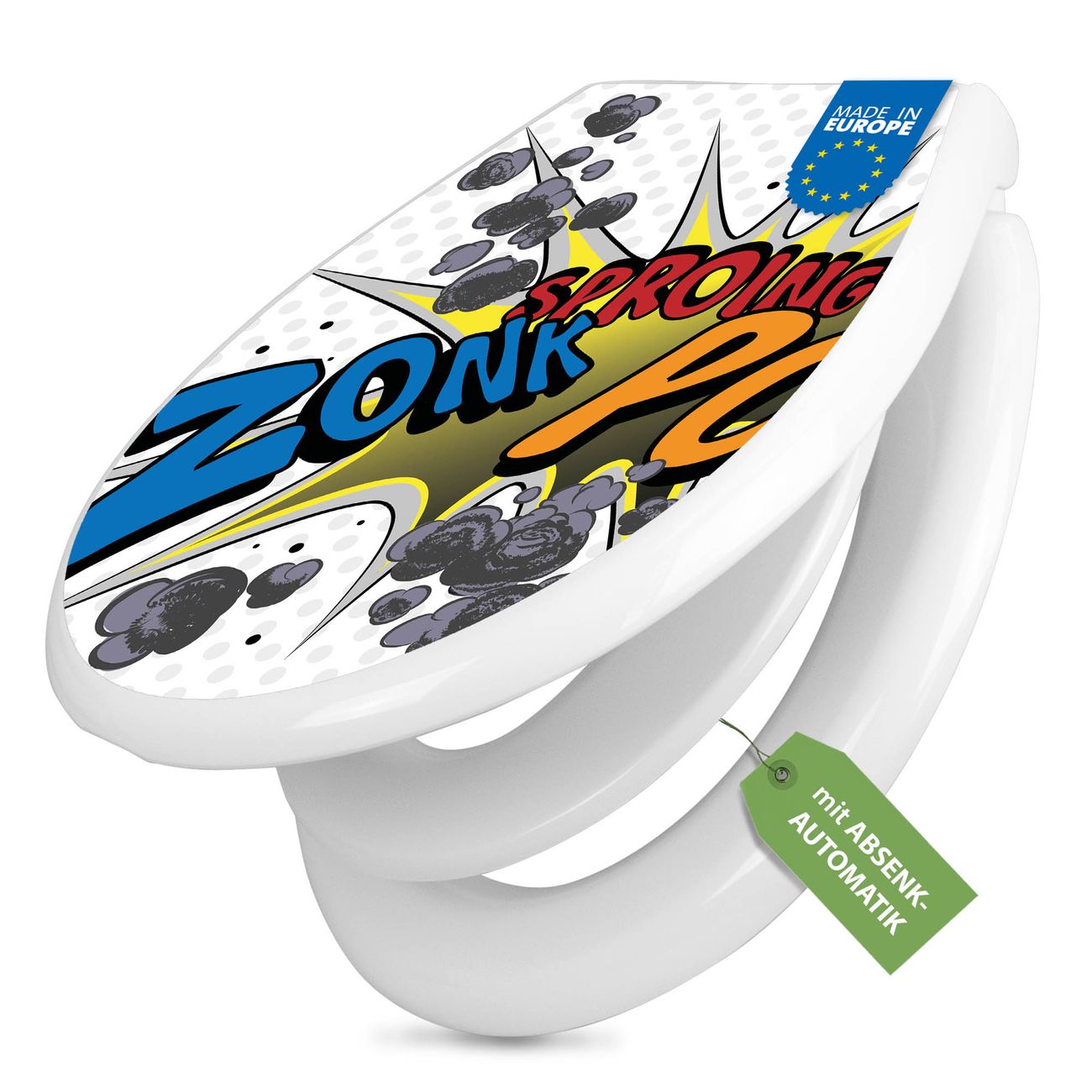 Toilettendeckel weiß mit Absenkautomatik Motiv Comic