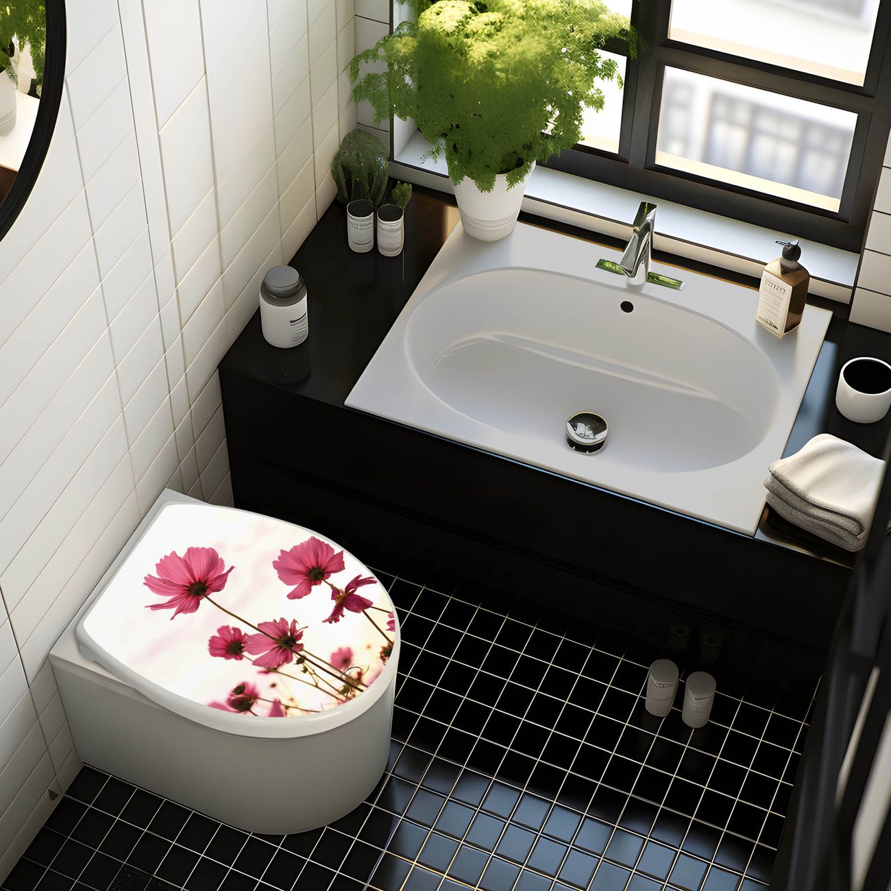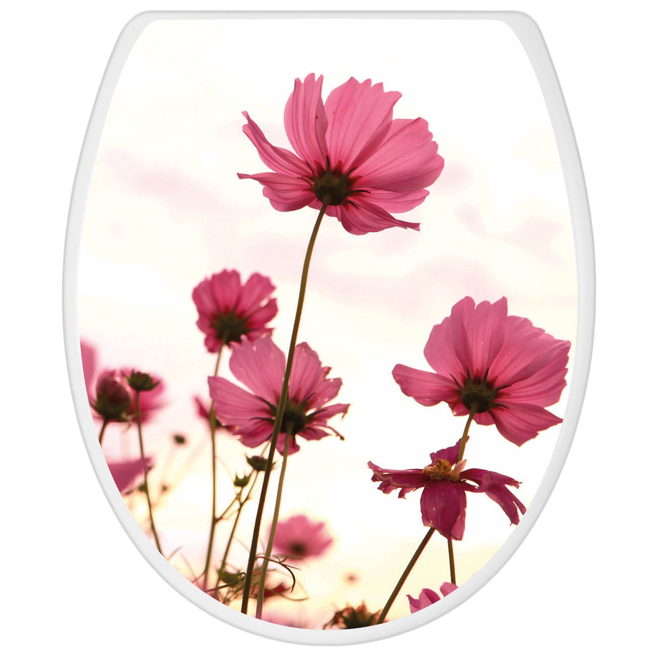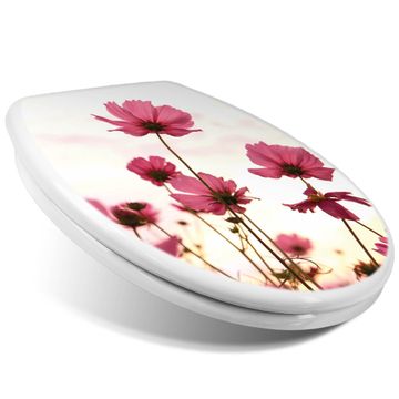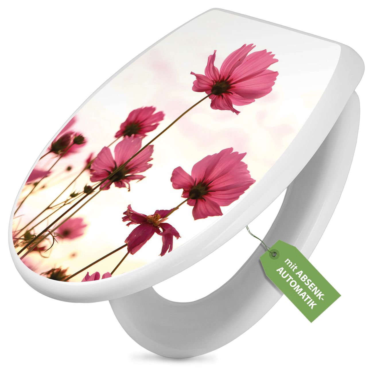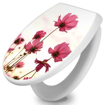 Toilettendeckel weiß mit Absenkautomatik Motiv Cosmea