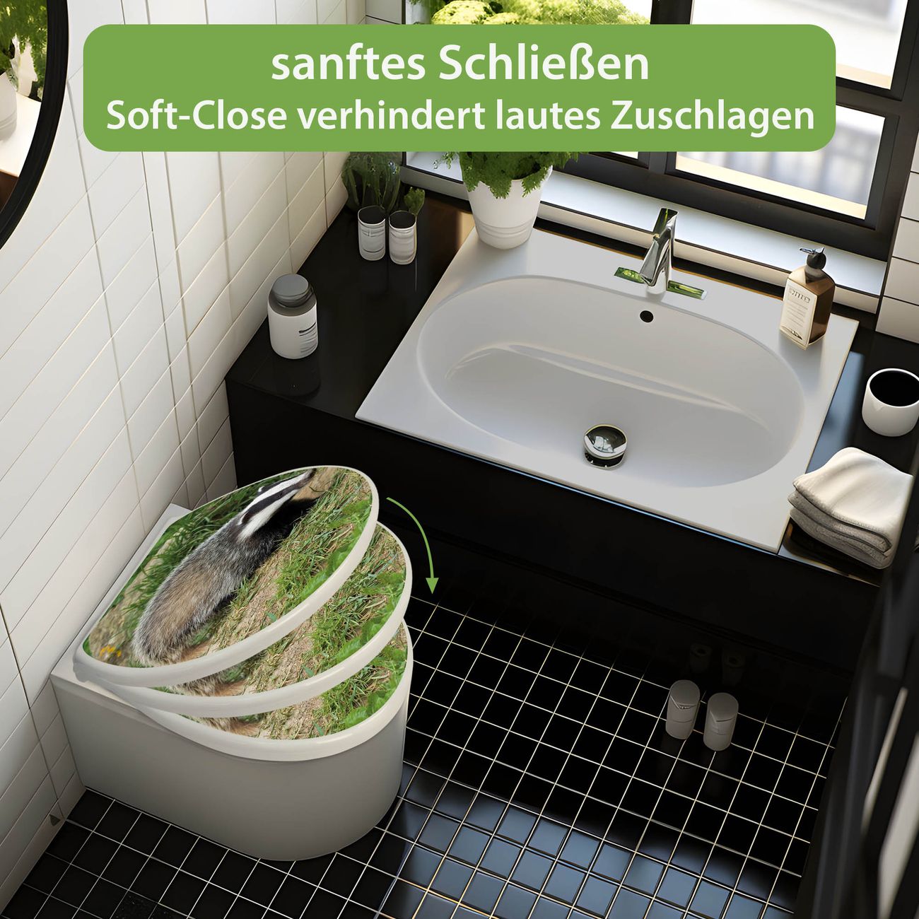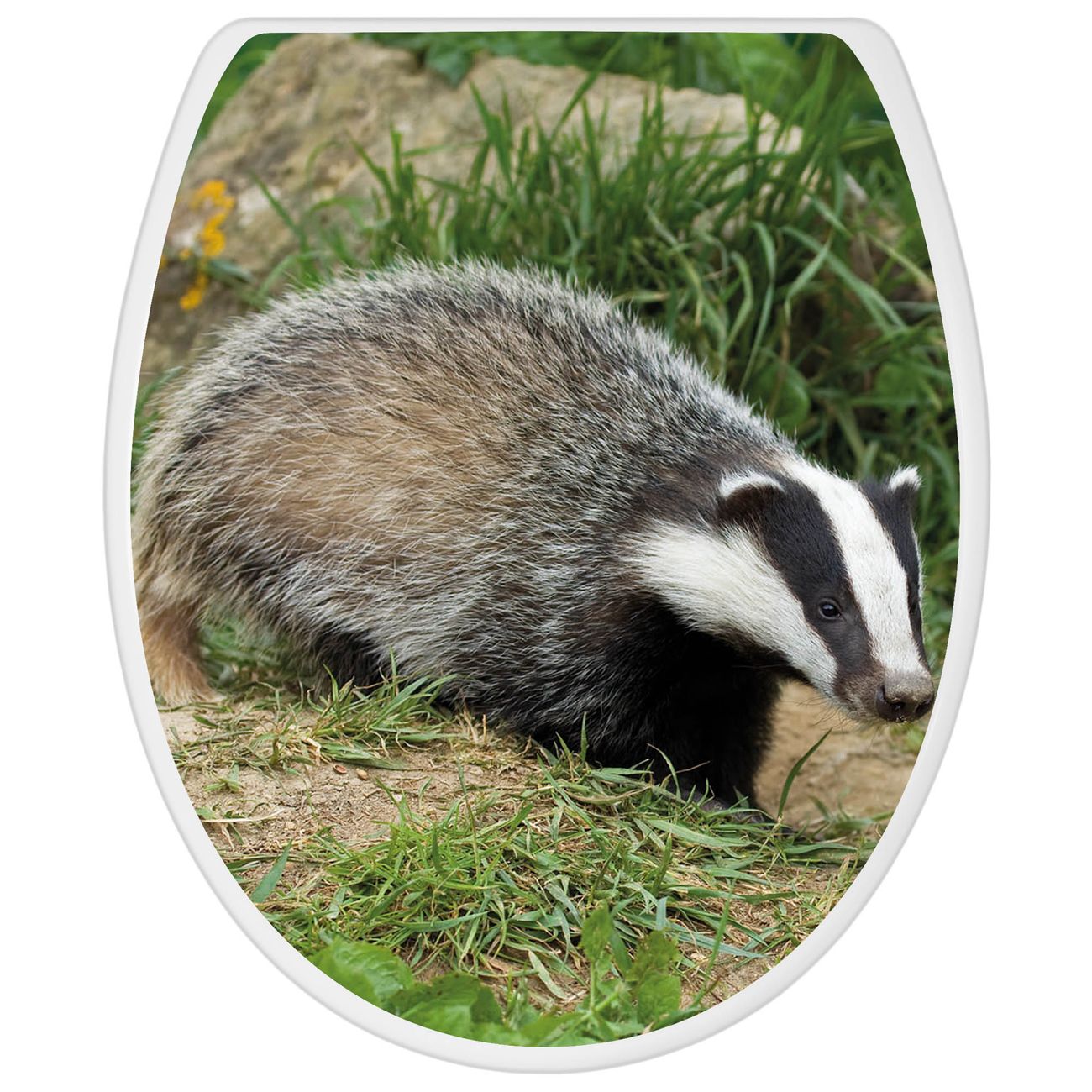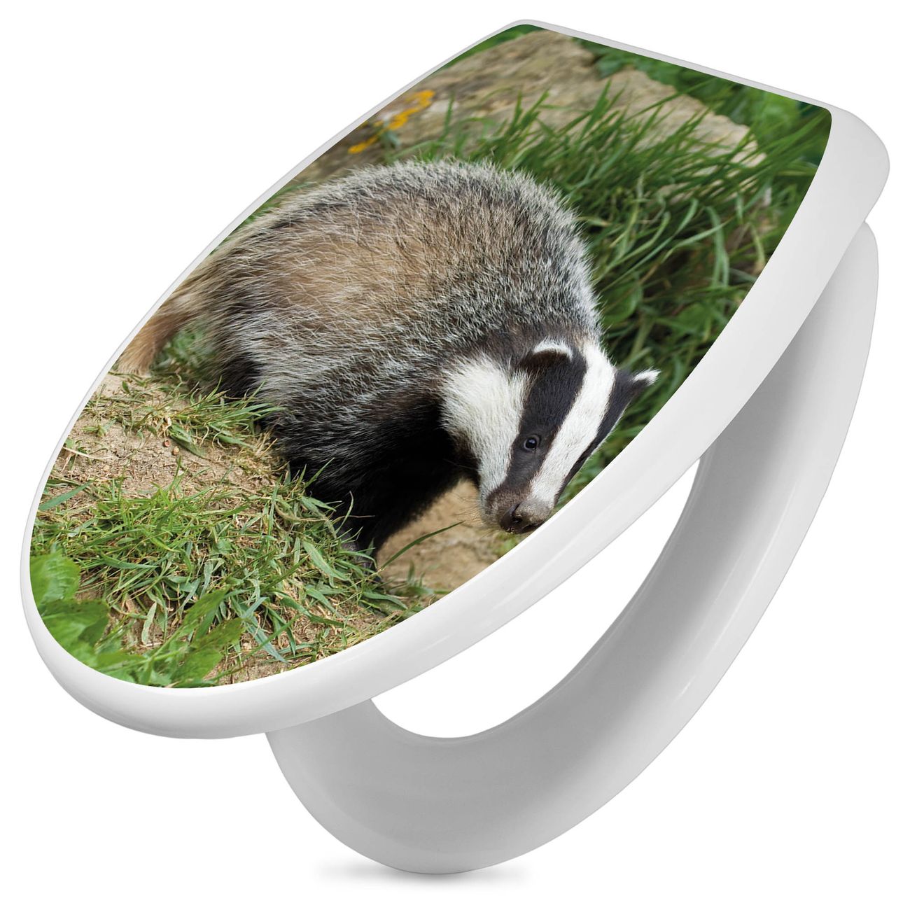 Toilettendeckel weiß mit Absenkautomatik Motiv Dachs