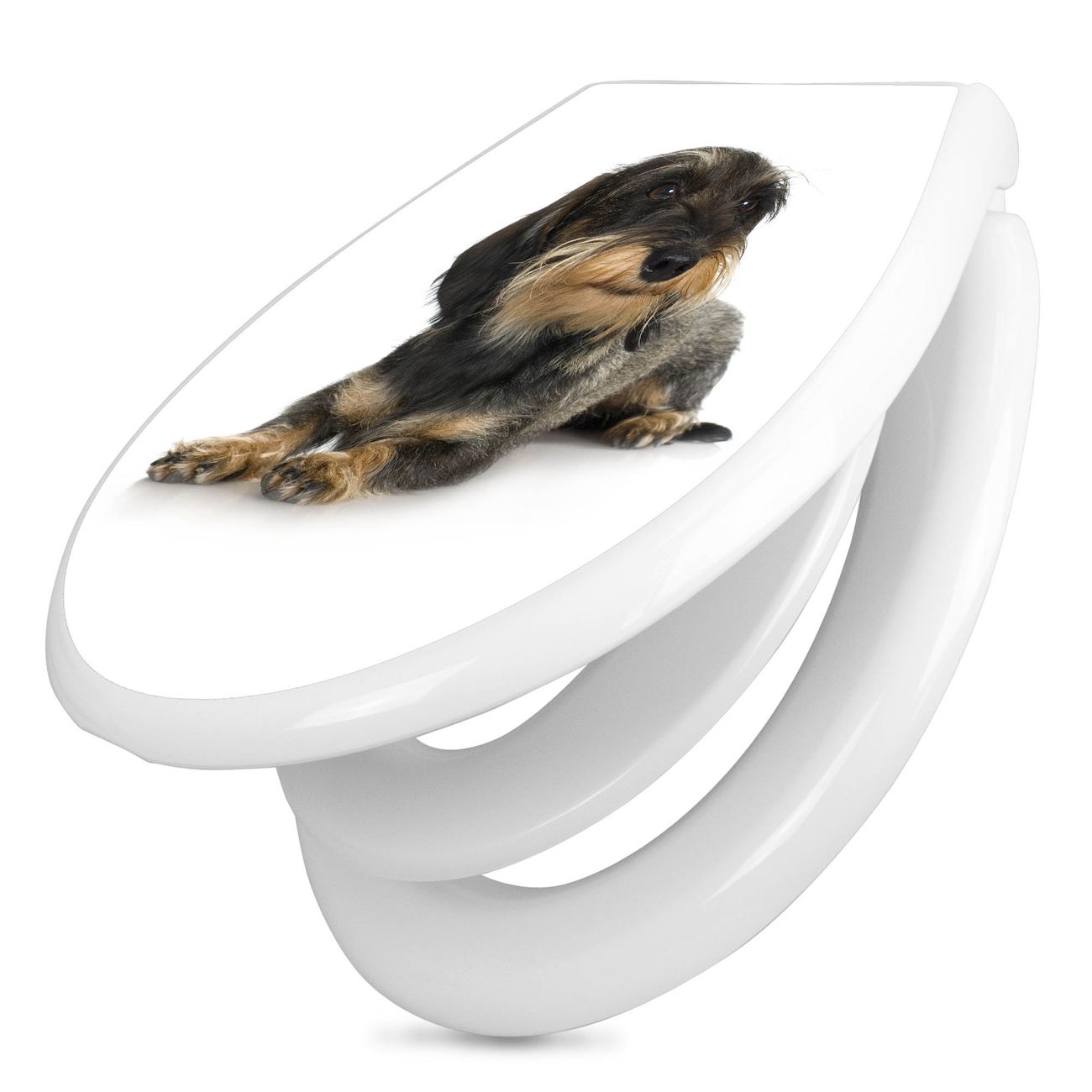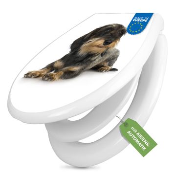 Toilettendeckel weiß mit Absenkautomatik Motiv Dackel