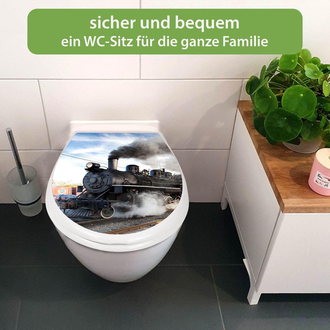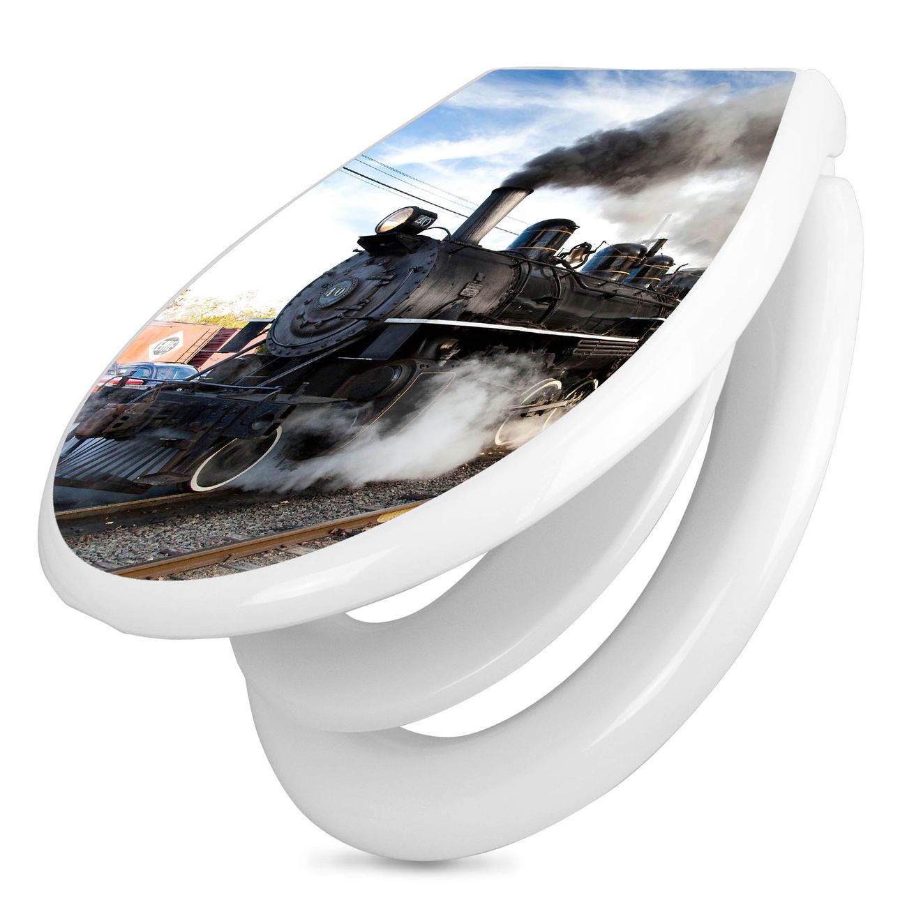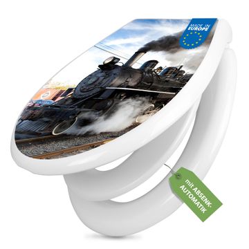 Toilettendeckel weiß mit Absenkautomatik Motiv Dampflok