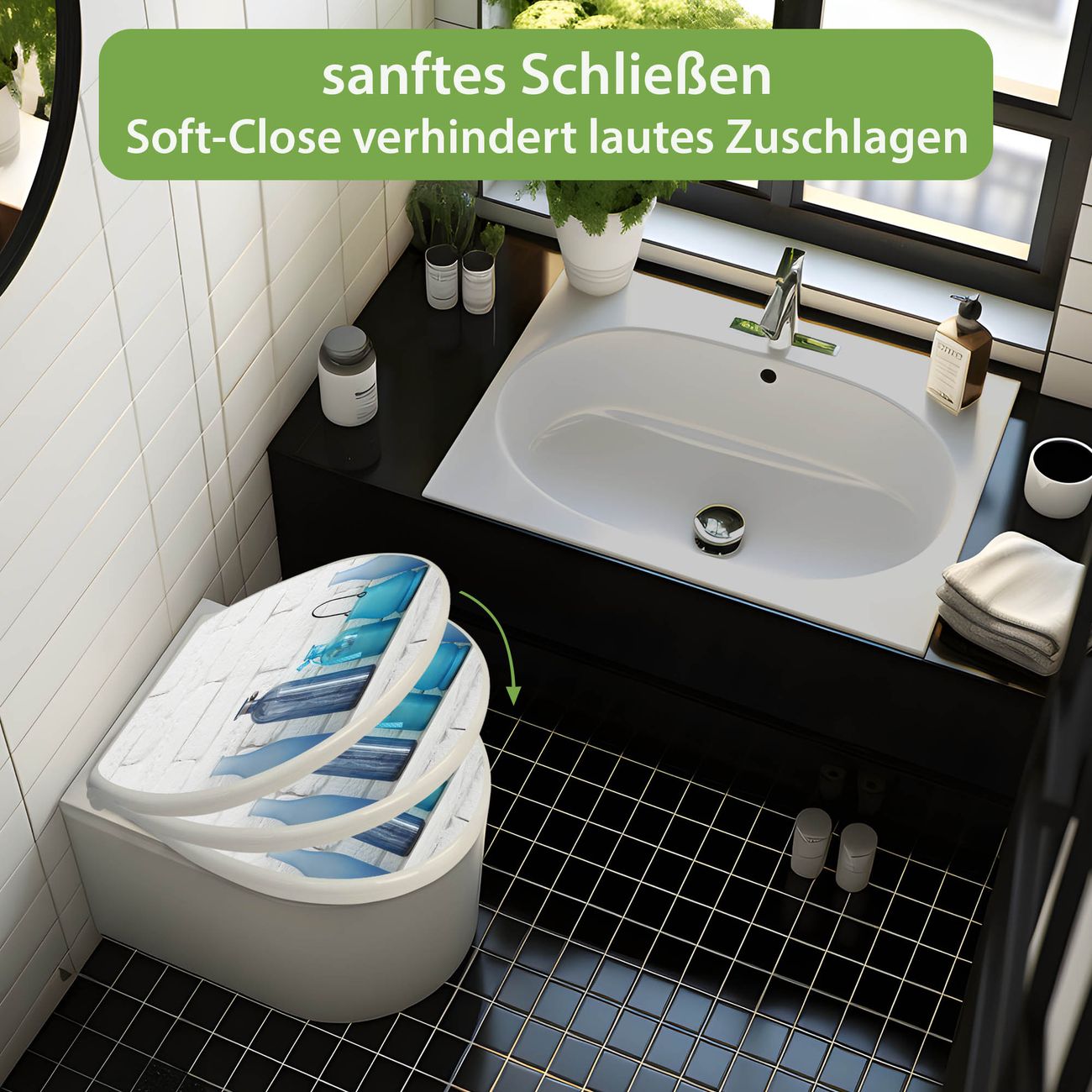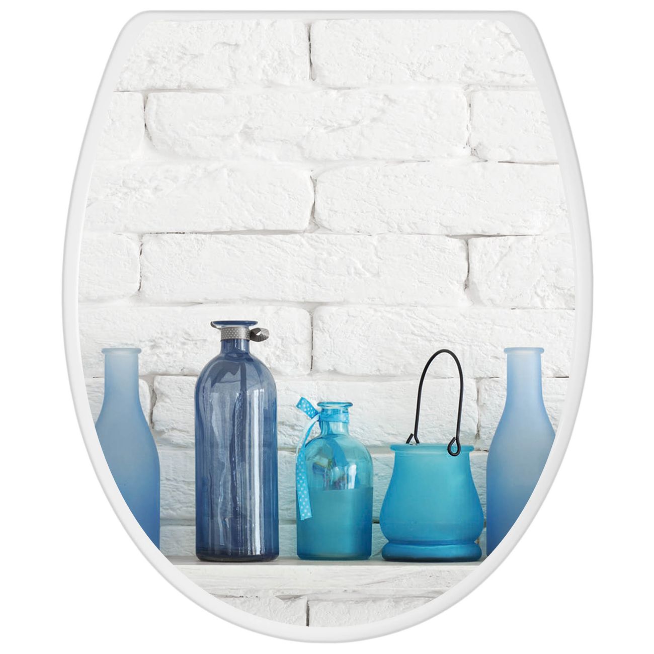 Toilettendeckel weiß mit Absenkautomatik Motiv Dekoartikel Blau