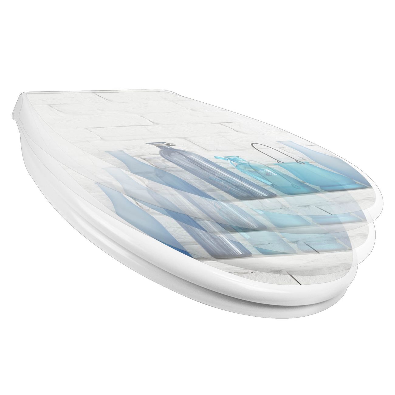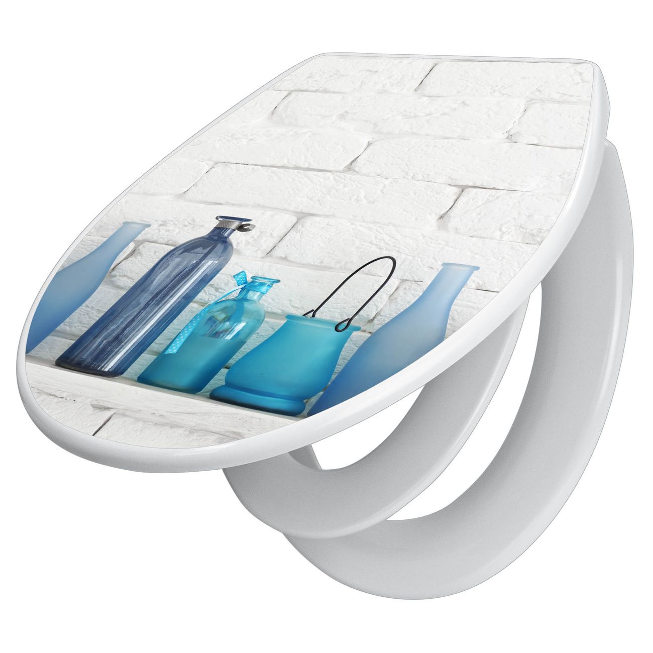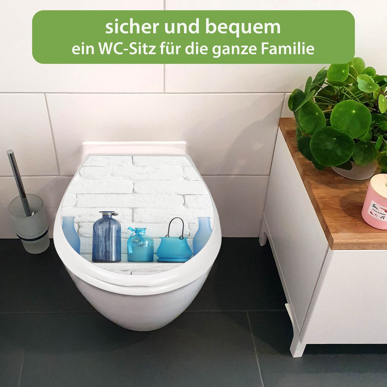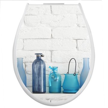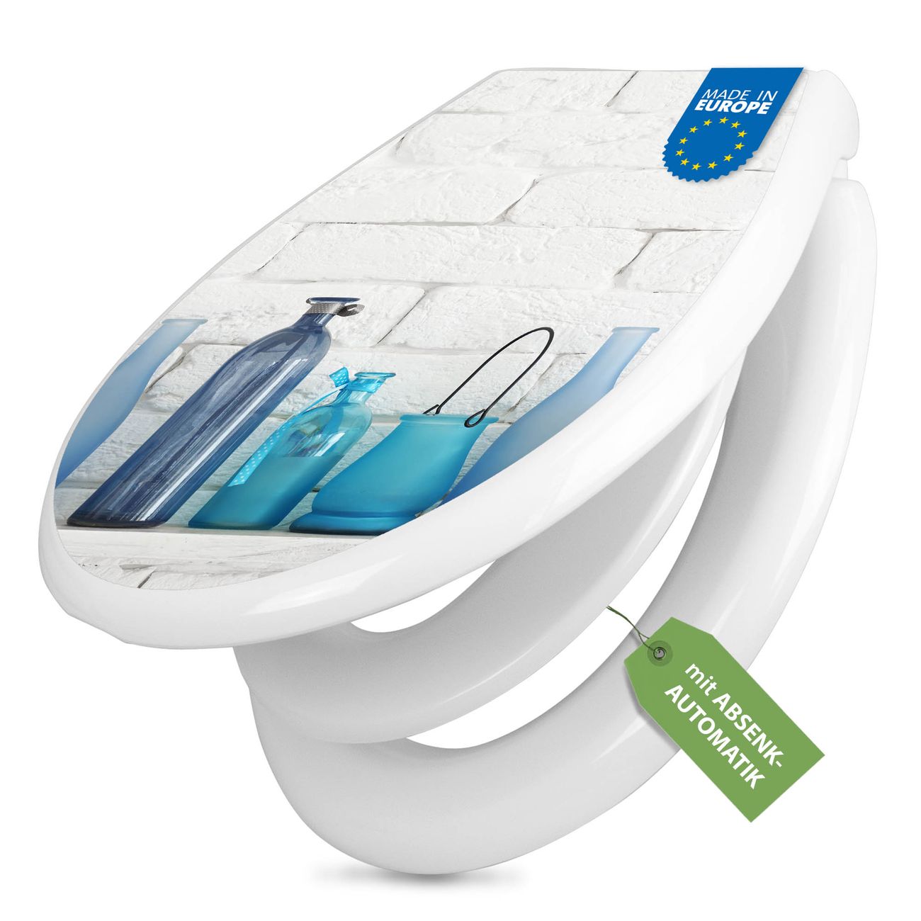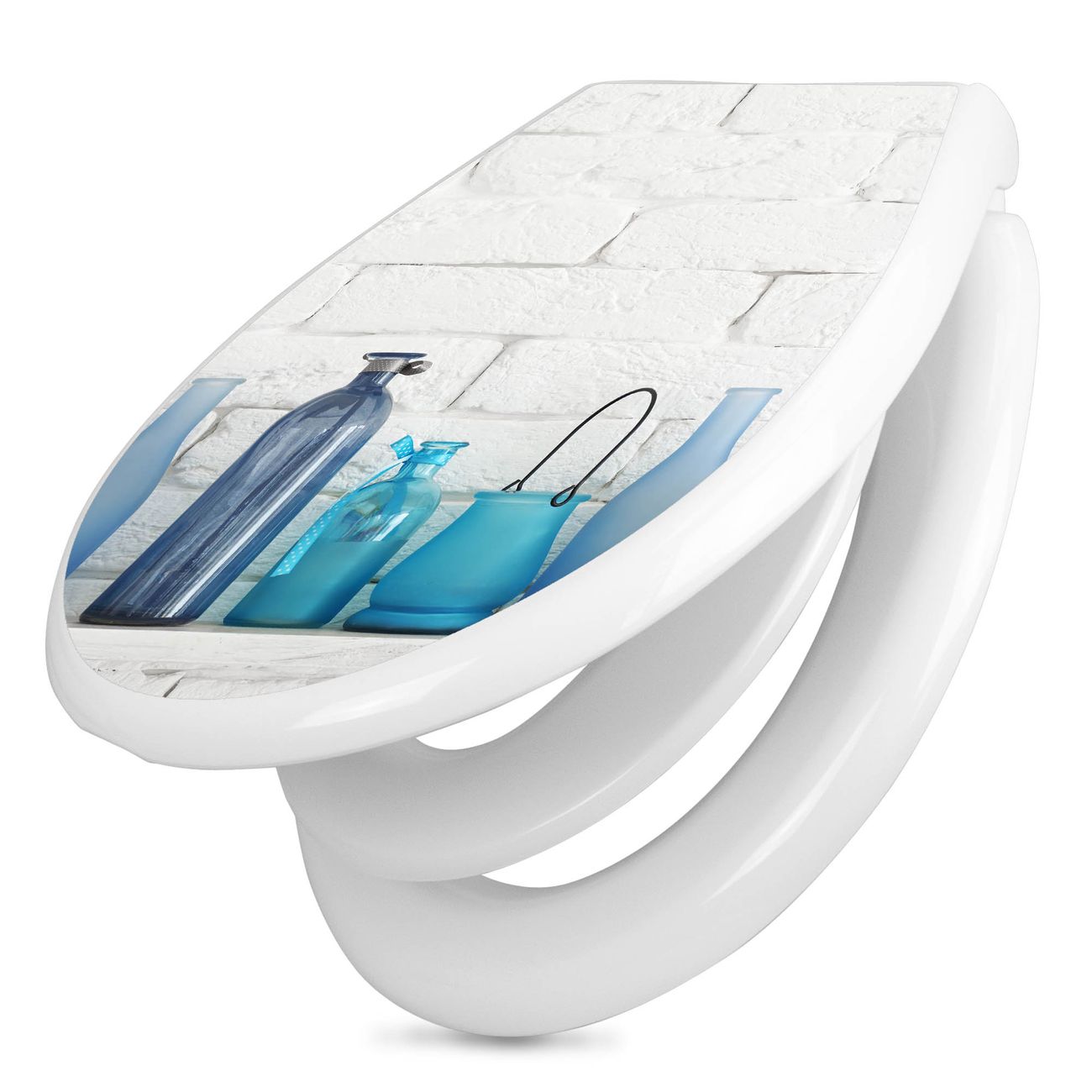 Toilettendeckel weiß mit Absenkautomatik Motiv Dekoartikel Blau