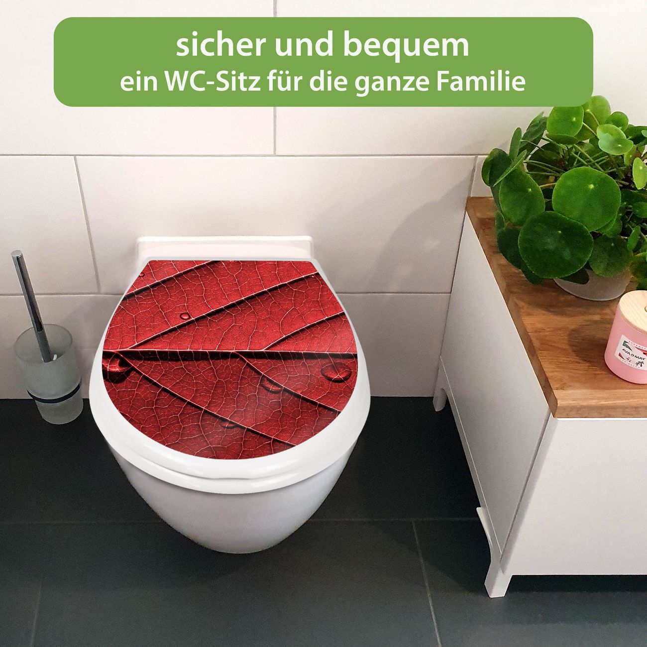 FUNKTION:Mit dem banjado Familien WC Sitz mit Absenkautomatik und dem Motiv Motiv Detail Blatt verbinden Sie Design mit Funktionalität. Sie erhalten den Toilettendeckel in bewährt guter Qualität mit Montagematerial passend auf alle Euro-WC-Becken. Die Gesamtgröße beträgt 37,1cm x 44,9cm x 5cm, die Grundfarbe ist weiß.</p> DESIGN:Der Klodeckel in weiß mit Motiv Motiv Detail Blatt hat eine ansprechende Optik, eine besondere Form und ist sehr stabil. Das Motiv besteht aus einer farbbrillianten Motivfolie, die durch ein Schutzlaminat zusätzlich vor Kratzern schützt. Der integrierte Kindersitz fügt sich harmonisch ein. DETAILS:Der Toilettensitz mit Soft Close besteht aus hochwertigem Polypropylen, ist geruchlos, ungiftig und kann mit handelsüblicher Seife gereinigt werden. Die Montage kann von von oben oder von unten erfolgen und ist kinderleicht. NUTZEN:Mit Hilfe der detaillierten Aufbauanleitung ermöglichen wir eine schnelle und unkomplizierte Montage. Die banjado Klobrille ist universell geeignet für alle Euro-WC-Schüsseln. Der Kindersitz kann unkompliziert entfernt werden. BANJADO:Ihr WC-Deckel wird in Sachsen in einer kleinen Manufaktur von Hand veredelt. Die Motivfolie ist lösungsmittelfrei und schutzlaminiert für einen langen Halt. Wir wünschen viel Freude bei der Auswahl eines schönen Motivs.