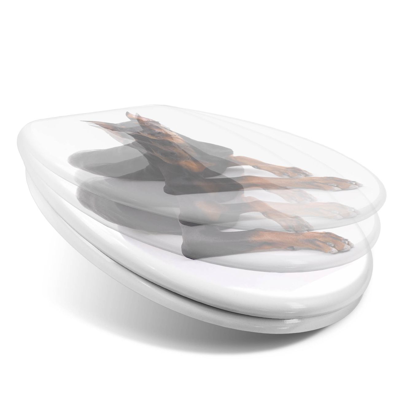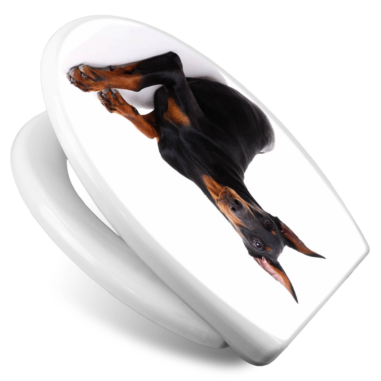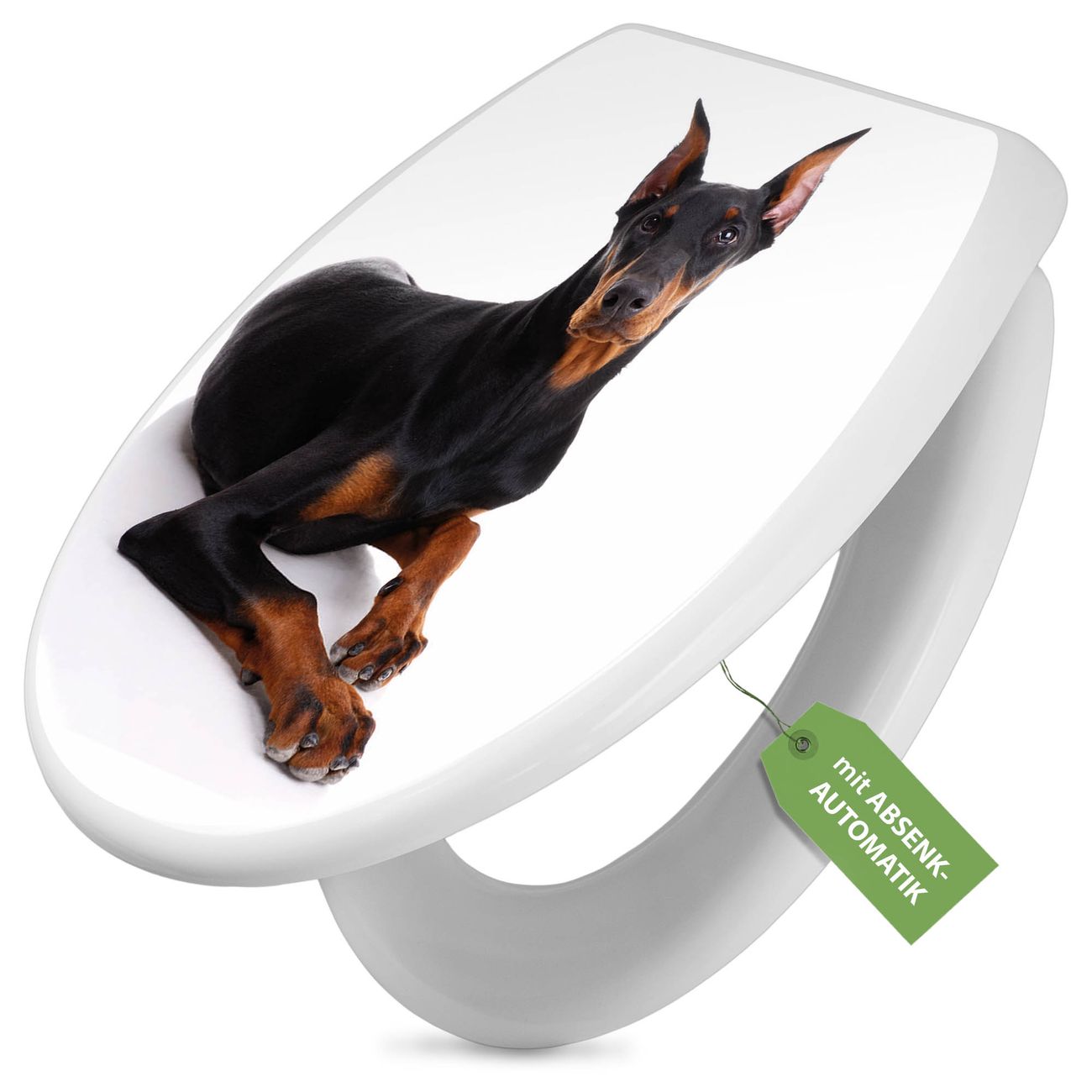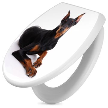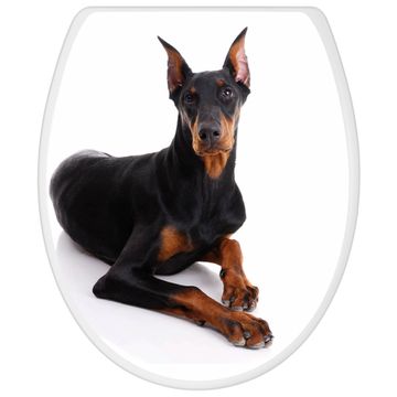 Toilettendeckel weiß mit Absenkautomatik Motiv Dobermann