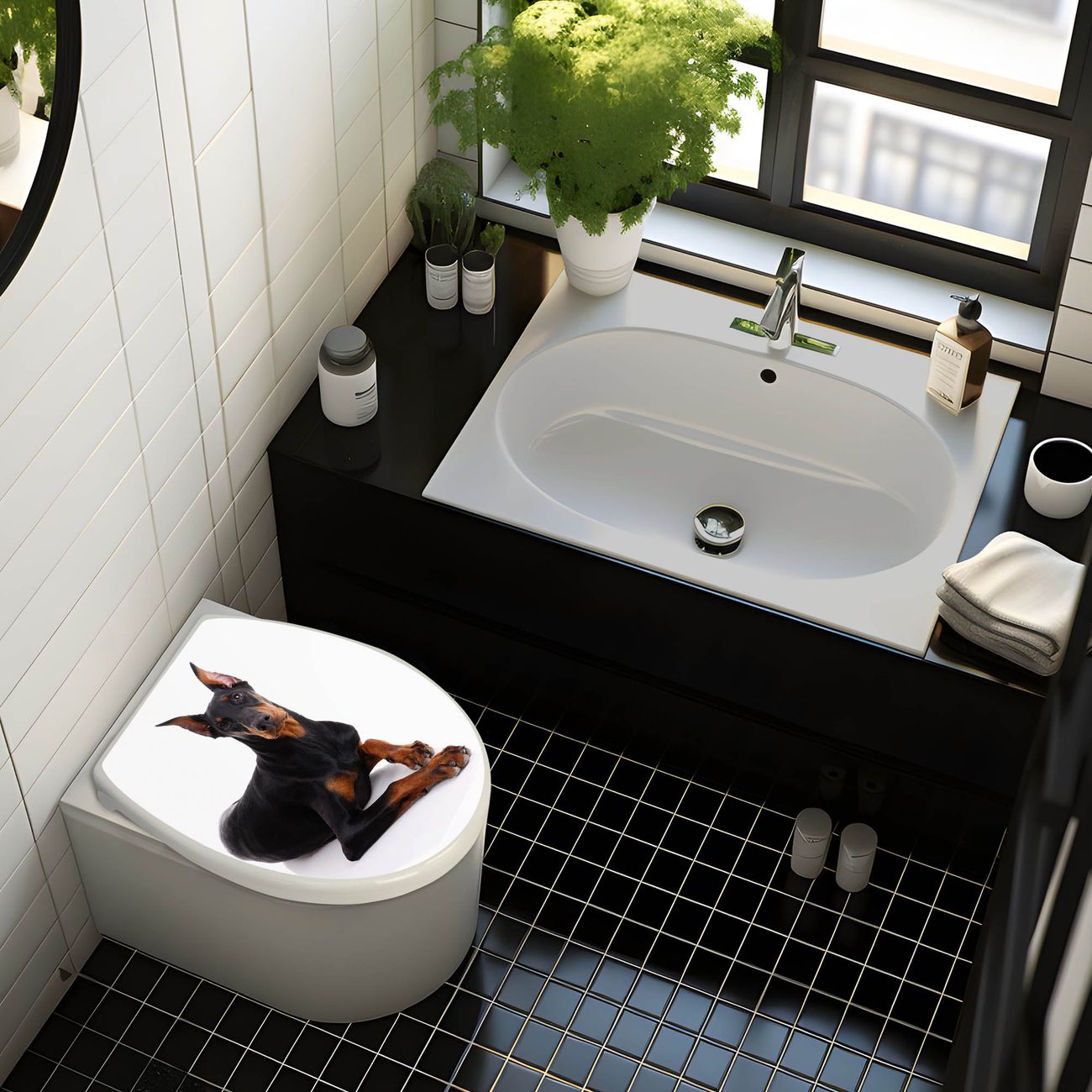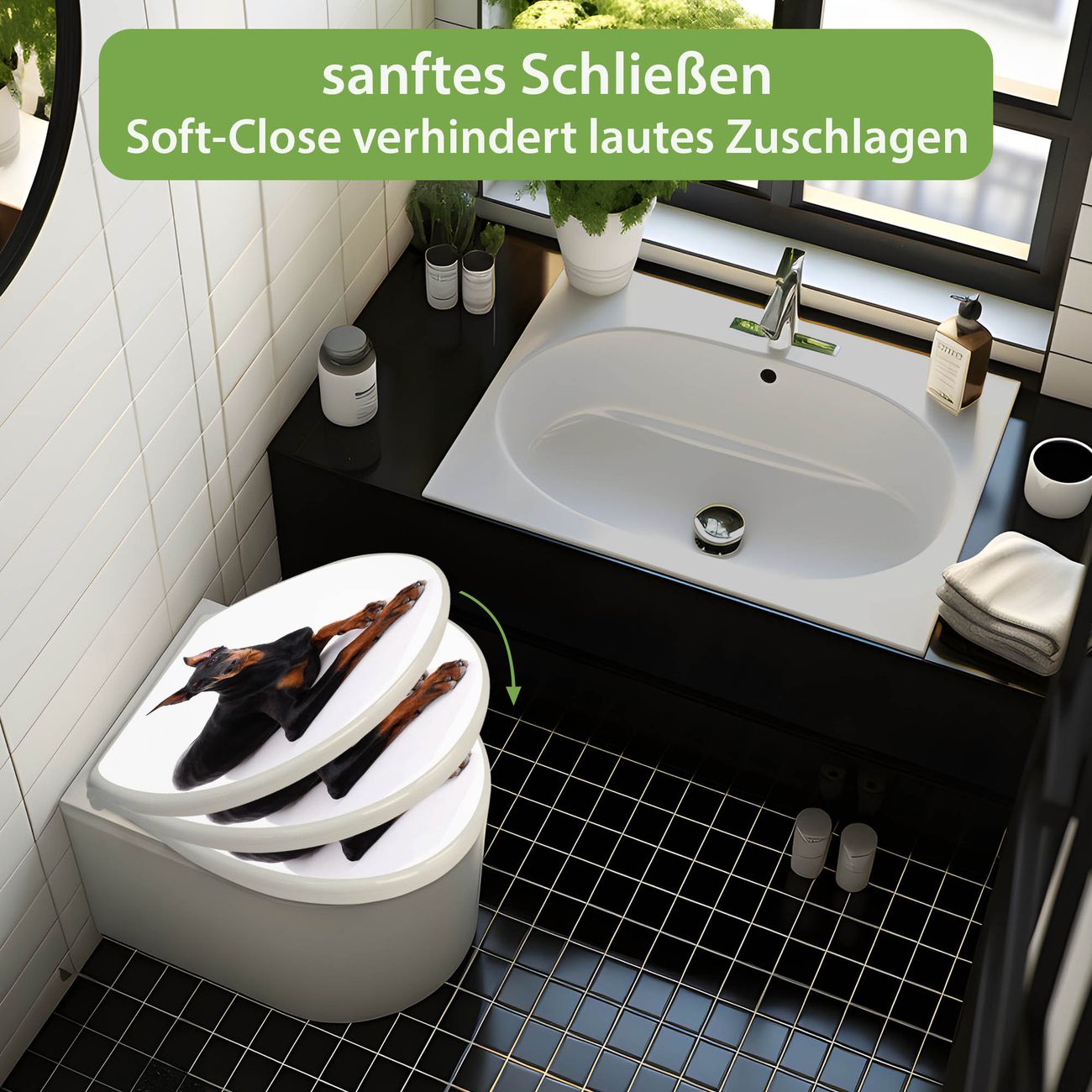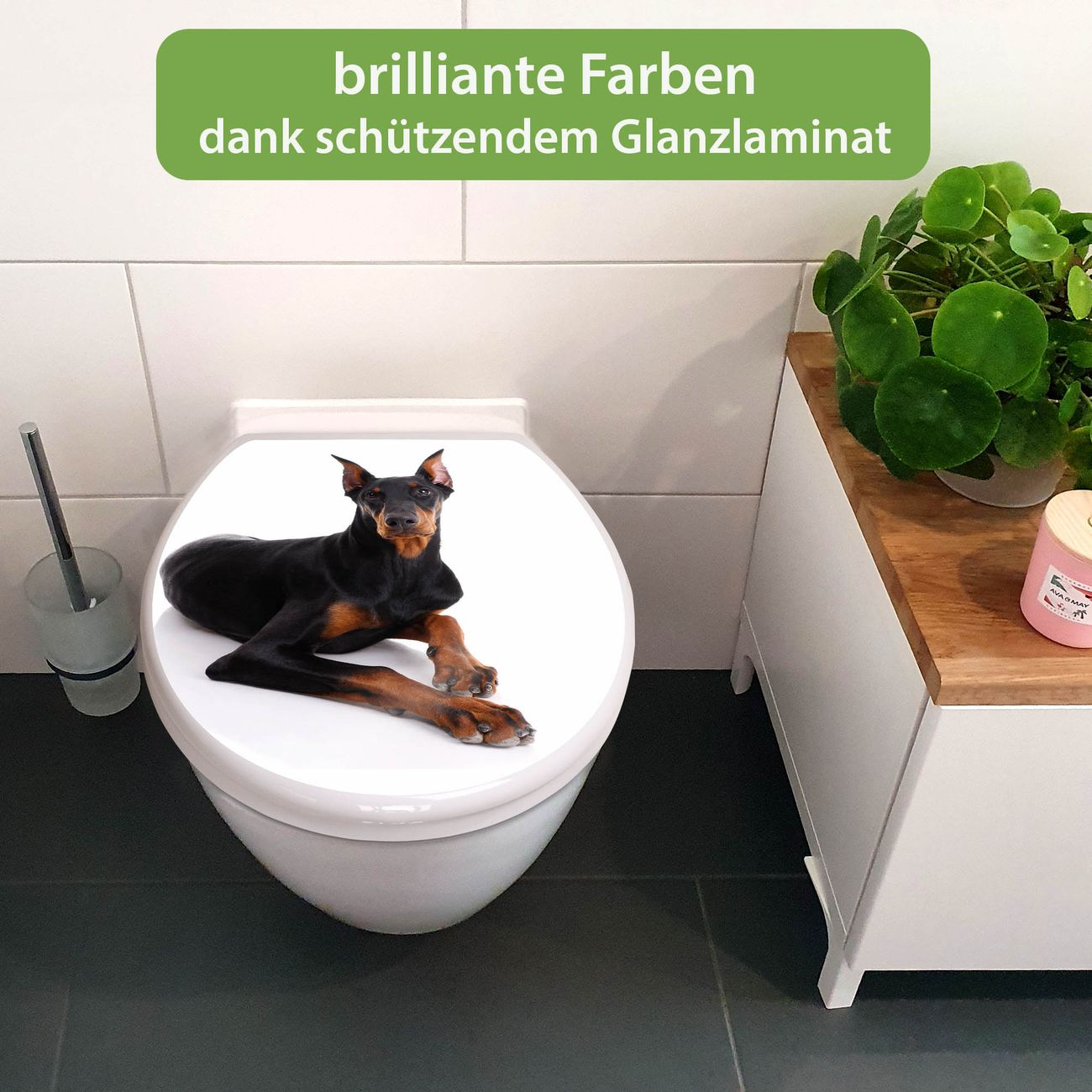 Toilettendeckel weiß mit Absenkautomatik Motiv Dobermann