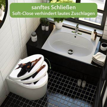 FUNKTION: Mit dem banjado Toilettendeckel mit Absenkautomatik verbinden Sie Design mit Funktionalität. Sie erhalten den WC Sitz in bewährt guter Qualität mit Edelstahl Scharnieren und Montagematerial. DESIGN: Der Klodeckel hat eine ansprechende Optik, eine besondere Form und ist sehr stabil. Das Motiv besteht aus einer farbbrillianten Motivfolie, die durch ein Schutzlaminat zusätzlich vor Kratzern schützt. DETAILS: Der Toilettensitz besteht aus Duroplast, die Scharniere sind aus hochwertigem Edelstahl, Materialien die Ihnen eine leichte und hygienische Reinigung ermöglichen. Die Gesamtgröße beträgt 37,3cm x 45cm x 5cm, die Grundfarbe ist weiß. NUTZEN: Mit Hilfe der detaillierten Aufbauanleitung ermöglichen wir eine schnelle und unkomplizierte Montage. Die banjado Klobrille ist universell geeignet für alle gängigen WC Schüsseln. Der Lochabstand zur Befestigung kann variable eingestellt werden. BANJADO: Ihr WC-Deckel wird in Sachsen in einer kleinen Manufaktur von Hand veredelt. Die Motivfolie ist lösungsmittelfrei und schutzlaminiert, für einen langen Halt. Wir wünschen viel Freude bei der Auswahl eines schönen Motivs.