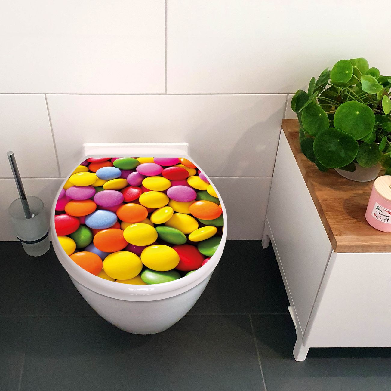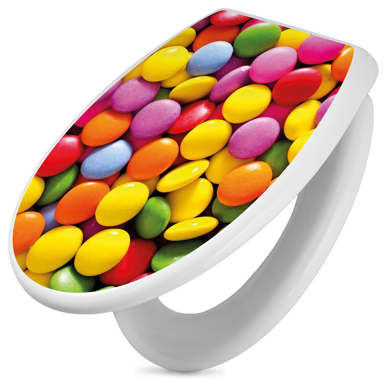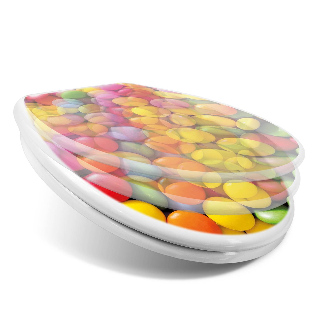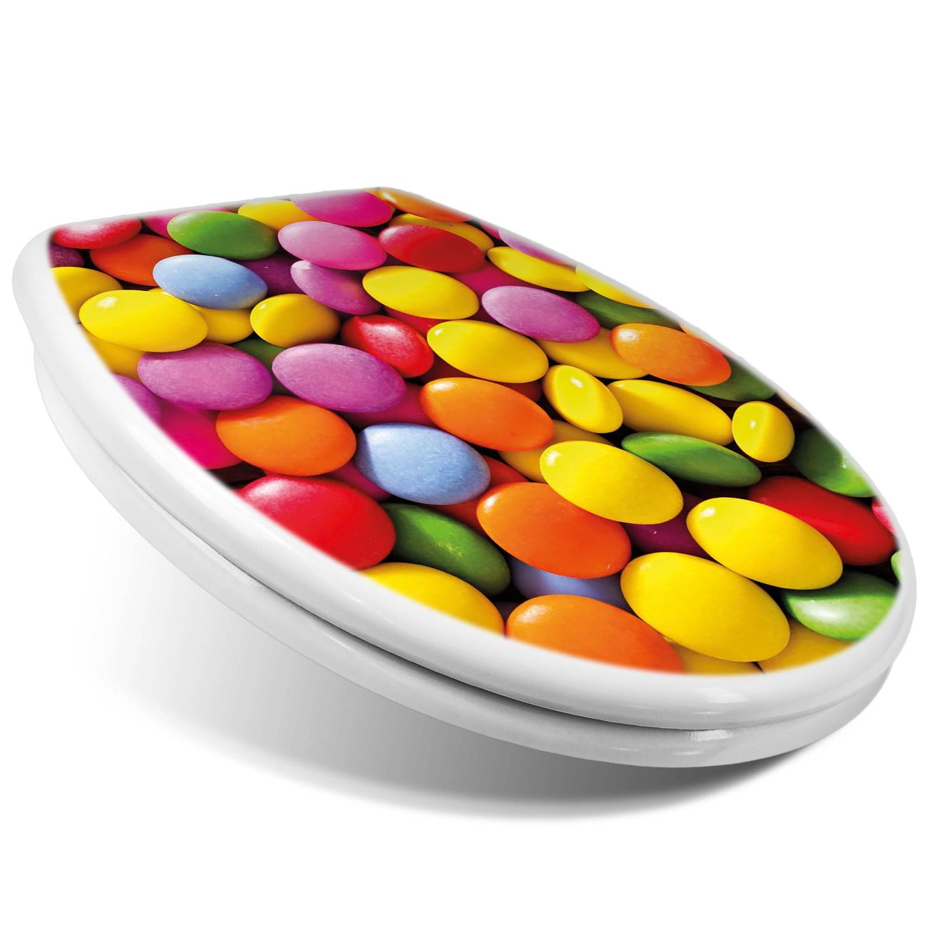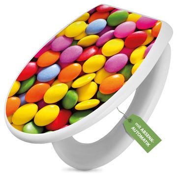 Toilettendeckel weiß mit Absenkautomatik Motiv Dragees