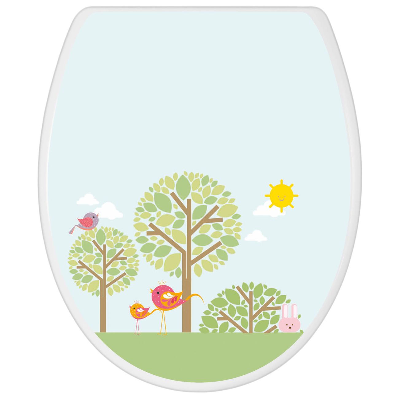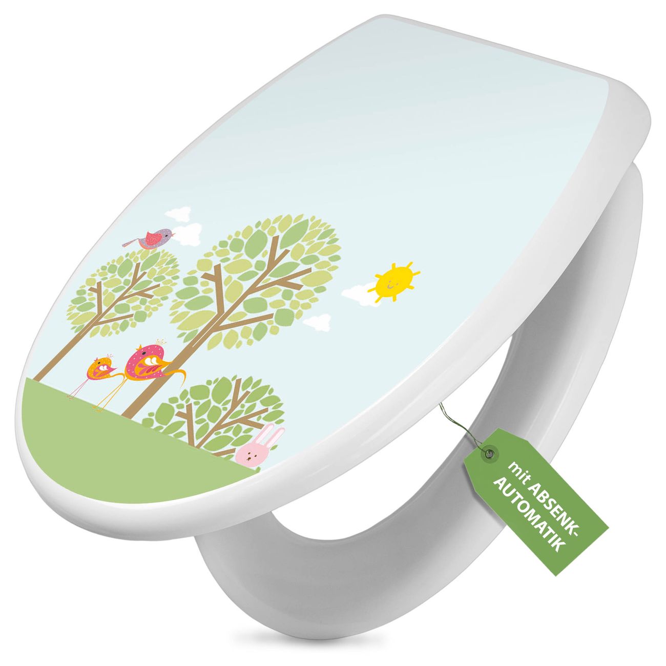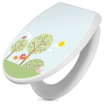 Toilettendeckel weiß mit Absenkautomatik Motiv Drei Bäume