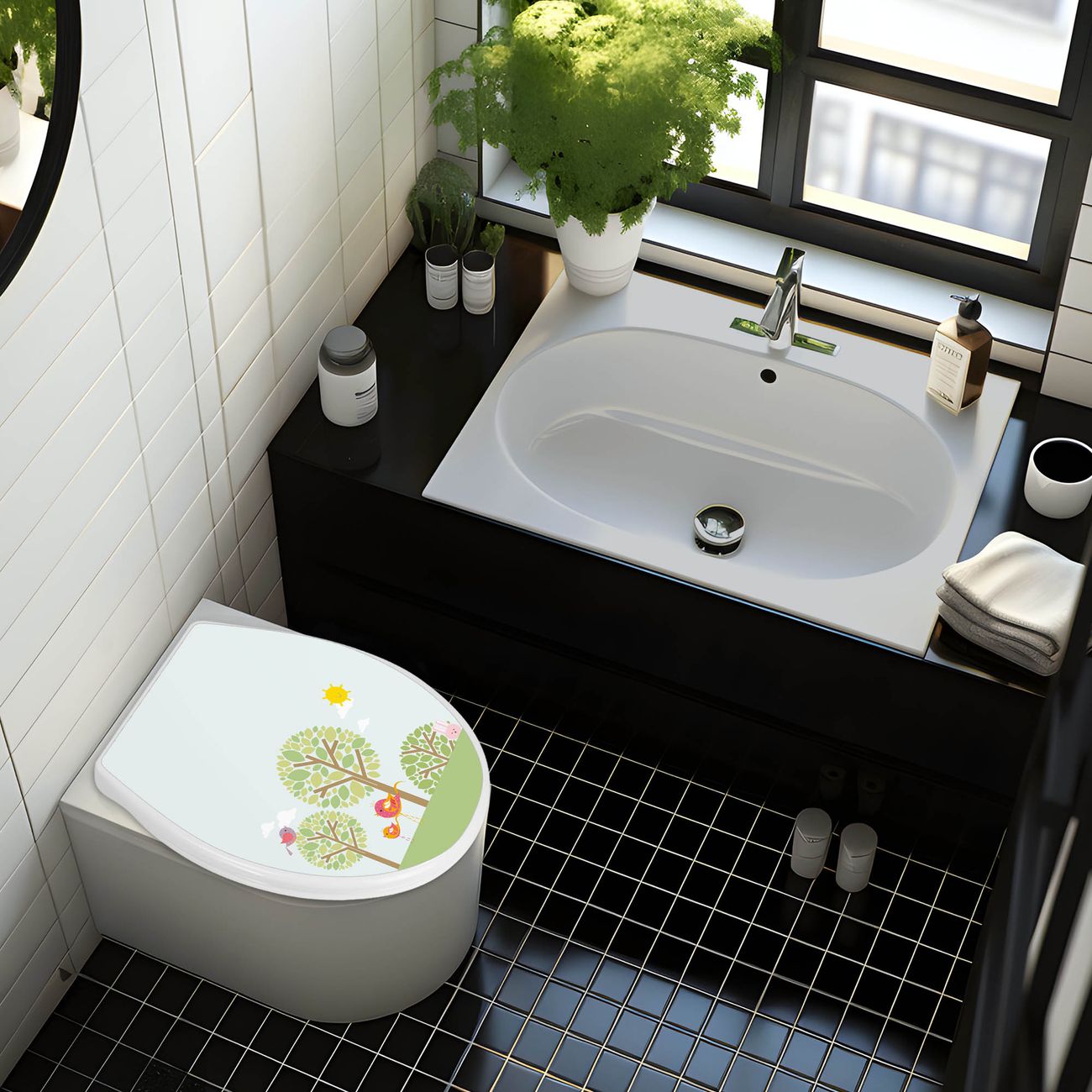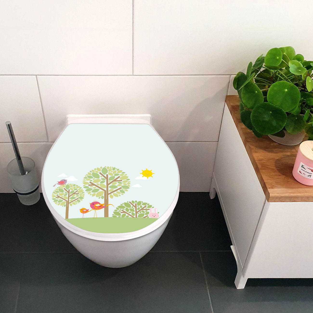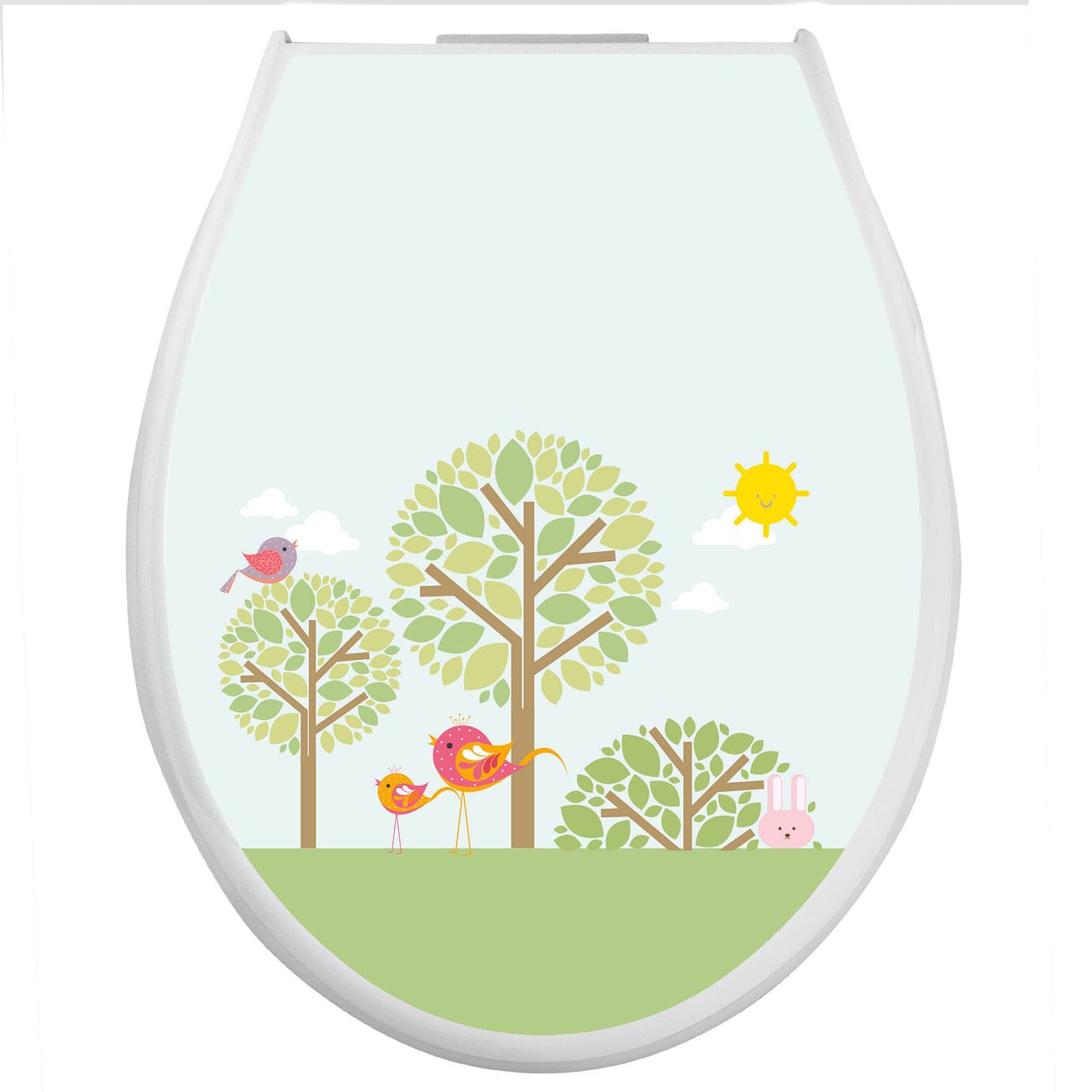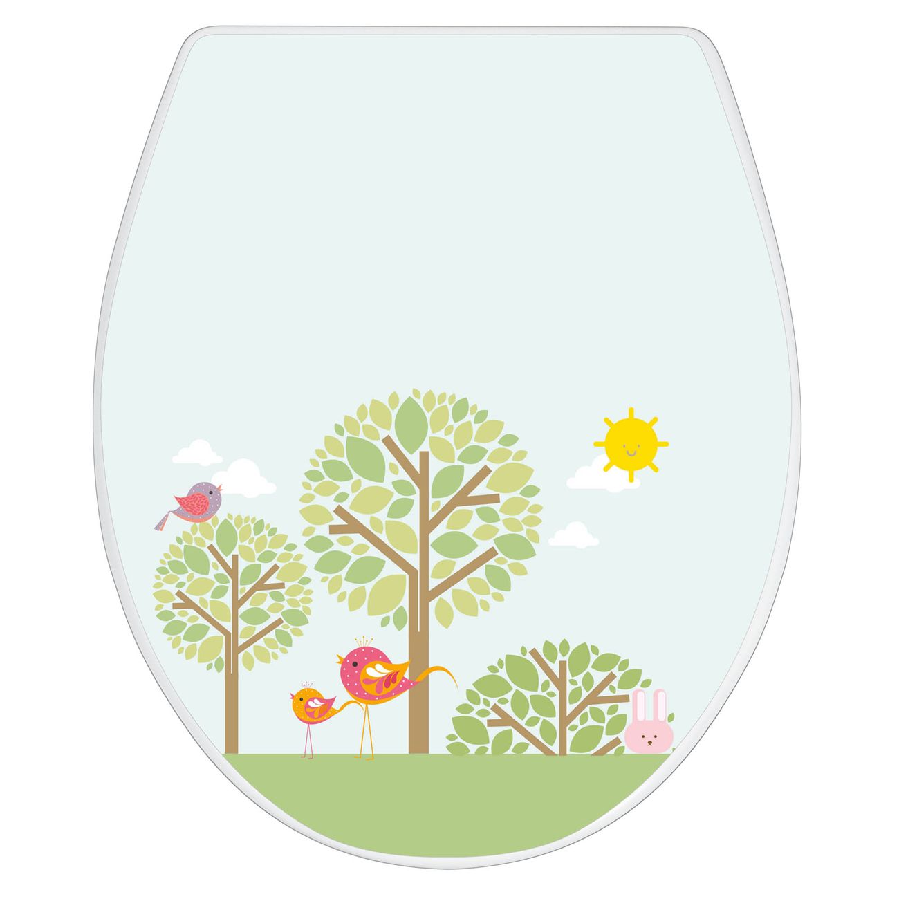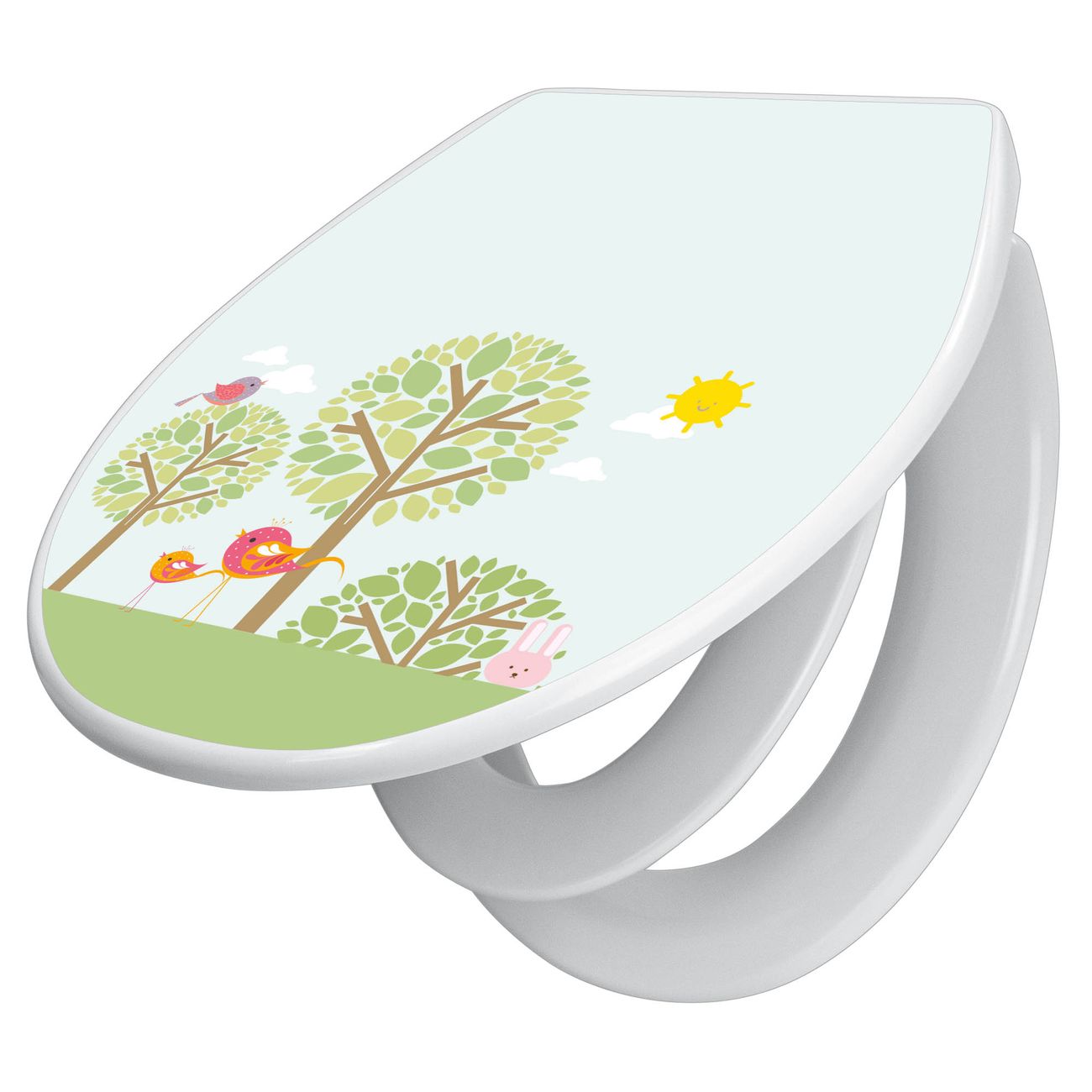 Toilettendeckel weiß mit Absenkautomatik Motiv Drei Bäume