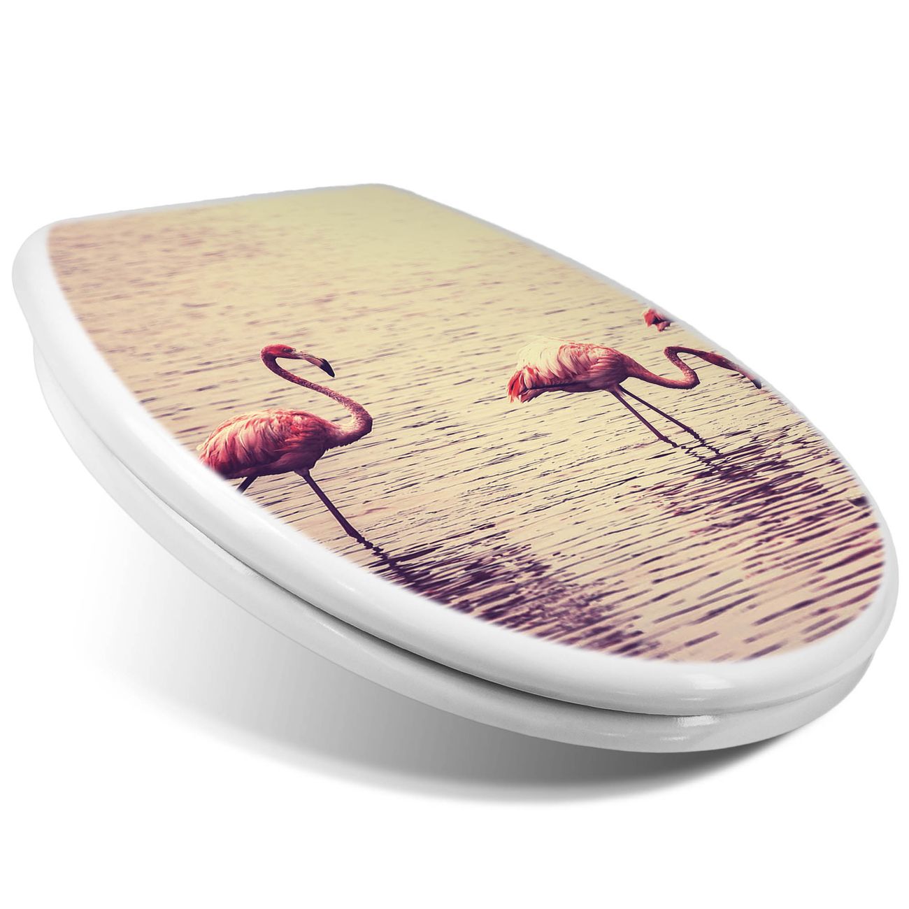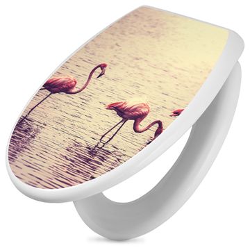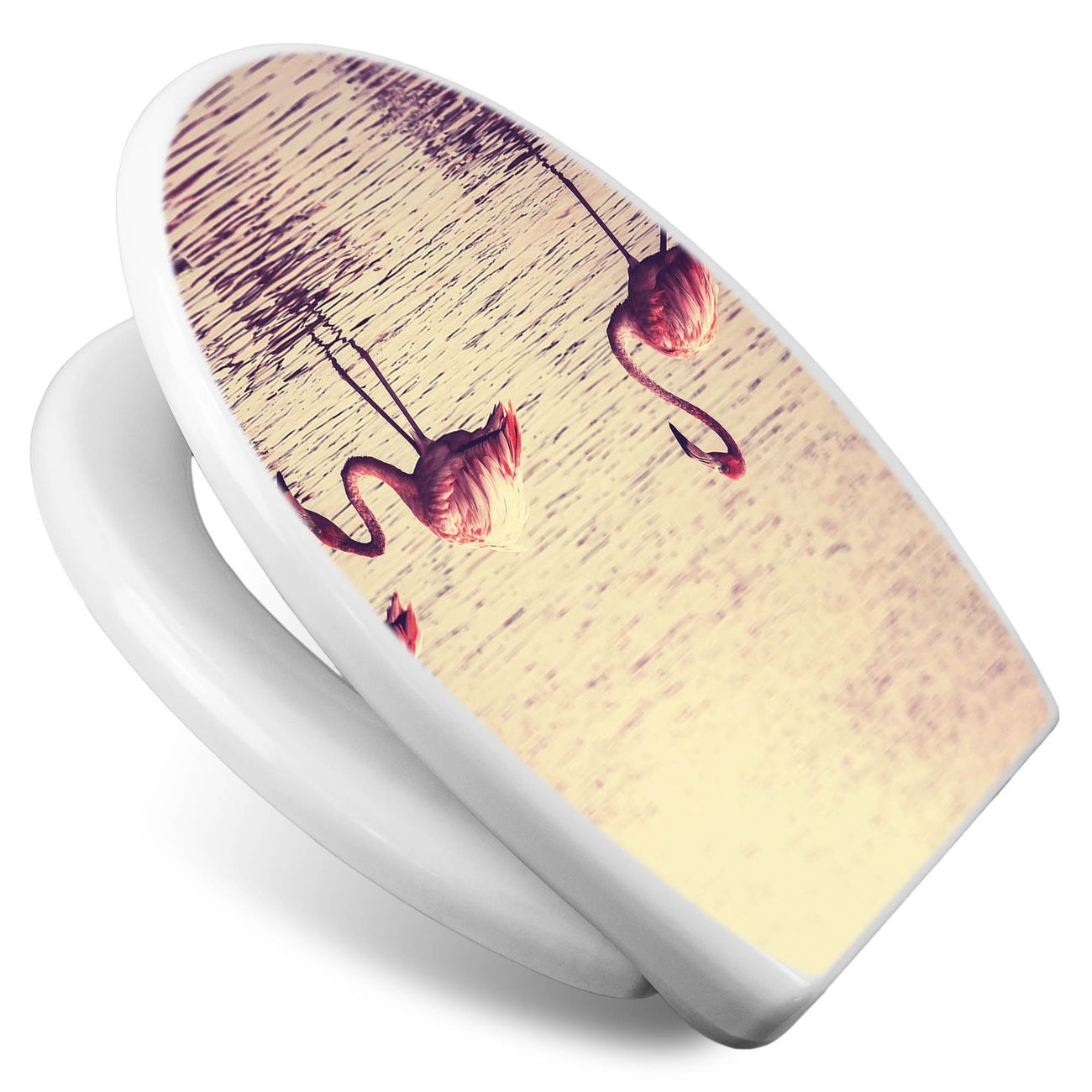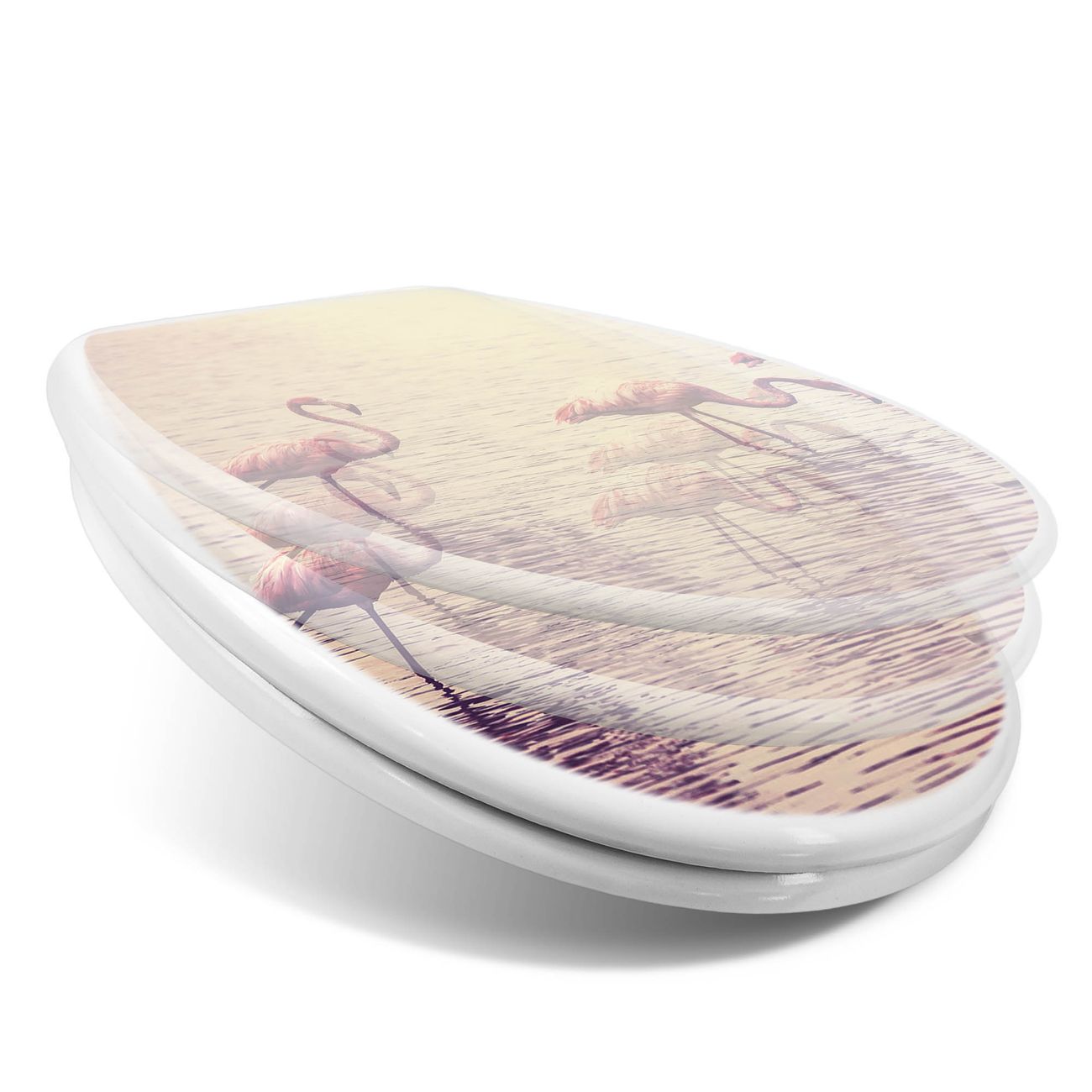 Toilettendeckel weiß mit Absenkautomatik Motiv Drei Flamnigos
