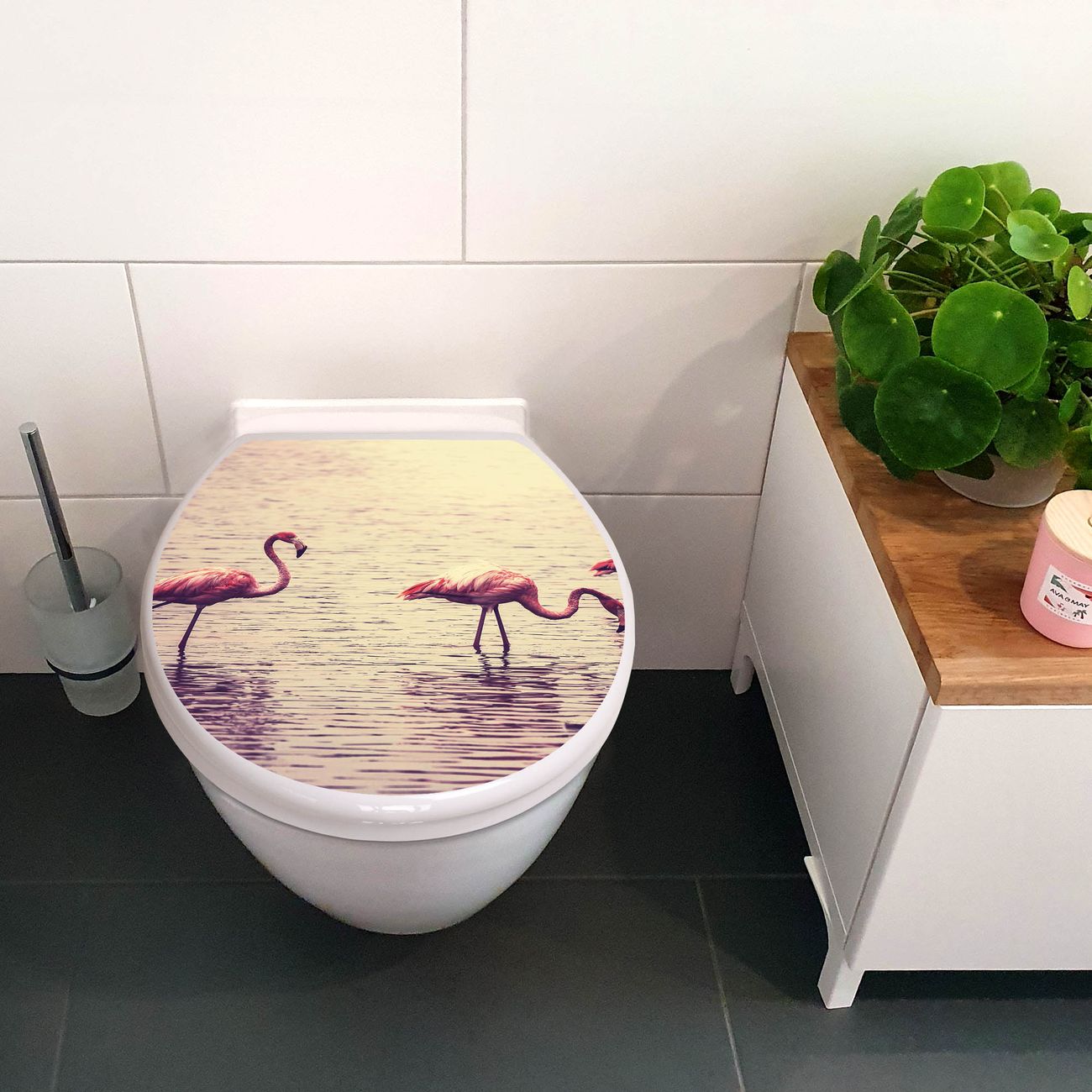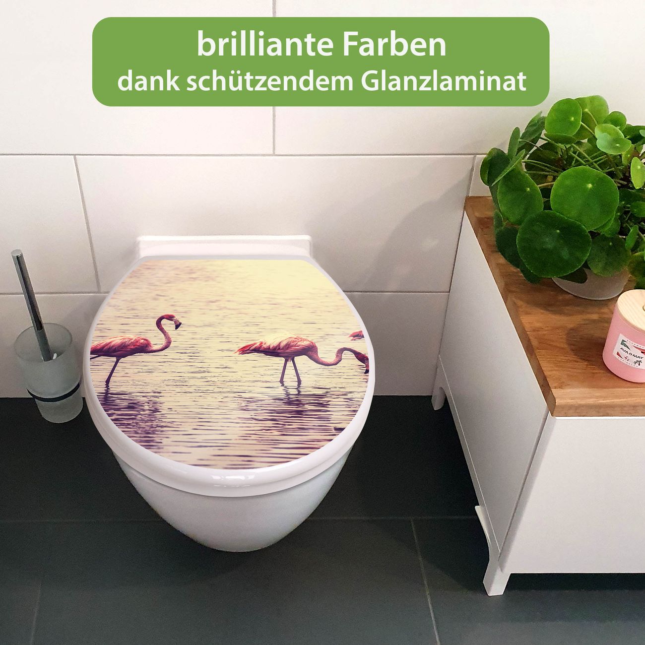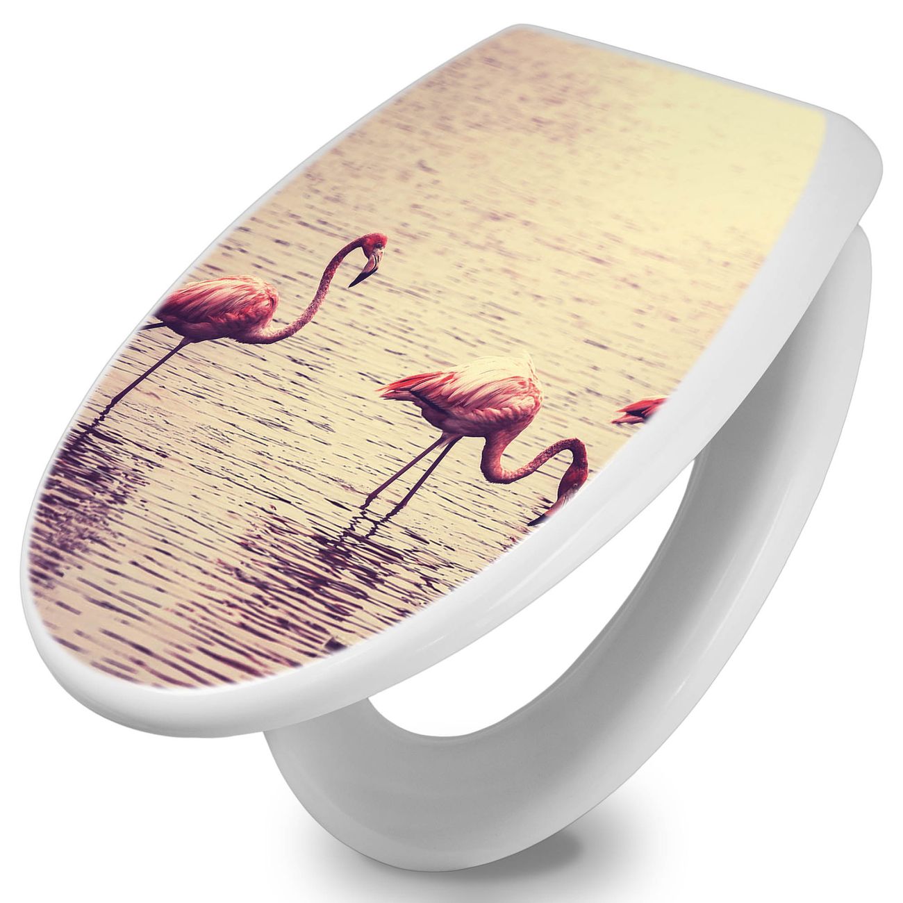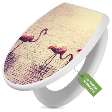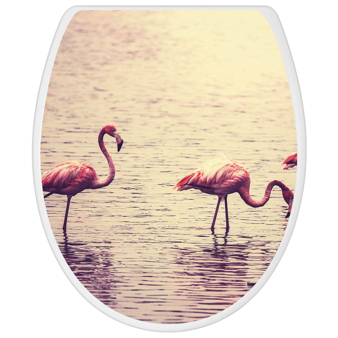Toilettendeckel weiß mit Absenkautomatik Motiv Drei Flamnigos