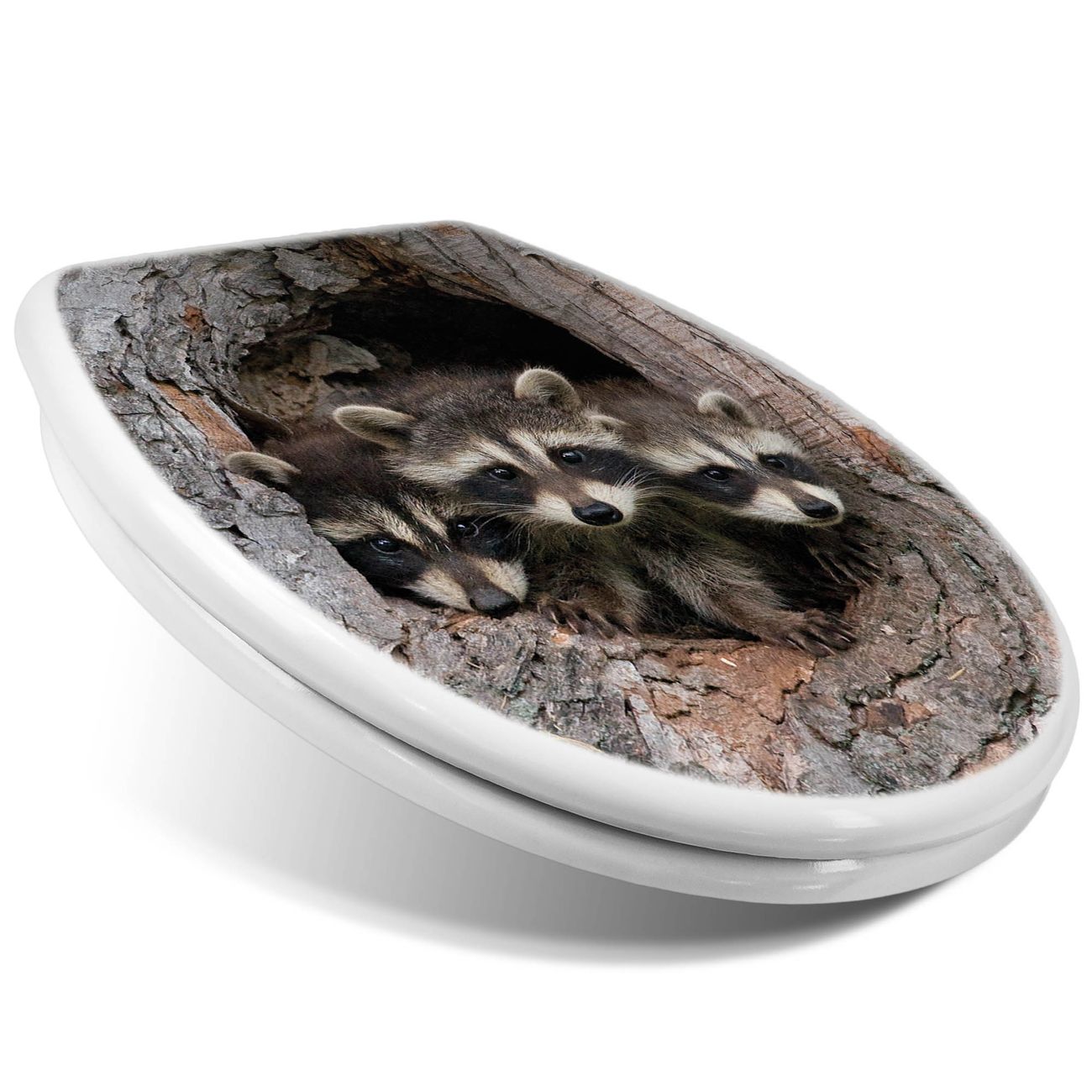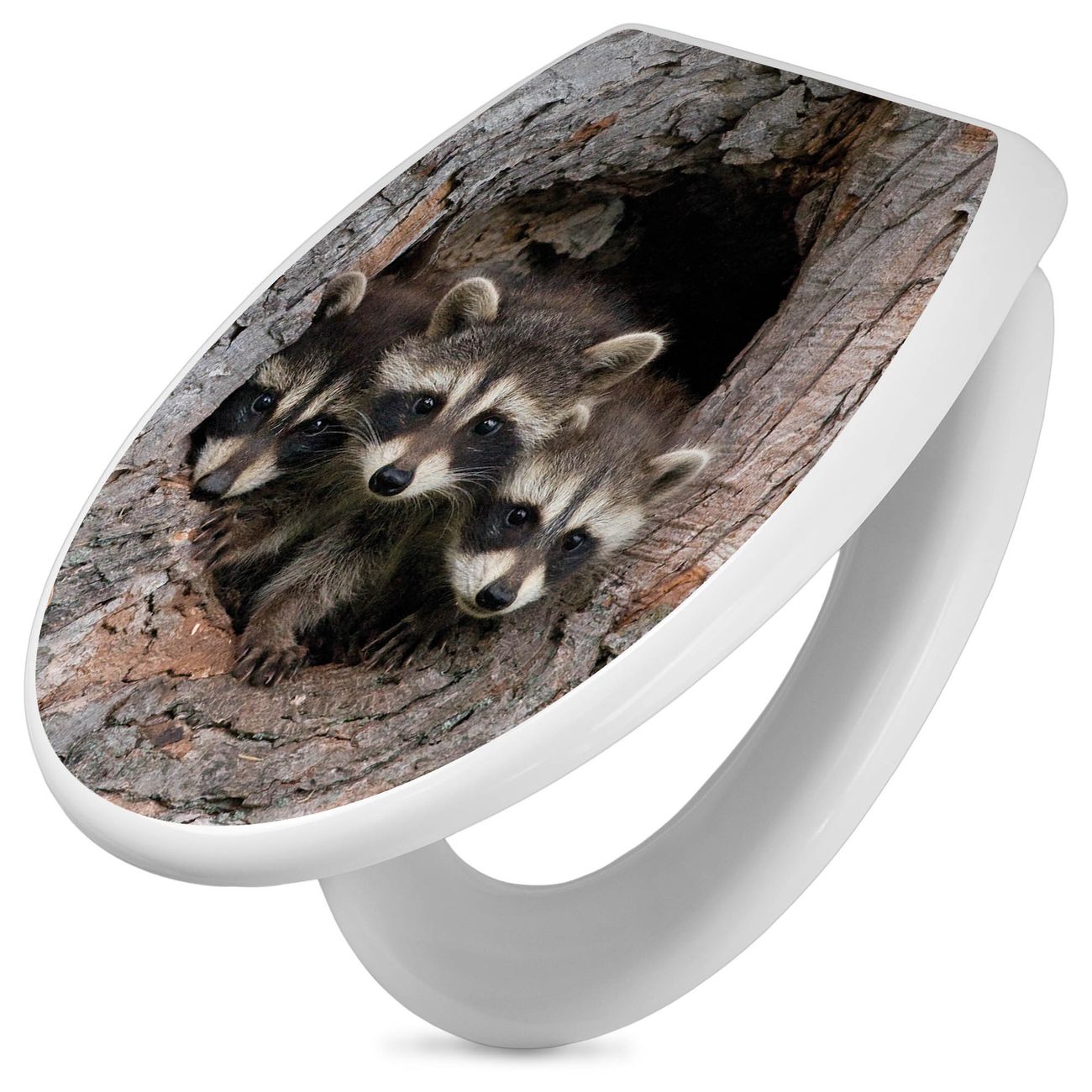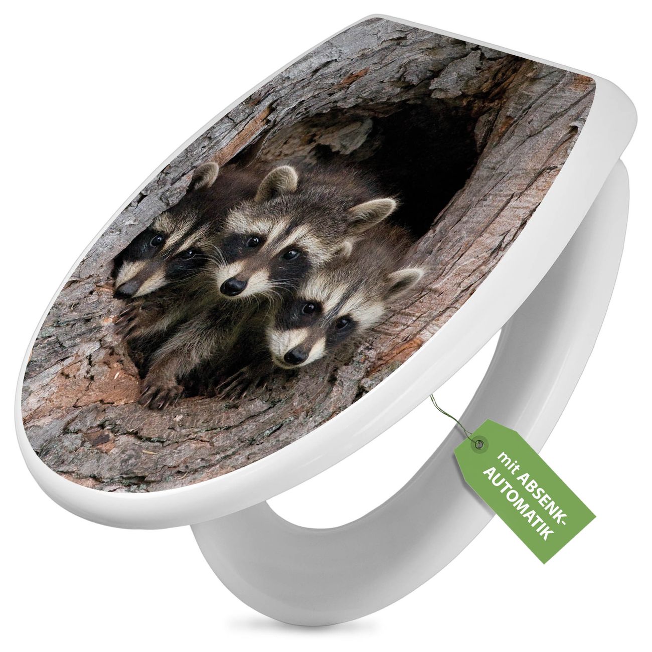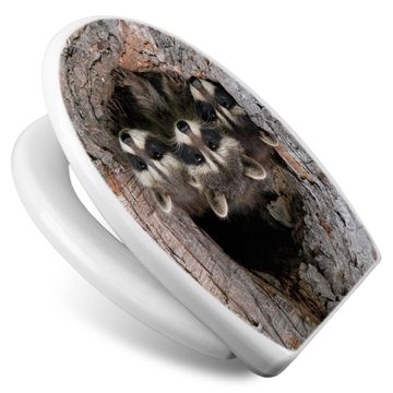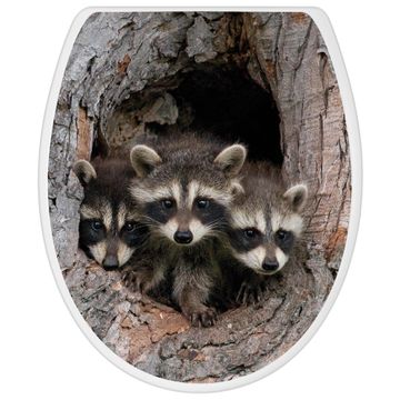Toilettendeckel weiß mit Absenkautomatik Motiv Drei Waschbären