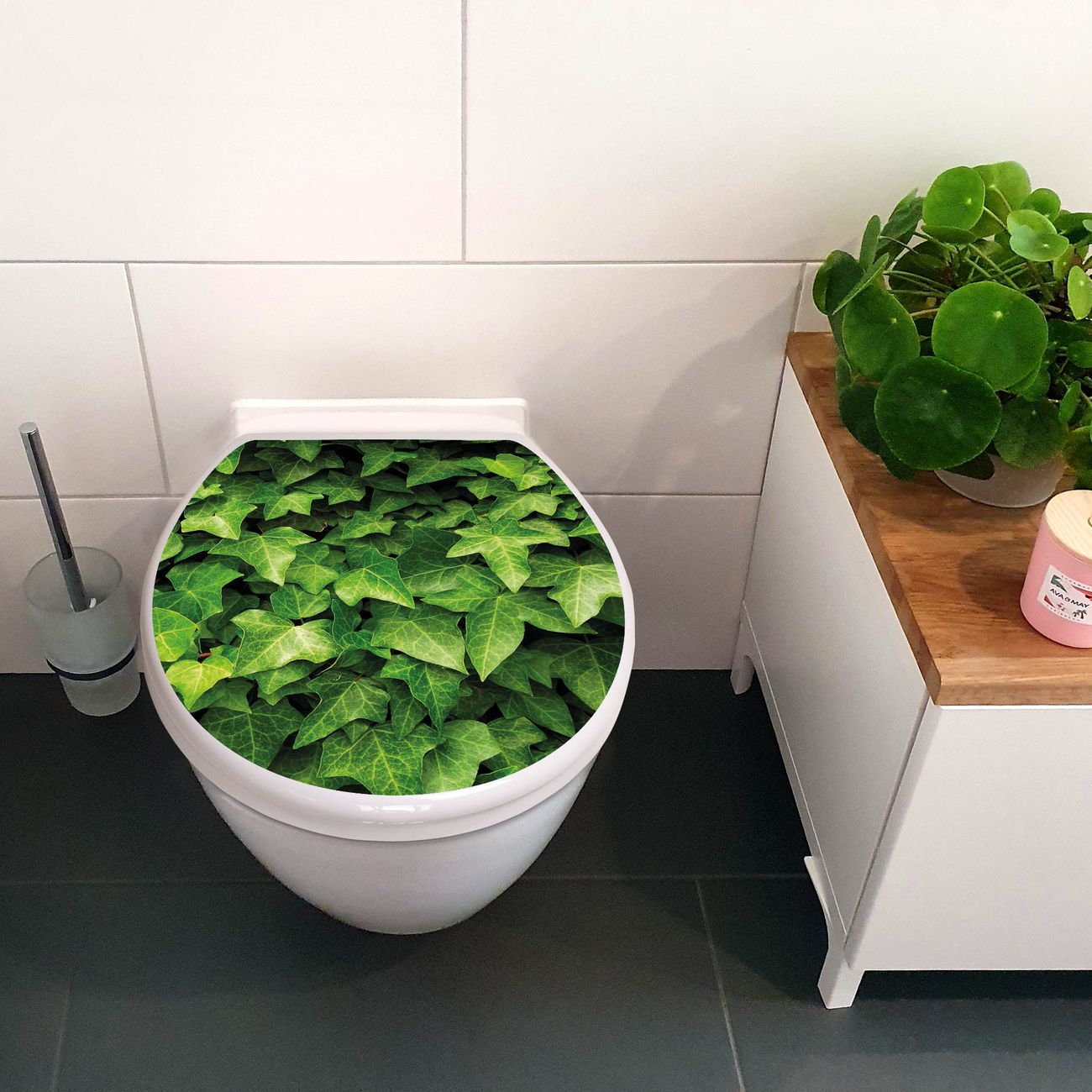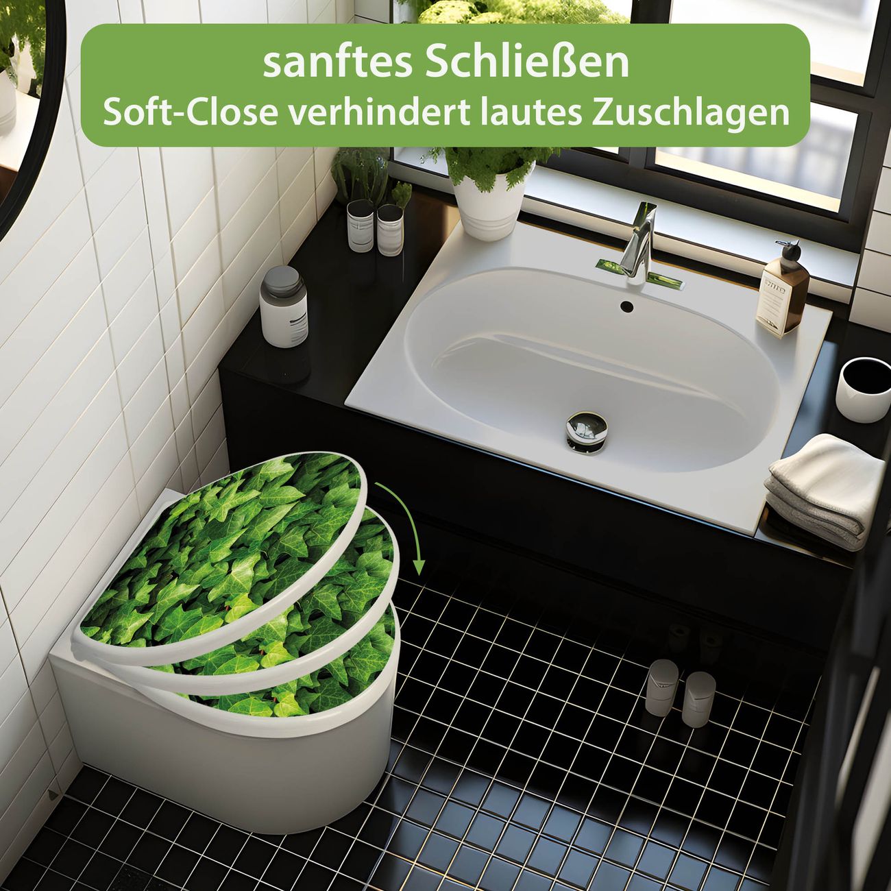 Toilettendeckel weiß mit Absenkautomatik Motiv Efeu