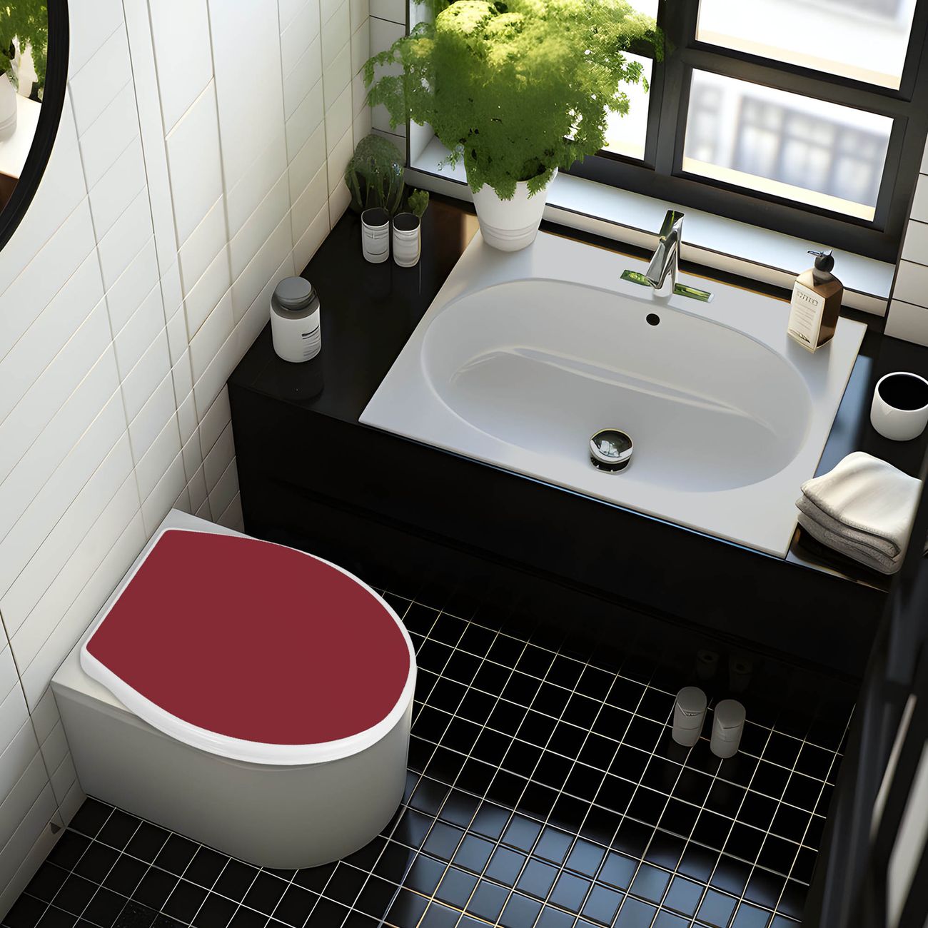 FUNKTION:Mit dem banjado Familien WC Sitz mit Absenkautomatik und dem Farbe Burgund verbinden Sie Design mit Funktionalität. Sie erhalten den Toilettendeckel in bewährt guter Qualität mit Montagematerial passend auf alle Euro-WC-Becken. Die Gesamtgröße beträgt 37cm x 44,5cm x 5cm, die Grundfarbe ist weiß.</p> DESIGN:Der Klodeckel in weiß mit Farbe Burgund hat eine ansprechende Optik, eine besondere Form und ist sehr stabil. Das Farbe besteht aus einer farbbrillianten Farbefolie, die durch ein Schutzlaminat zusätzlich vor Kratzern schützt. Der integrierte Kindersitz fügt sich harmonisch ein. DETAILS:Der Toilettensitz mit Soft Close besteht aus hochwertigem Polypropylen, ist geruchlos, ungiftig und kann mit handelsüblicher Seife gereinigt werden. Die Montage kann von von oben oder von unten erfolgen und ist kinderleicht. NUTZEN:Mit Hilfe der detaillierten Aufbauanleitung ermöglichen wir eine schnelle und unkomplizierte Montage. Die banjado Klobrille ist universell geeignet für alle Euro-WC-Schüsseln. Der Kindersitz kann unkompliziert entfernt werden. BANJADO:Ihr WC-Deckel wird in Sachsen in einer kleinen Manufaktur von Hand veredelt. Die Farbefolie ist lösungsmittelfrei und schutzlaminiert für einen langen Halt. Wir wünschen viel Freude bei der Auswahl eines schönen Farbes.