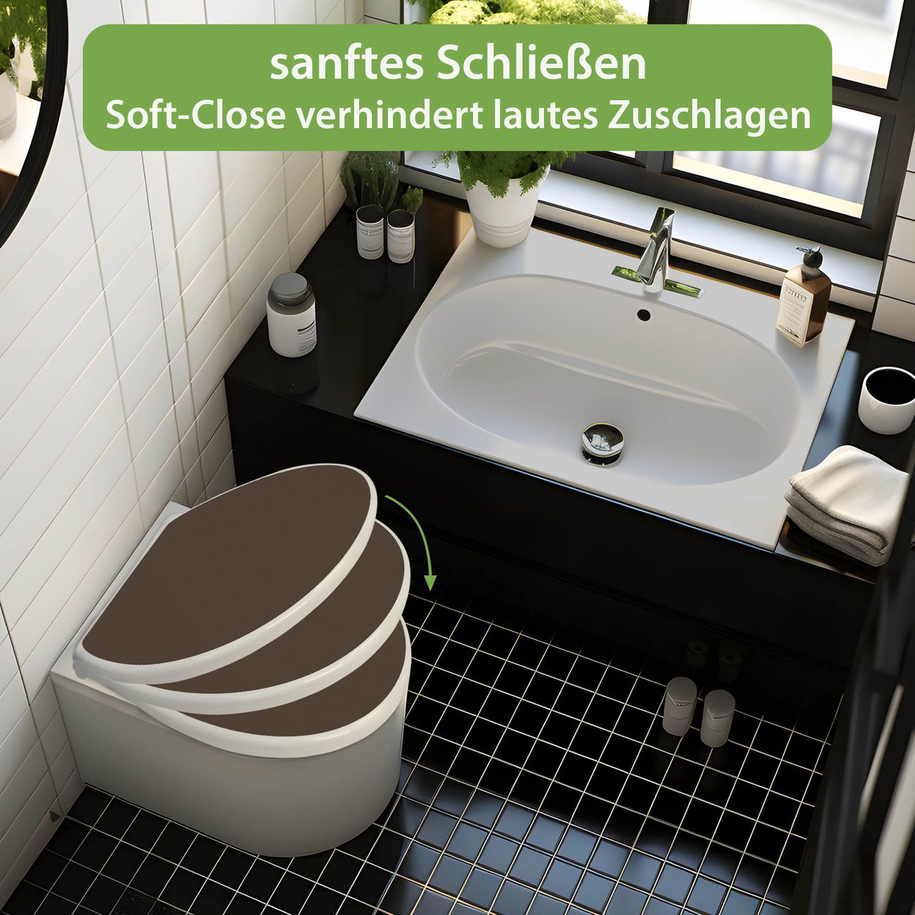 Toilettendeckel weiß mit Absenkautomatik Farbe Schokobraun