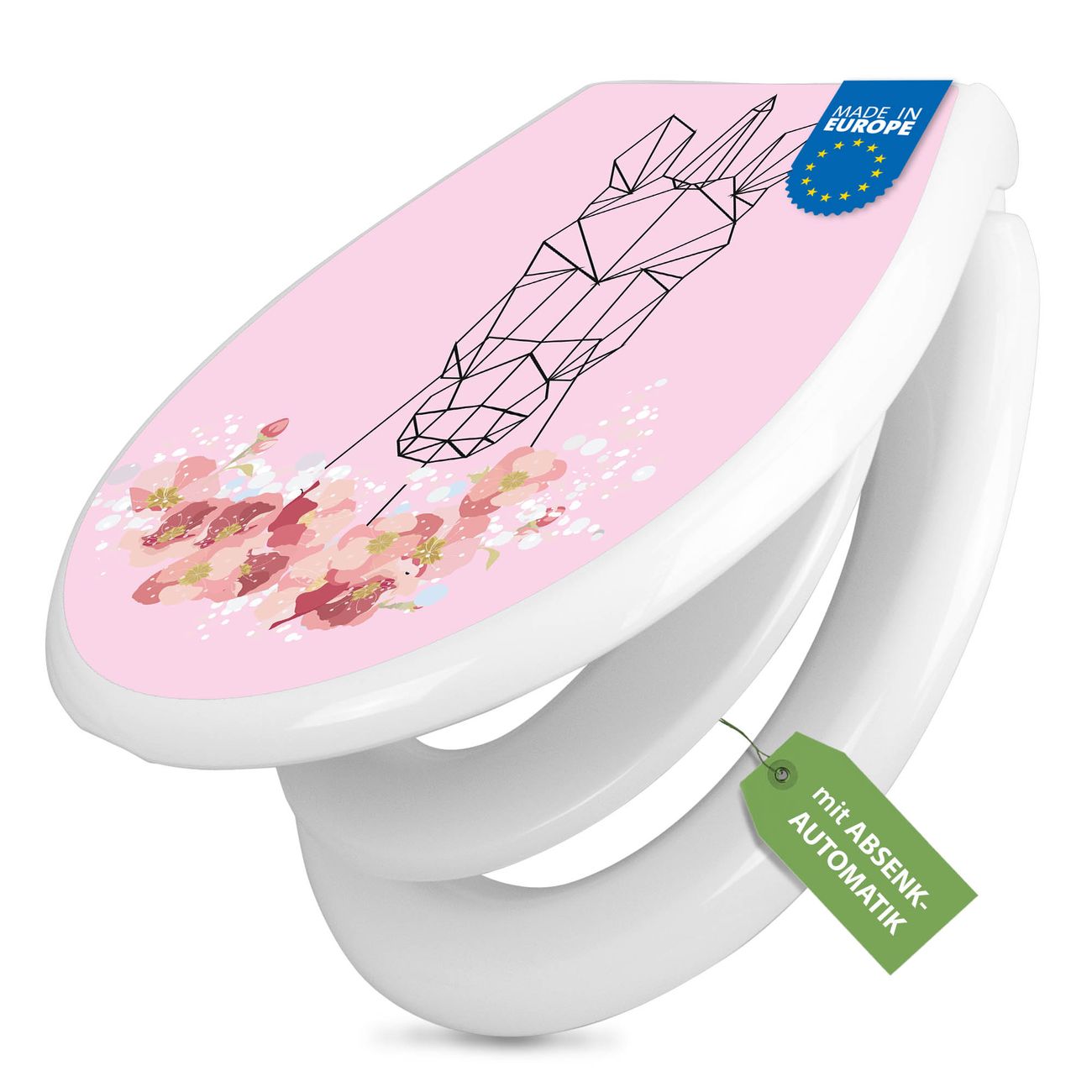 Toilettendeckel weiß mit Absenkautomatik Motiv Einhorn Poygon