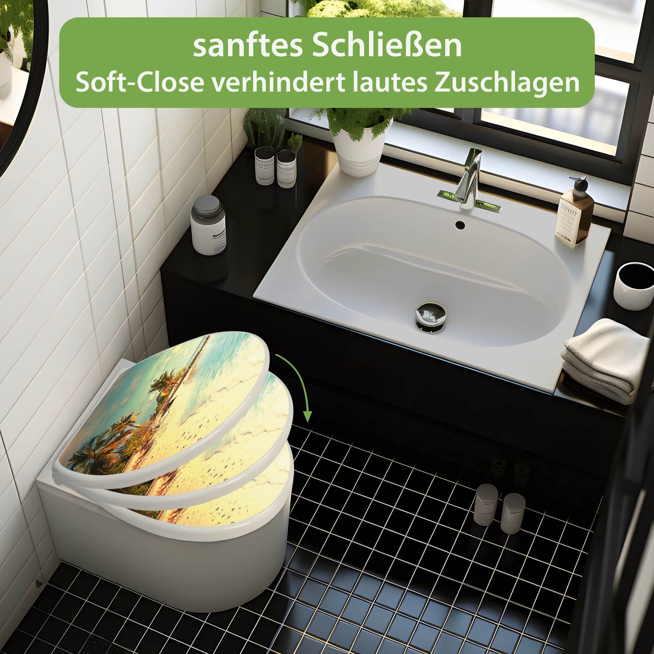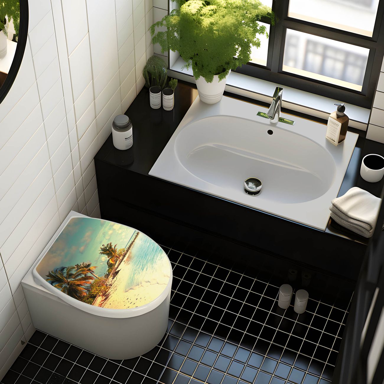 Toilettendeckel weiß mit Absenkautomatik Motiv Einsame Insel