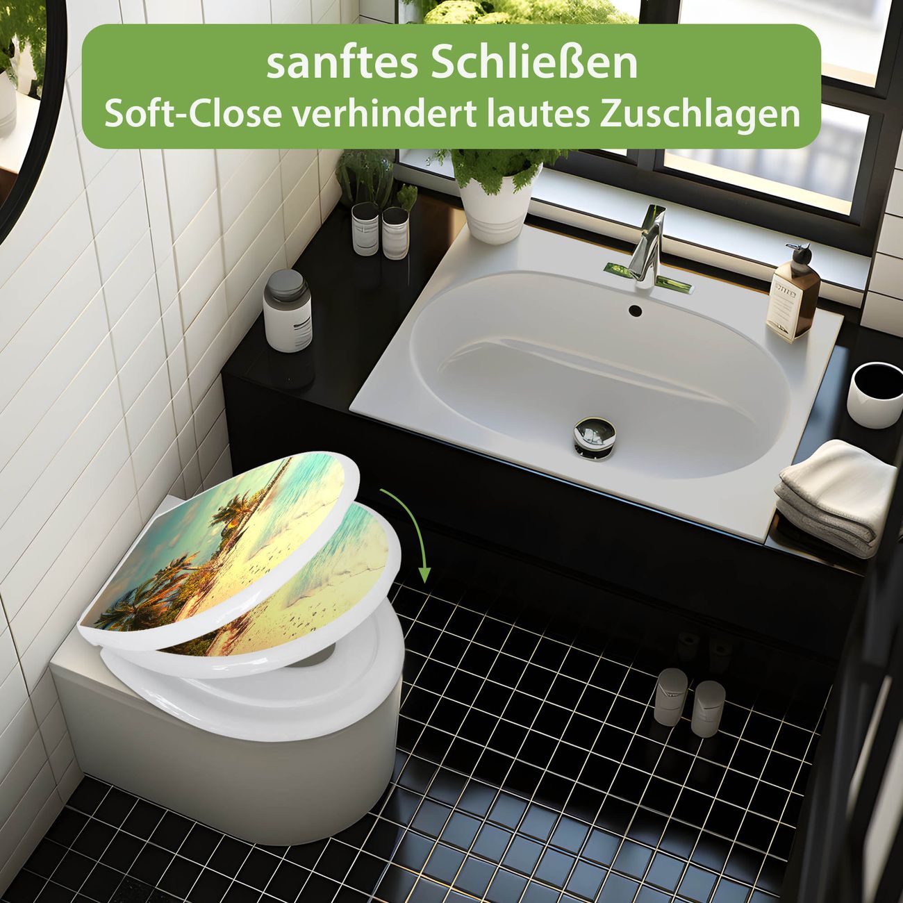 Toilettendeckel weiß mit Absenkautomatik Motiv Einsame Insel