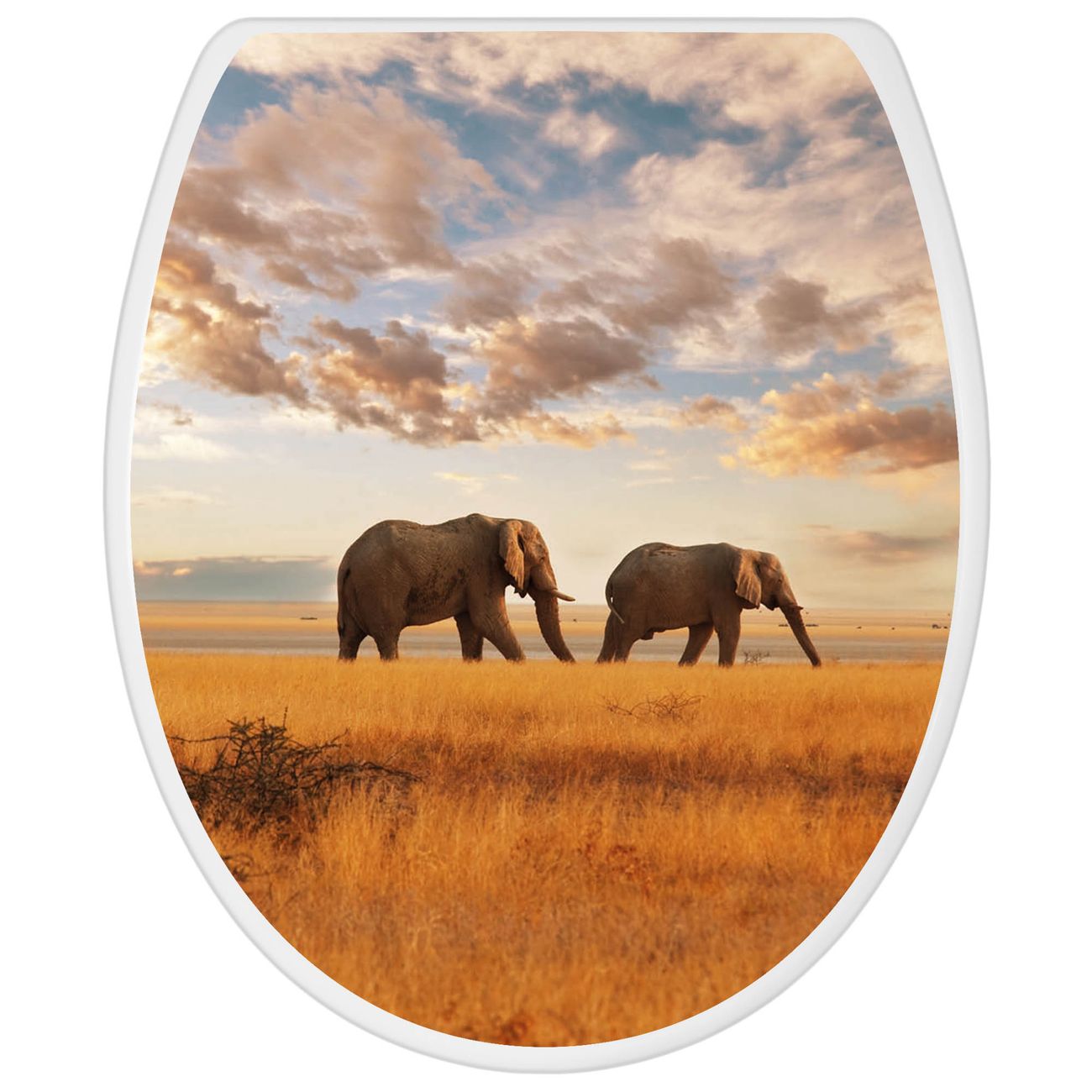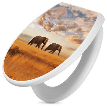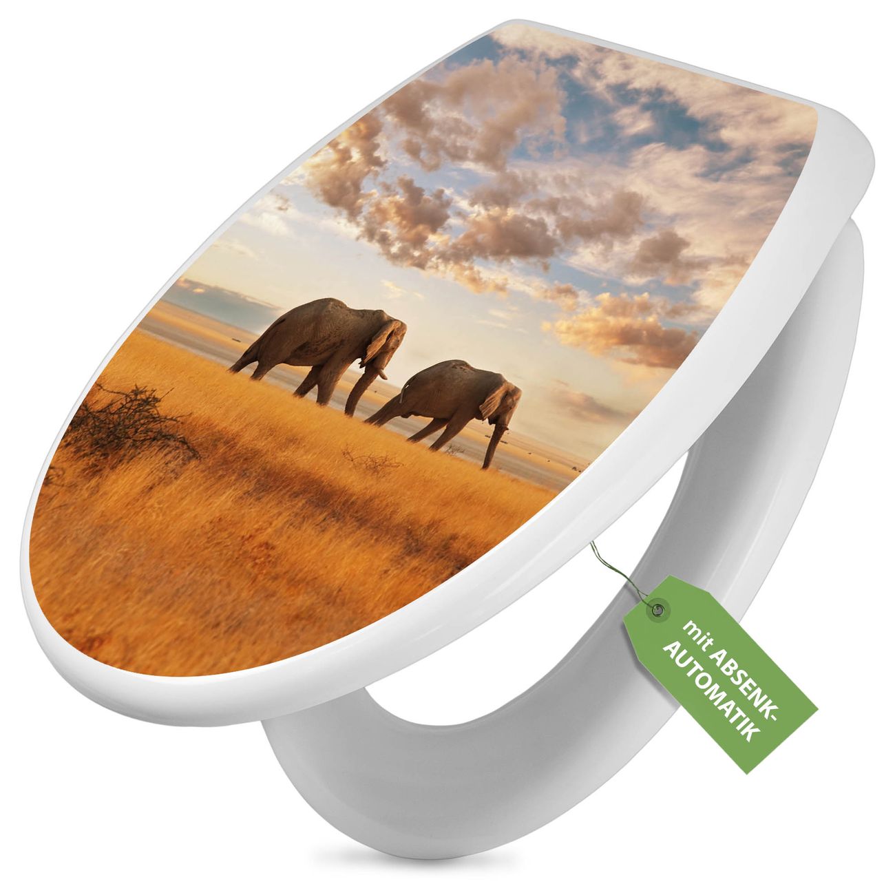 Toilettendeckel weiß mit Absenkautomatik Motiv Elefanten