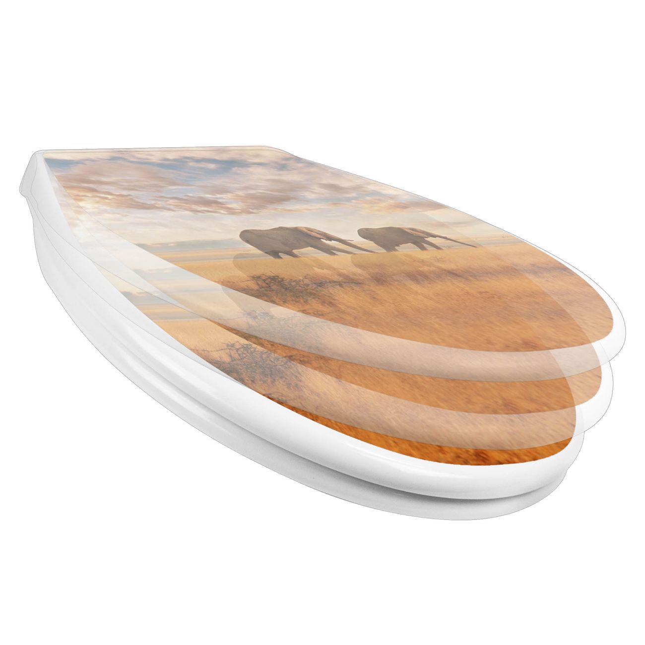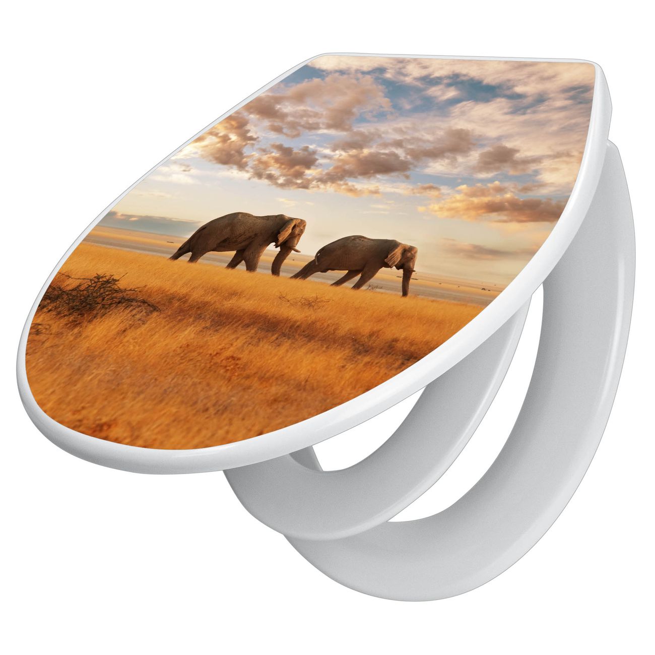 Toilettendeckel weiß mit Absenkautomatik Motiv Elefanten