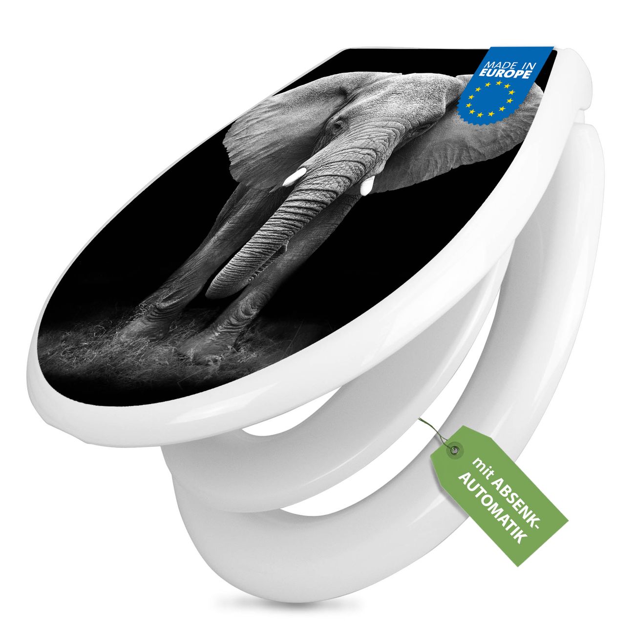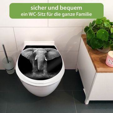 FUNKTION:Mit dem banjado Familien WC Sitz mit Absenkautomatik und dem Motiv Motiv Ella verbinden Sie Design mit Funktionalität. Sie erhalten den Toilettendeckel in bewährt guter Qualität mit Montagematerial passend auf alle Euro-WC-Becken. Die Gesamtgröße beträgt 37,1cm x 44,9cm x 5cm, die Grundfarbe ist weiß.</p> DESIGN:Der Klodeckel in weiß mit Motiv Motiv Ella hat eine ansprechende Optik, eine besondere Form und ist sehr stabil. Das Motiv besteht aus einer farbbrillianten Motivfolie, die durch ein Schutzlaminat zusätzlich vor Kratzern schützt. Der integrierte Kindersitz fügt sich harmonisch ein. DETAILS:Der Toilettensitz mit Soft Close besteht aus hochwertigem Polypropylen, ist geruchlos, ungiftig und kann mit handelsüblicher Seife gereinigt werden. Die Montage kann von von oben oder von unten erfolgen und ist kinderleicht. NUTZEN:Mit Hilfe der detaillierten Aufbauanleitung ermöglichen wir eine schnelle und unkomplizierte Montage. Die banjado Klobrille ist universell geeignet für alle Euro-WC-Schüsseln. Der Kindersitz kann unkompliziert entfernt werden. BANJADO:Ihr WC-Deckel wird in Sachsen in einer kleinen Manufaktur von Hand veredelt. Die Motivfolie ist lösungsmittelfrei und schutzlaminiert für einen langen Halt. Wir wünschen viel Freude bei der Auswahl eines schönen Motivs.