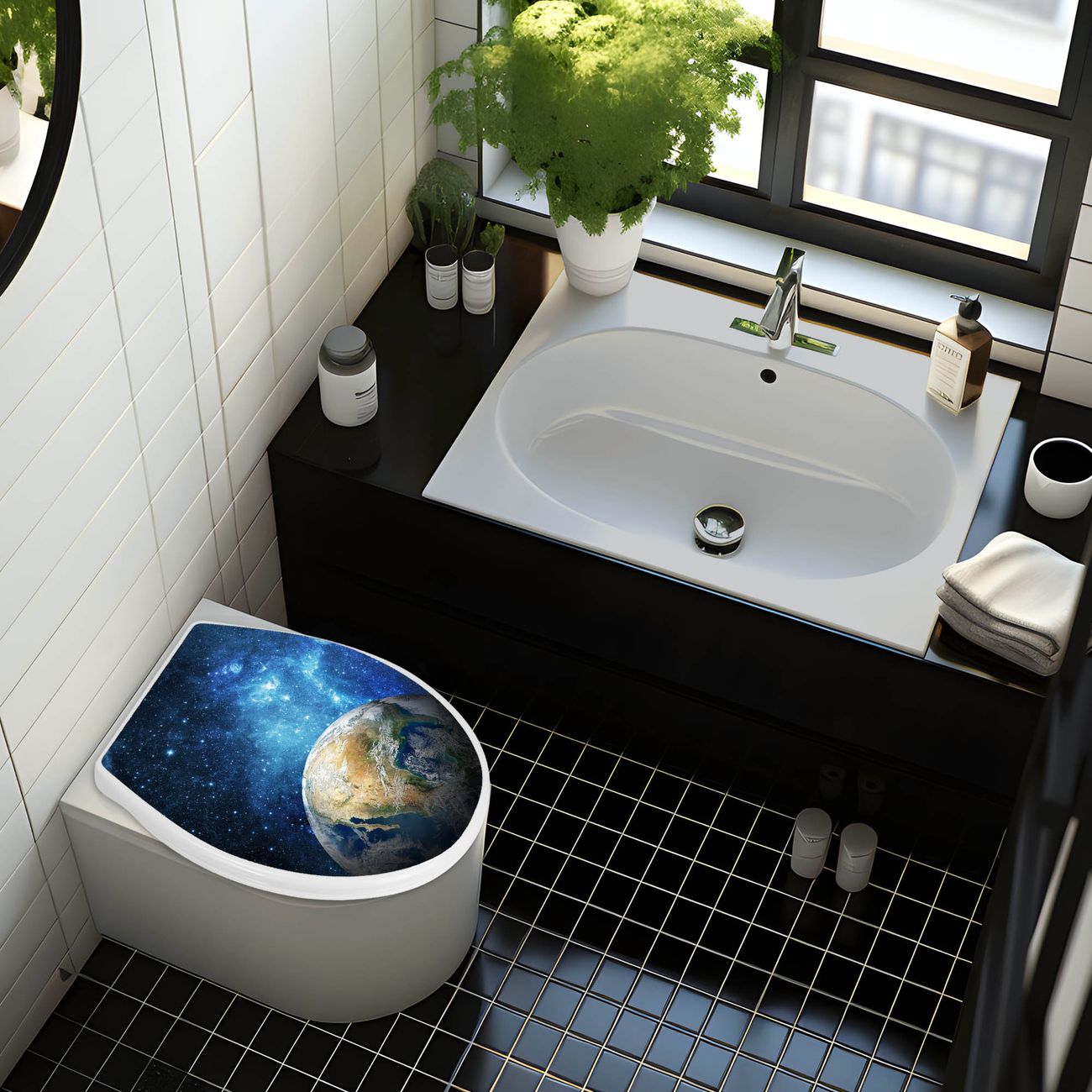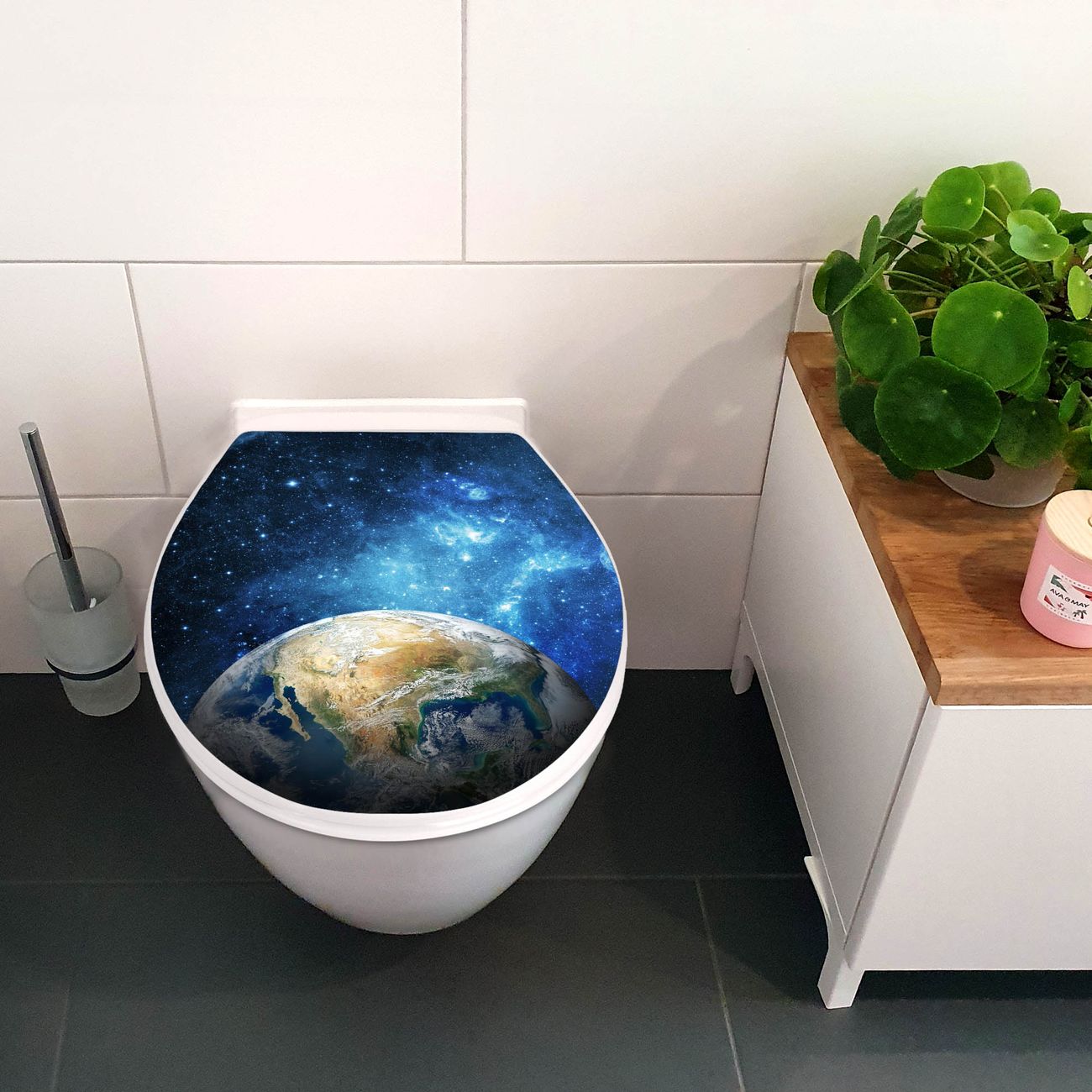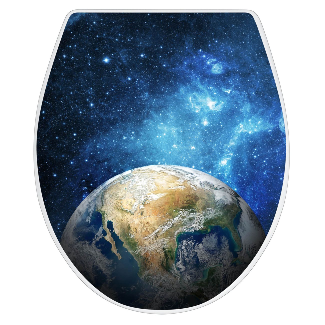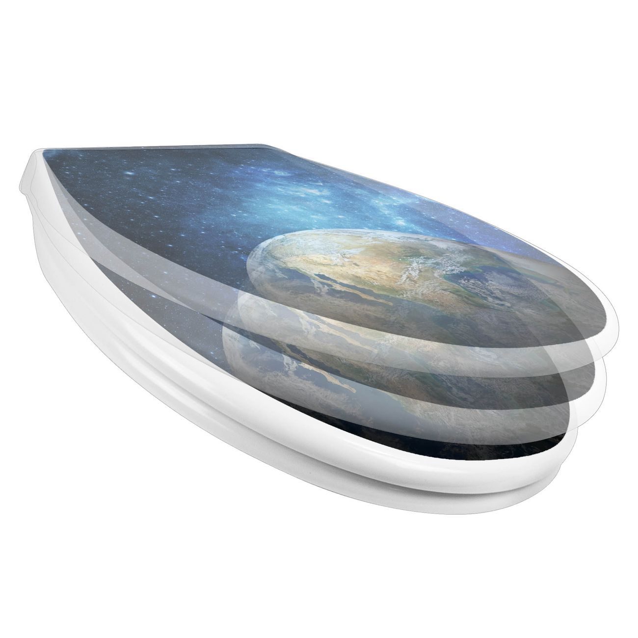 Toilettendeckel weiß mit Absenkautomatik Motiv Erdkugel