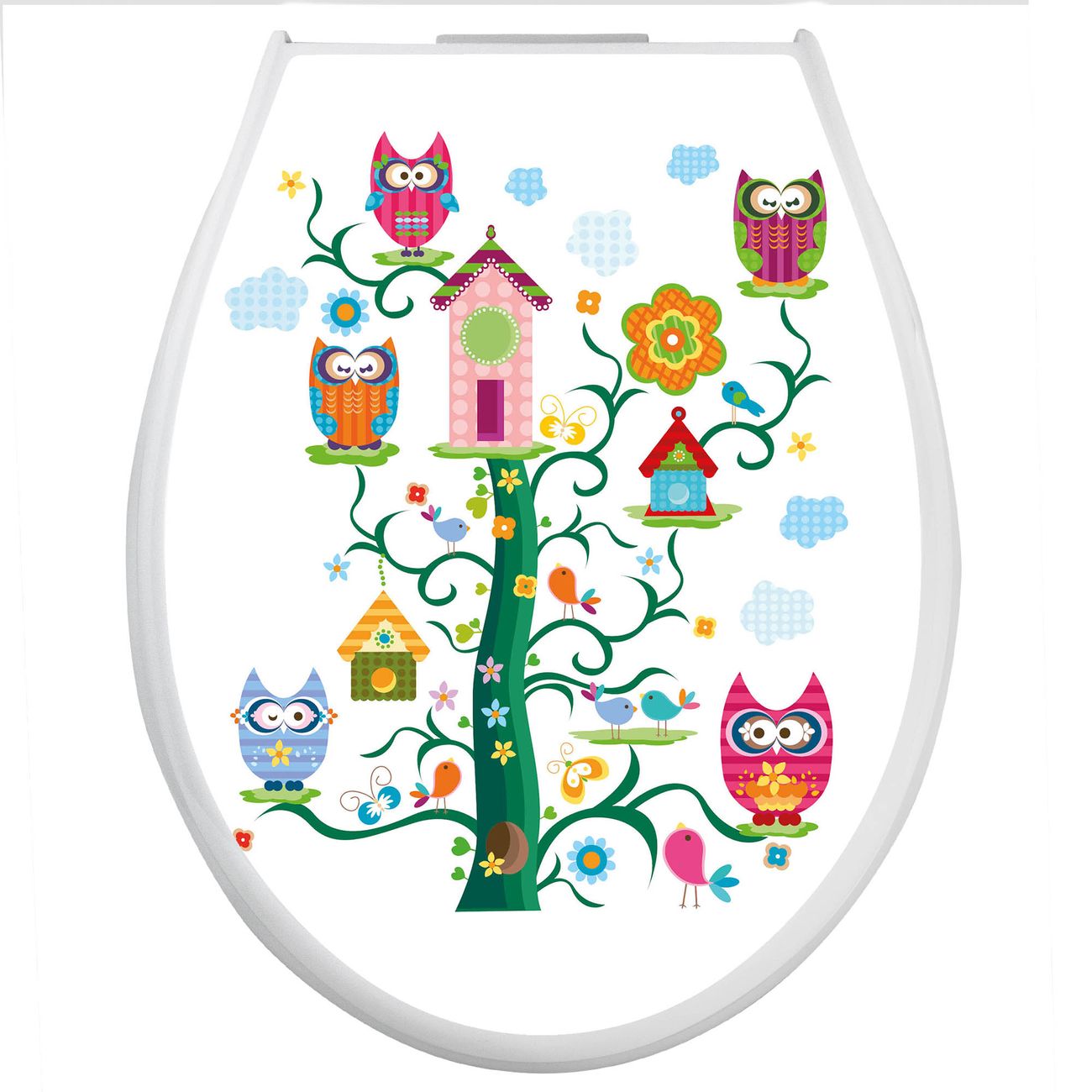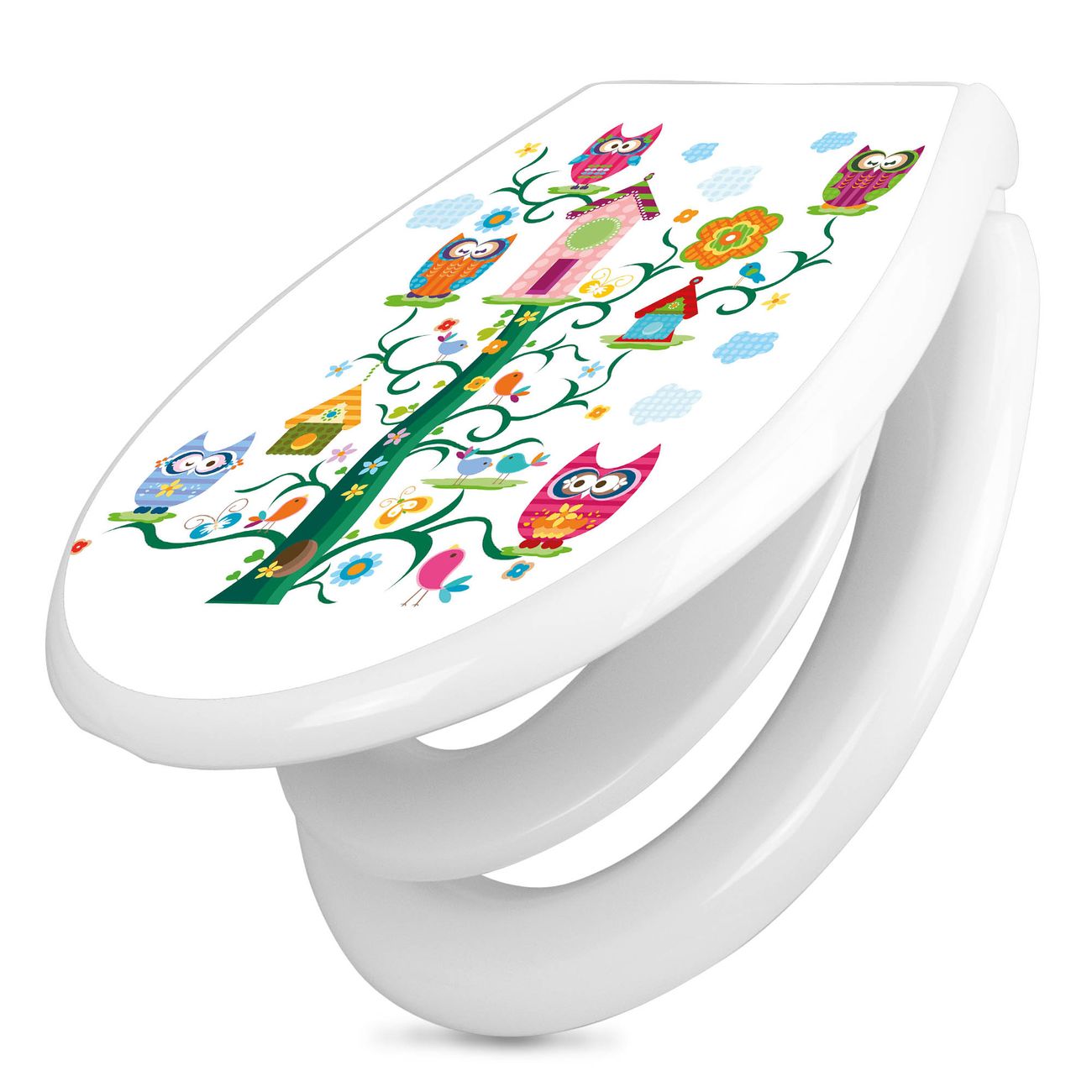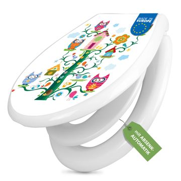 Toilettendeckel weiß mit Absenkautomatik Motiv Eulenfamilie