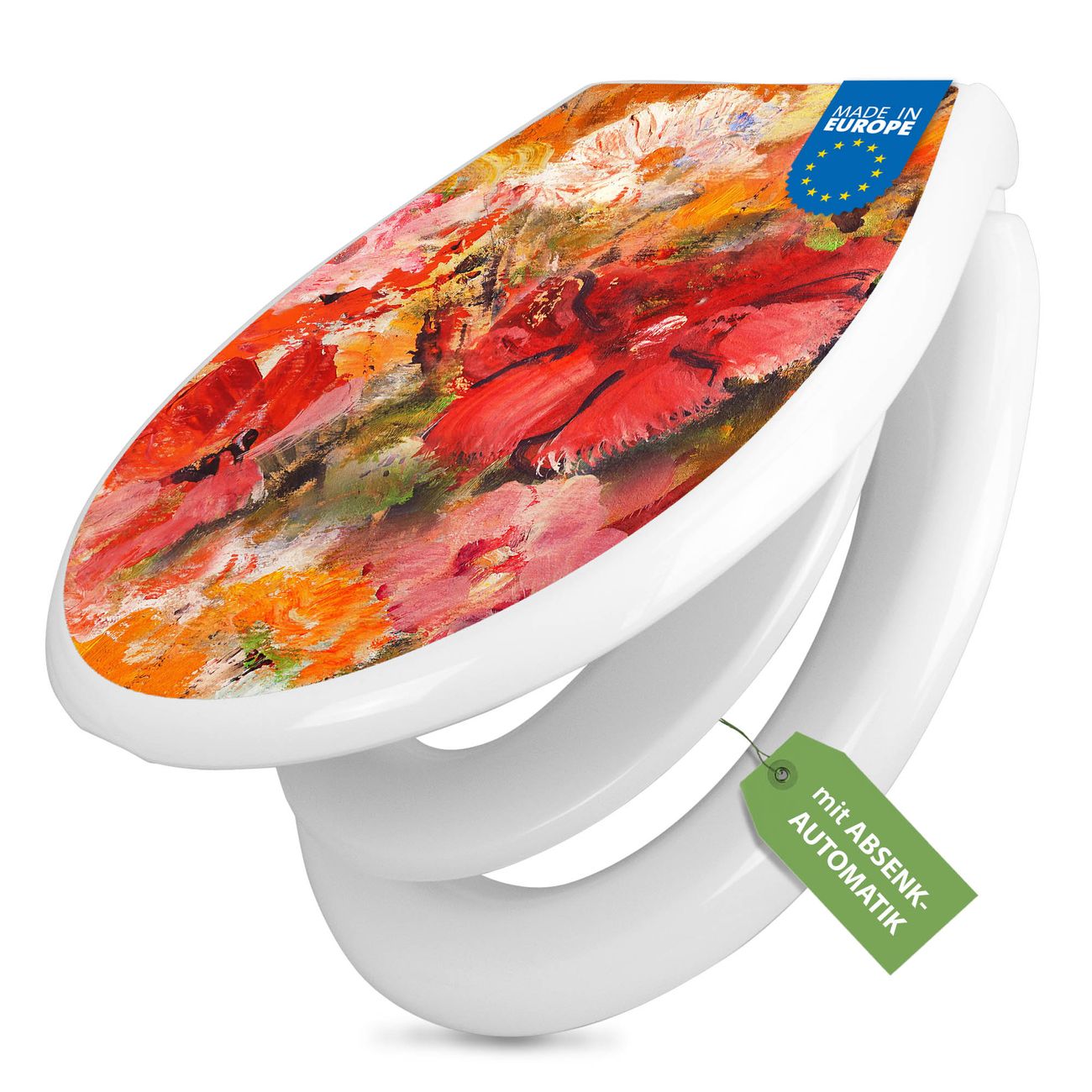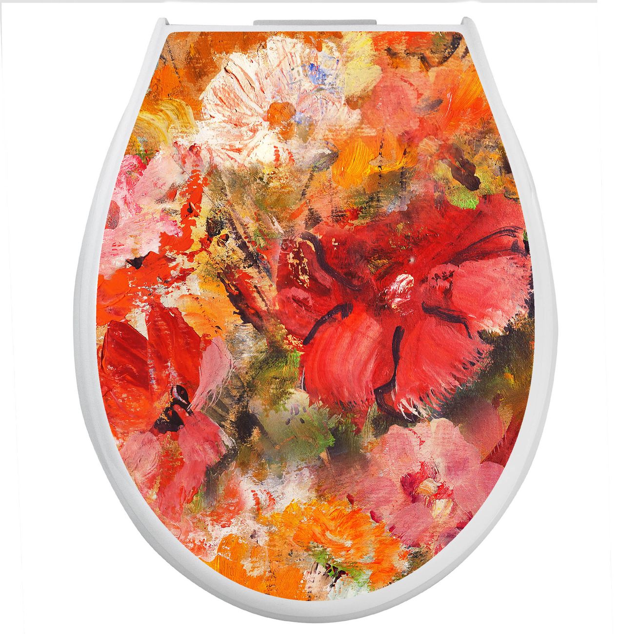 Toilettendeckel weiß mit Absenkautomatik Motiv Fallende Blumen
