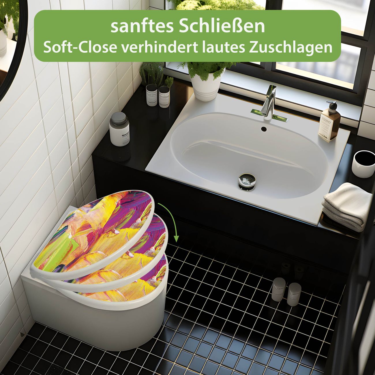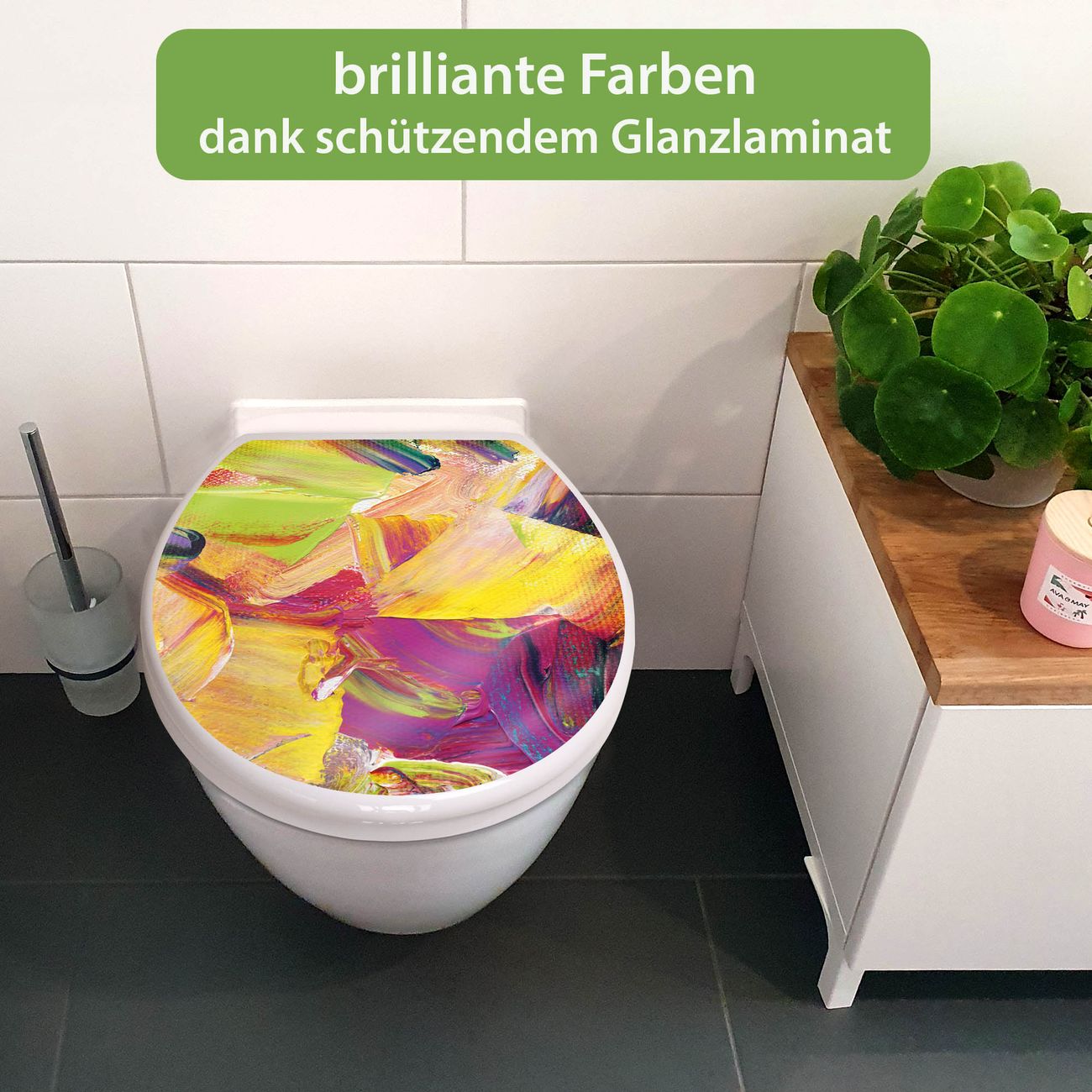 Toilettendeckel weiß mit Absenkautomatik Motiv Farbe auf Leinwand