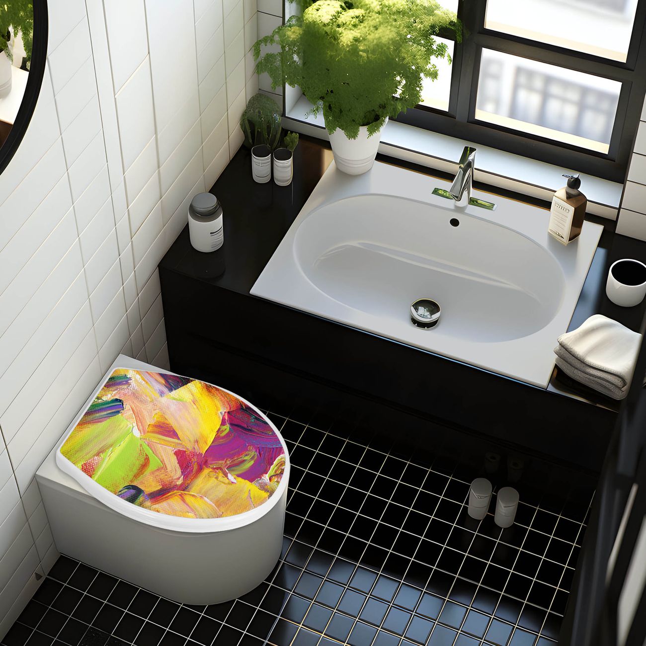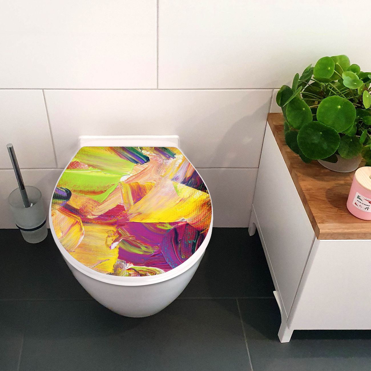 Toilettendeckel weiß mit Absenkautomatik Motiv Farbe auf Leinwand