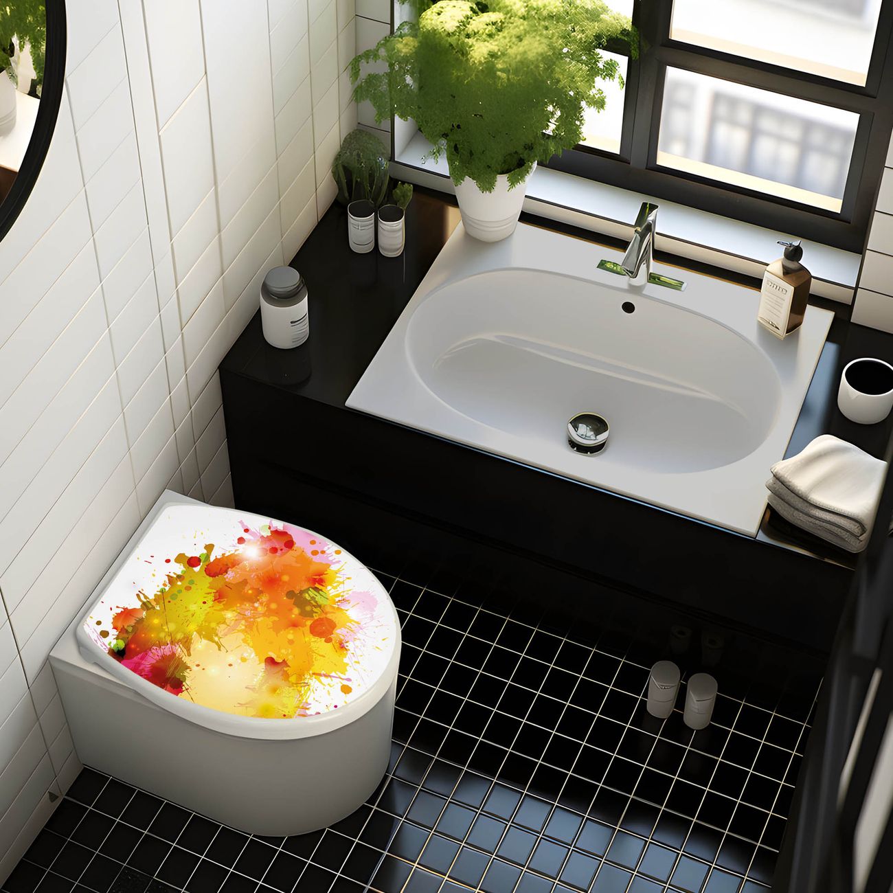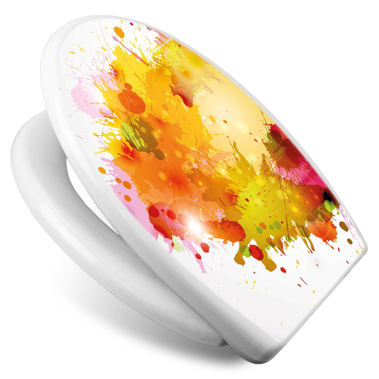 Toilettendeckel weiß mit Absenkautomatik Motiv Farbkleckse