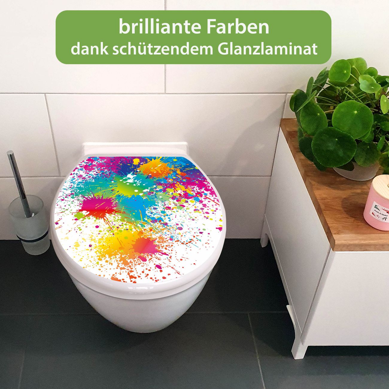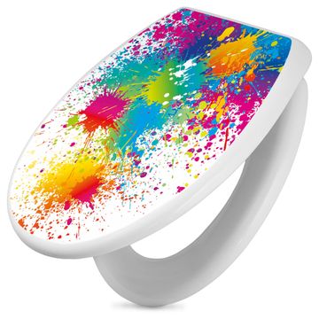 Toilettendeckel weiß mit Absenkautomatik Motiv Farbspritzer