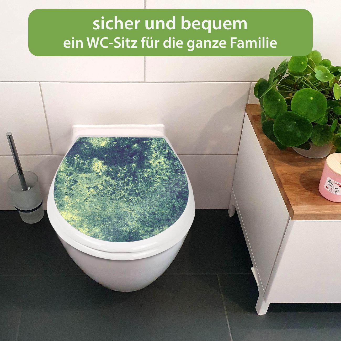 FUNKTION:Mit dem banjado Familien WC Sitz mit Absenkautomatik und dem Motiv Motiv Farbuniversum verbinden Sie Design mit Funktionalität. Sie erhalten den Toilettendeckel in bewährt guter Qualität mit Montagematerial passend auf alle Euro-WC-Becken. Die Gesamtgröße beträgt 37,1cm x 44,9cm x 5cm, die Grundfarbe ist weiß.</p> DESIGN:Der Klodeckel in weiß mit Motiv Motiv Farbuniversum hat eine ansprechende Optik, eine besondere Form und ist sehr stabil. Das Motiv besteht aus einer farbbrillianten Motivfolie, die durch ein Schutzlaminat zusätzlich vor Kratzern schützt. Der integrierte Kindersitz fügt sich harmonisch ein. DETAILS:Der Toilettensitz mit Soft Close besteht aus hochwertigem Polypropylen, ist geruchlos, ungiftig und kann mit handelsüblicher Seife gereinigt werden. Die Montage kann von von oben oder von unten erfolgen und ist kinderleicht. NUTZEN:Mit Hilfe der detaillierten Aufbauanleitung ermöglichen wir eine schnelle und unkomplizierte Montage. Die banjado Klobrille ist universell geeignet für alle Euro-WC-Schüsseln. Der Kindersitz kann unkompliziert entfernt werden. BANJADO:Ihr WC-Deckel wird in Sachsen in einer kleinen Manufaktur von Hand veredelt. Die Motivfolie ist lösungsmittelfrei und schutzlaminiert für einen langen Halt. Wir wünschen viel Freude bei der Auswahl eines schönen Motivs.