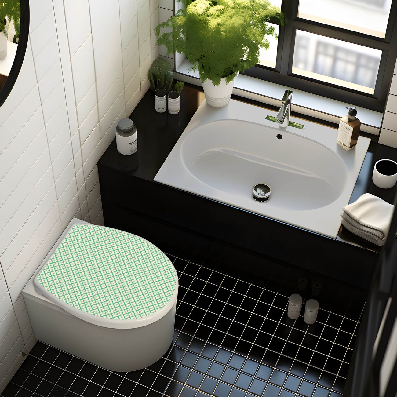 Toilettendeckel weiß mit Absenkautomatik Motiv Feines Rautenmuster