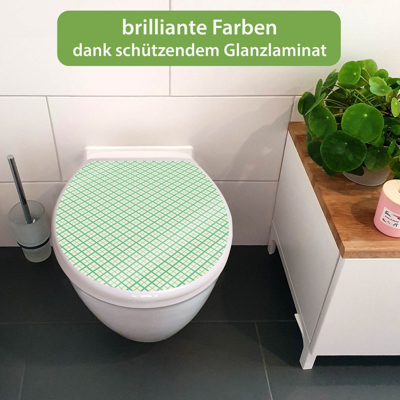 Toilettendeckel weiß mit Absenkautomatik Motiv Feines Rautenmuster